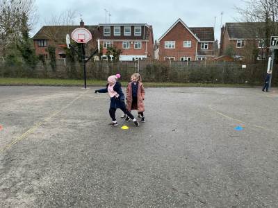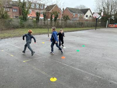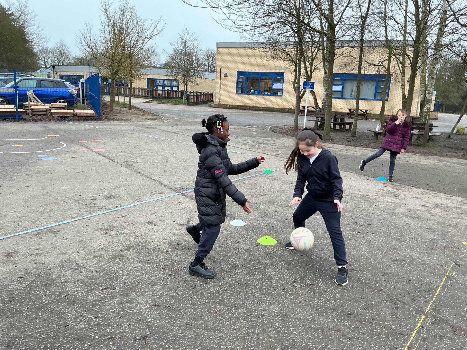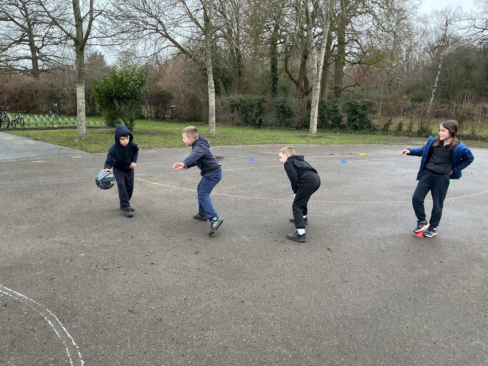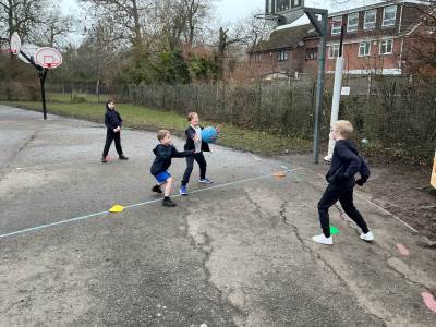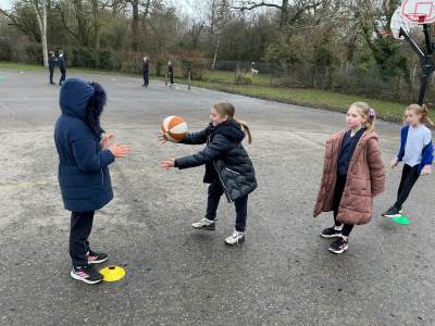 Today in P.E., we were looking at dodging and passing in basket ball.