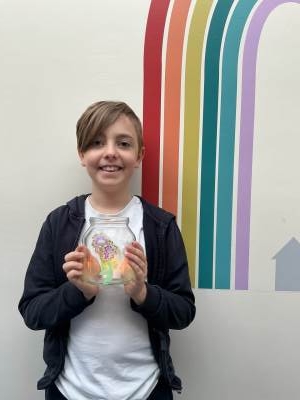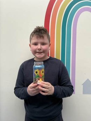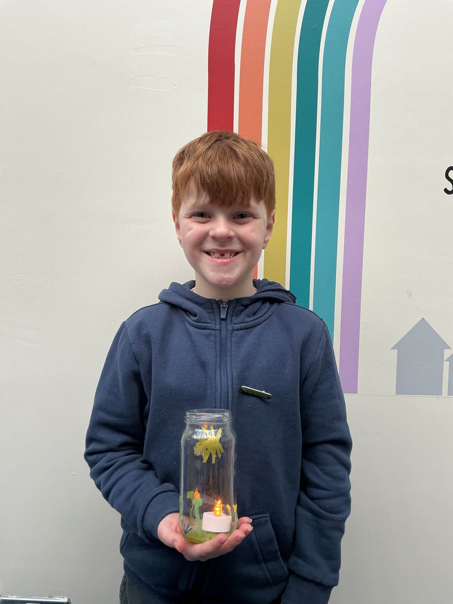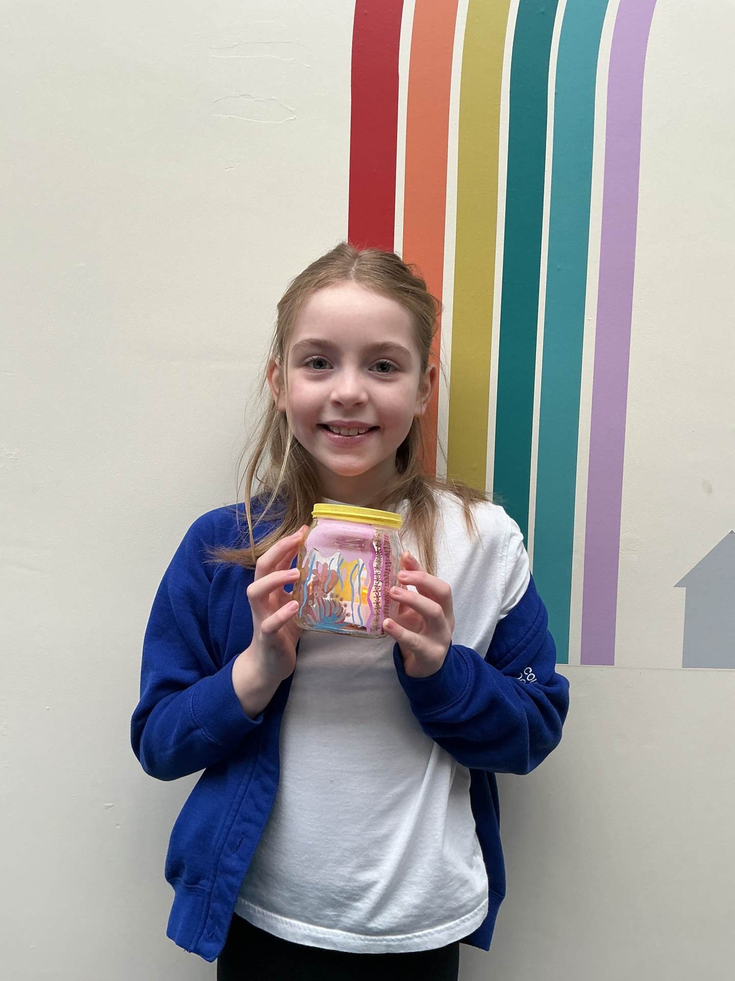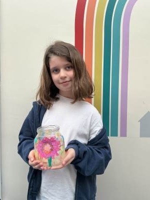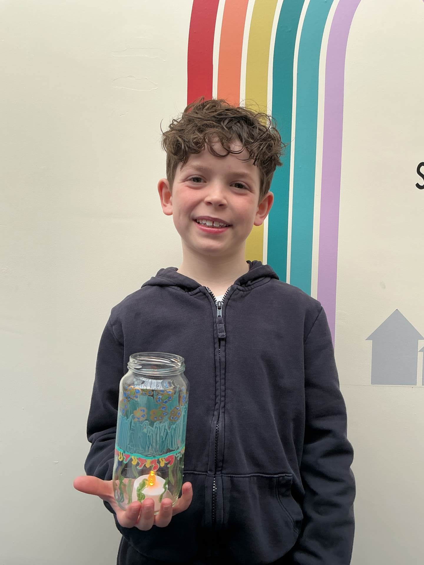 For our Take One Piece project this term, we looked at America glass artist Dale Chihuly. We decorated glass jars with flora and fauna using acrylic paint to recreate his style of work. We put candles inside the jars which was extremely effective and they looked beautiful.