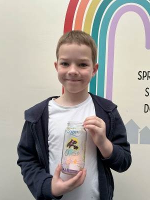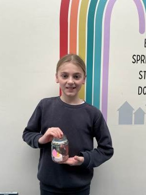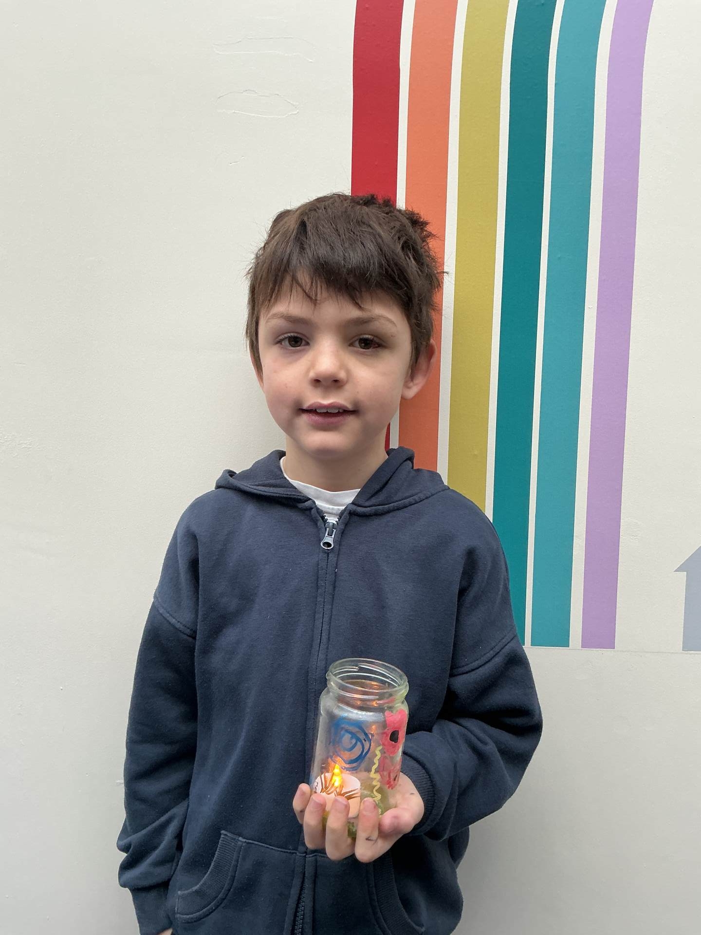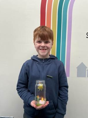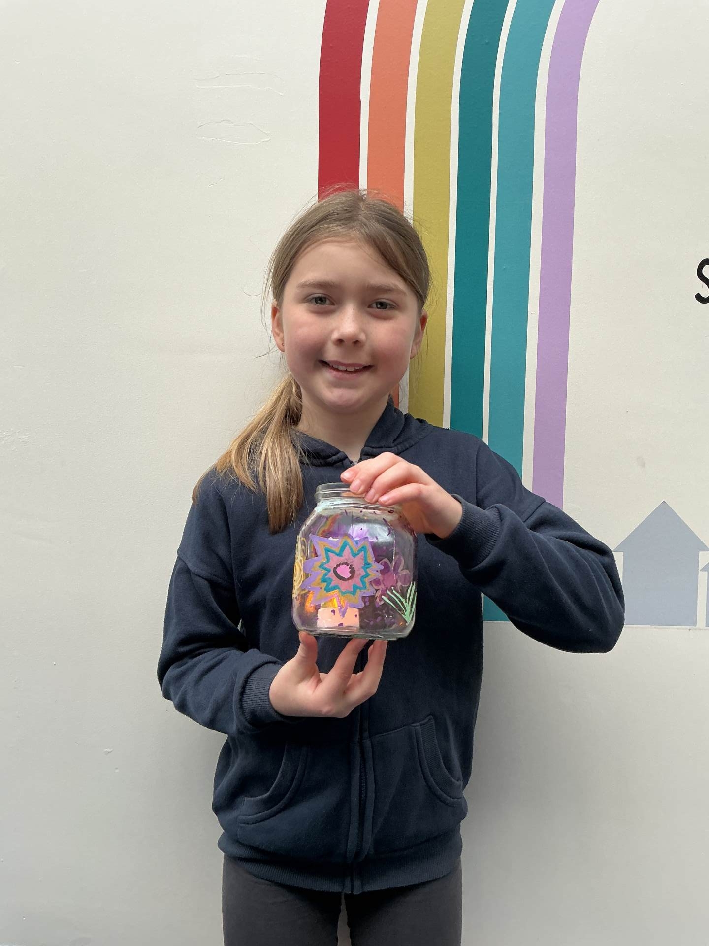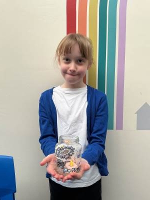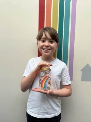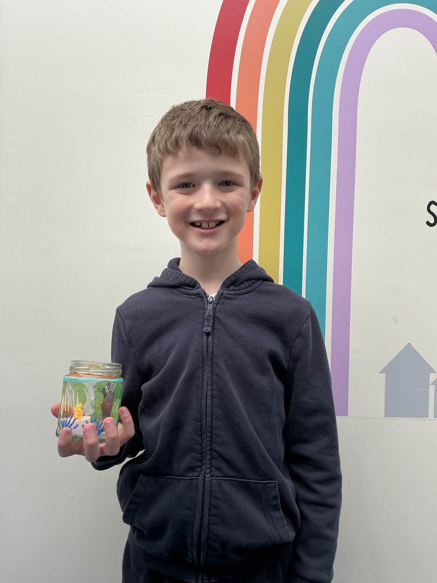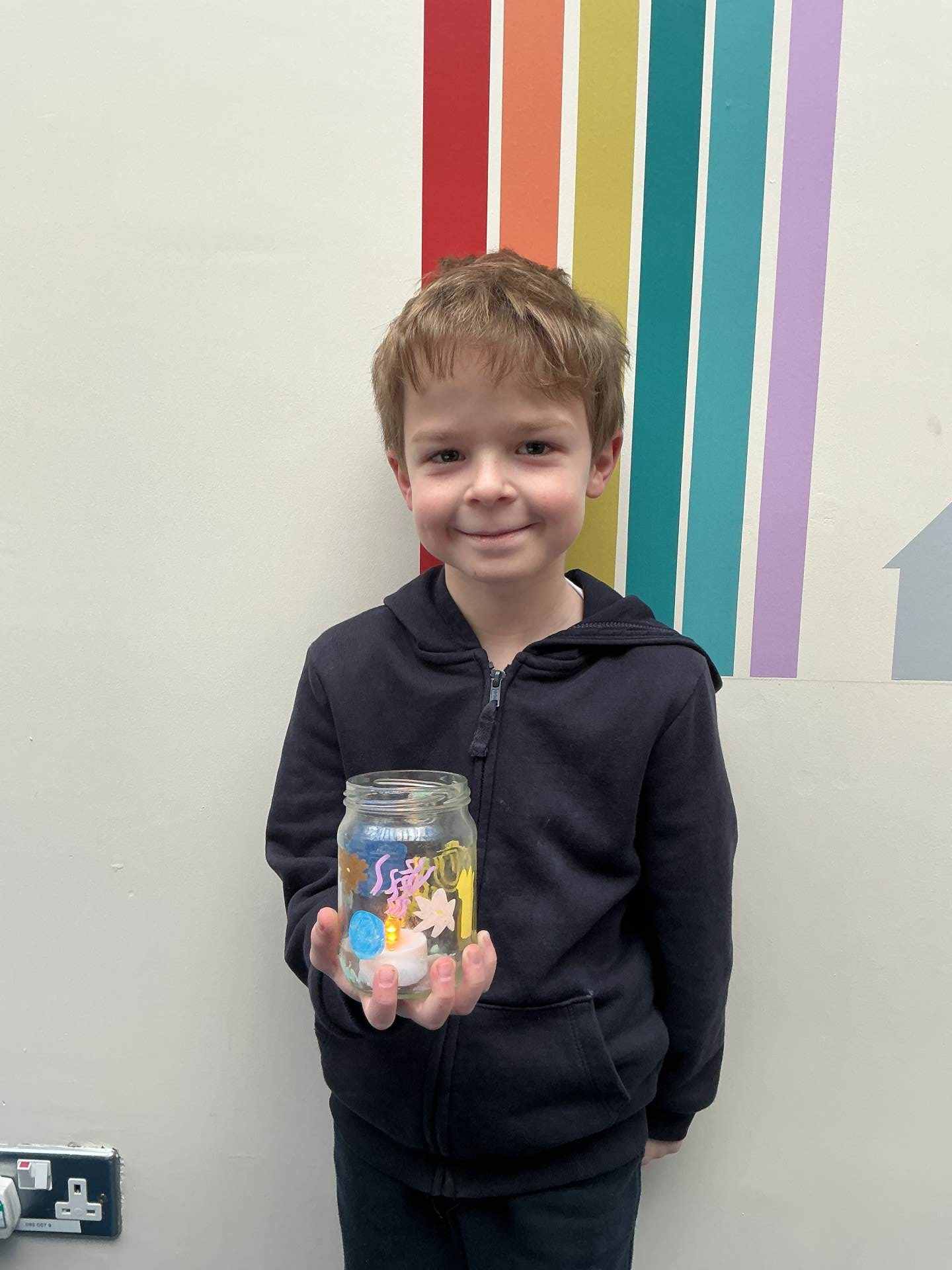 For our Take One Piece project this term, we looked at America glass artist Dale Chihuly. We decorated glass jars with flora and fauna using acrylic paint to recreate his style of work. We put candles inside the jars which was extremely effective and they looked beautiful.
