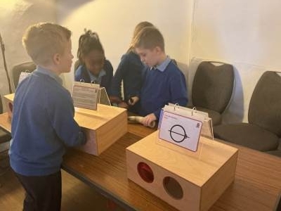 Today in Science we looked at how sound travels differently through gas, liquid and solid.