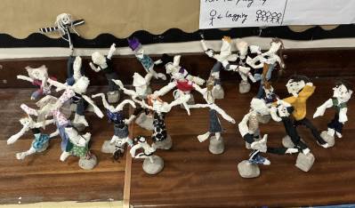 In Art, we have been looking at how plinths help elevate artwork to make it appear more important. We made our own plinths from clay and then created a statue by bending wire. We tried to give our sculptures shapes that made it seem like they were moving. We then wrapped our creations in linen before making them clothes from a variety of materials.