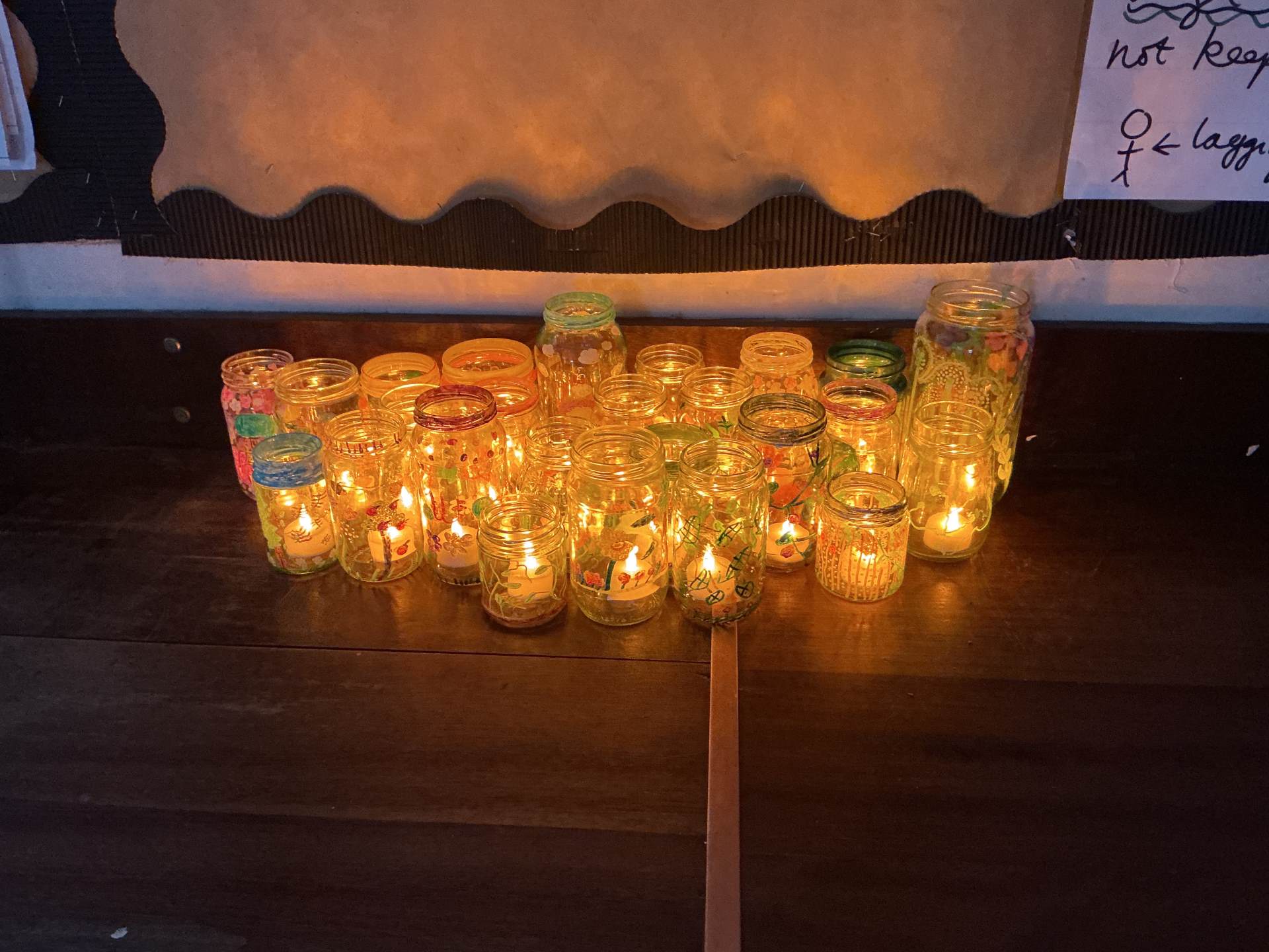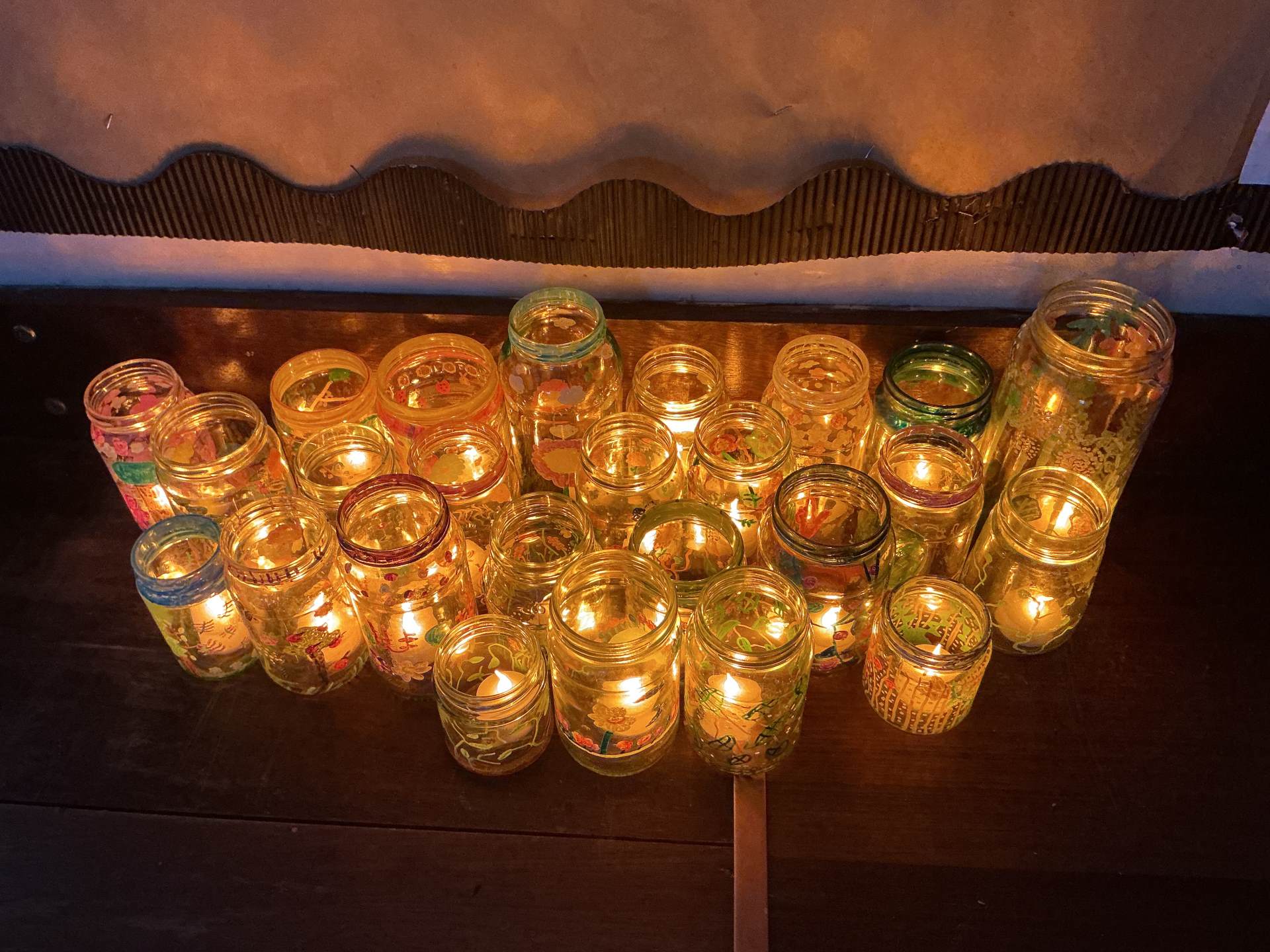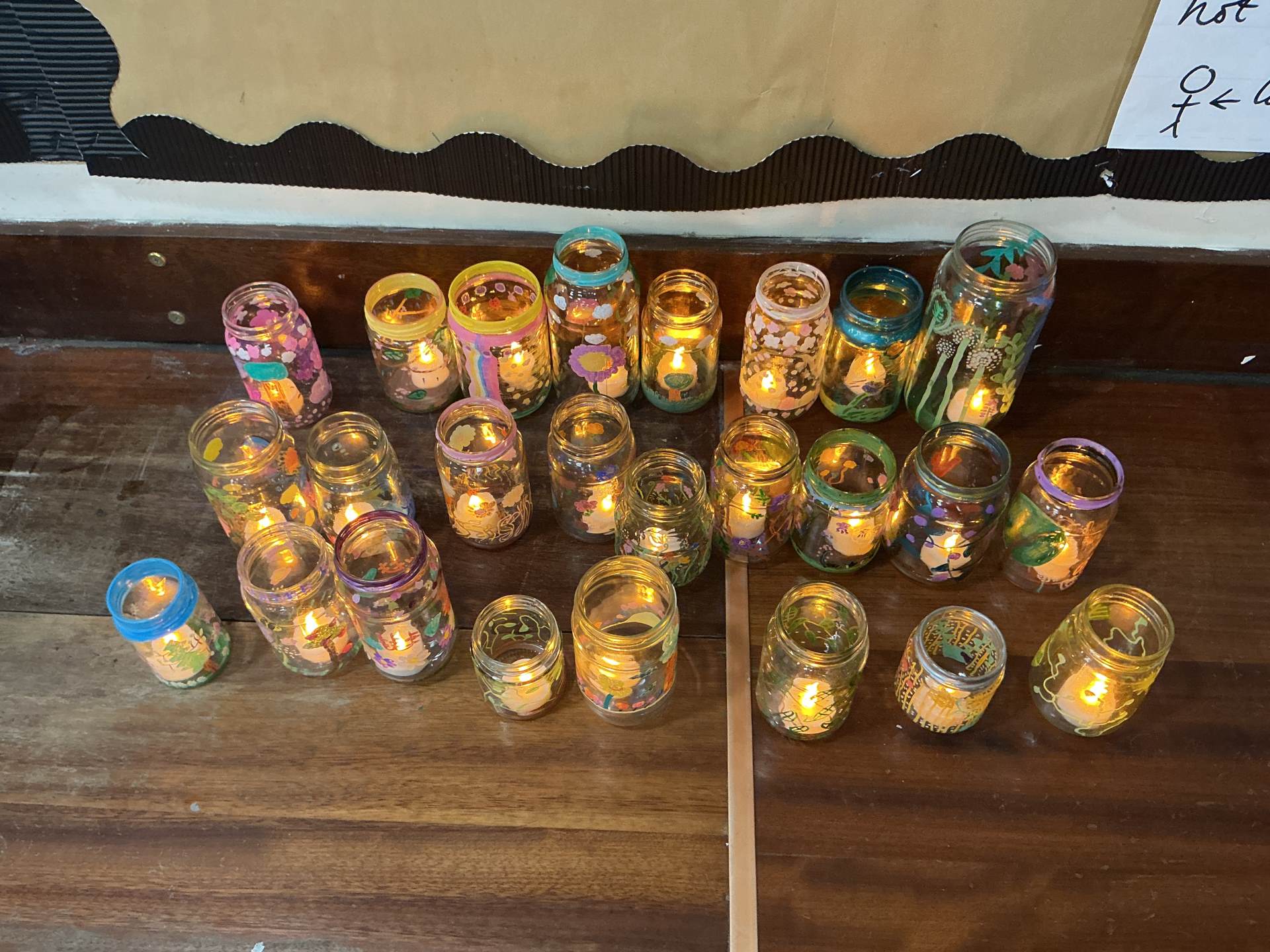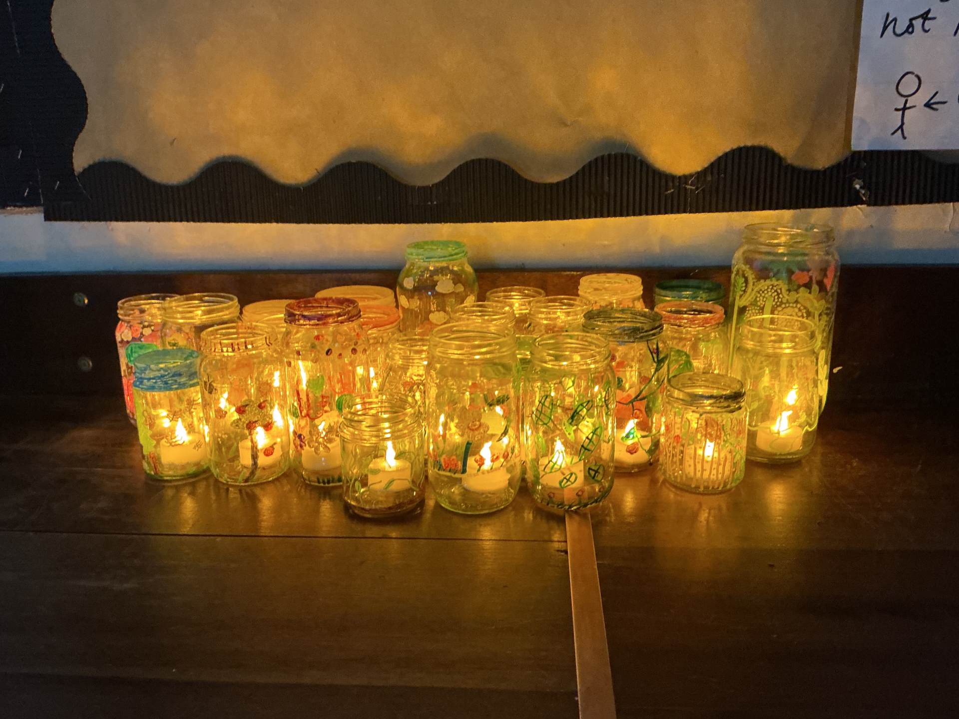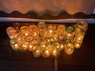 As part of our Take One Piece Art project, we studied Dale Chihuly and how he uses glass to mark art. We used paint pens to decorate glass jars and saw how they look different when light travels through them.