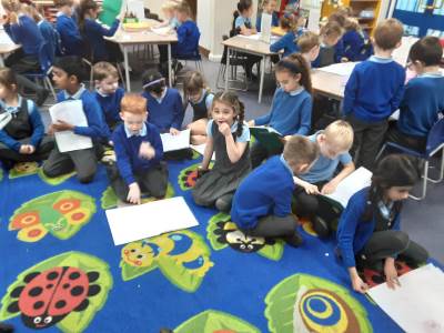 This week, our table groups worked collaboratively to create a wonderful piece of artwork. Each child used either their handprint or footprint to make their mark on a large sheet of paper, choosing a different colour to contribute to the design. The children are extremely proud of their collective masterpiece, and next week we will be using these colourful prints as the canvas for our next exciting art project!
