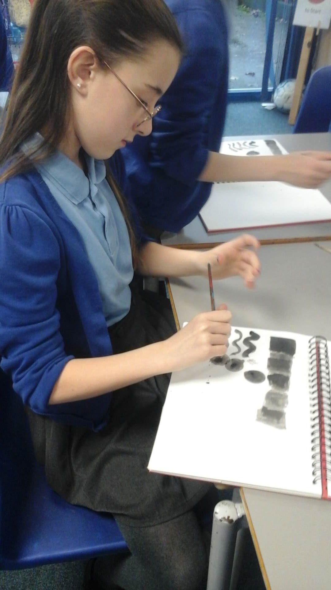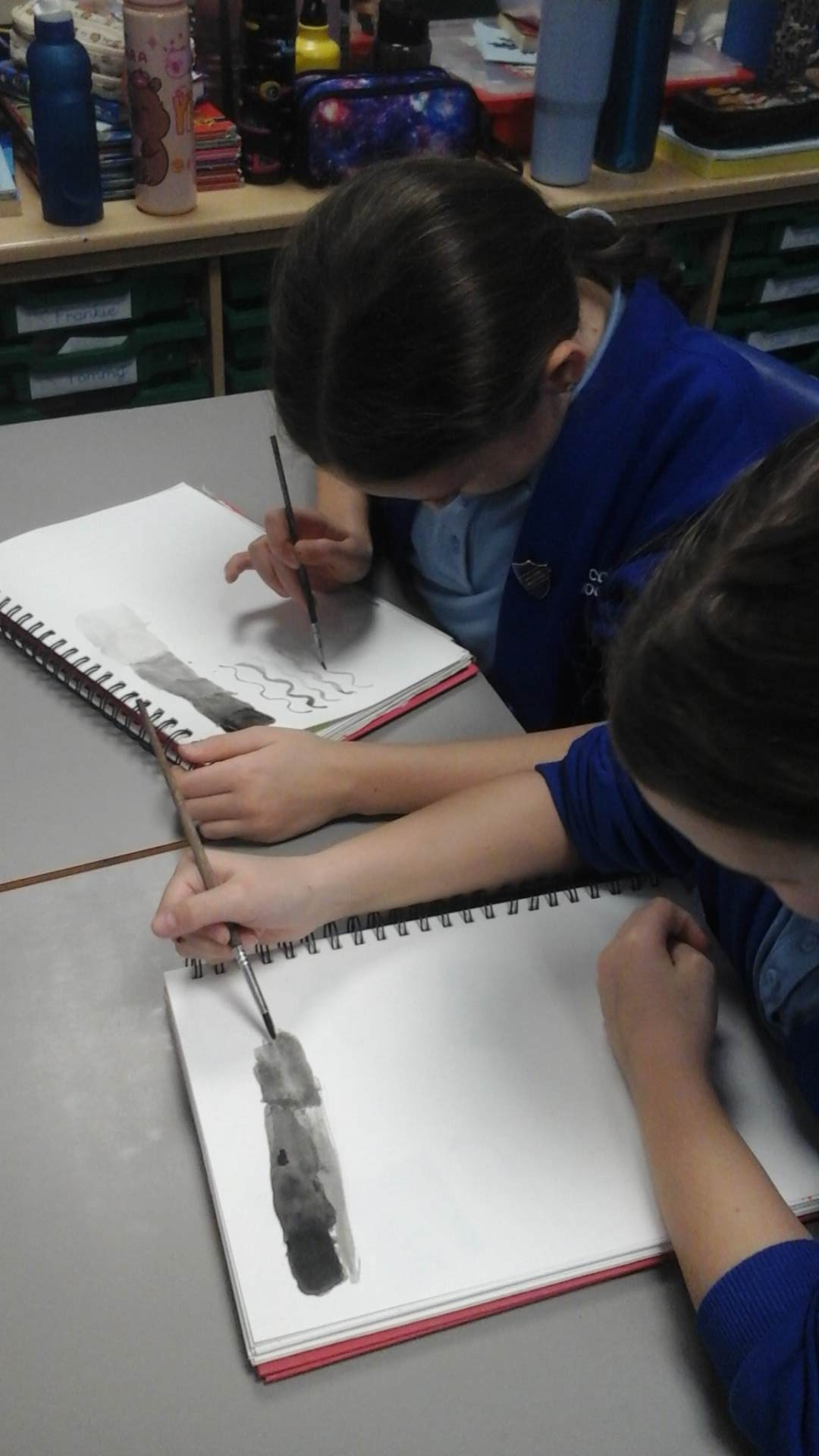 During our Art lesson this week, we learnt a range of techniques that can be created when working with Indian ink. Using a paintbrush and a wooden skewer, we were able to create colour values (shades of colour after adding varying amounts of water to the ink), colour washes (where the ink bled into the water wash) and differing line widths and patterns.