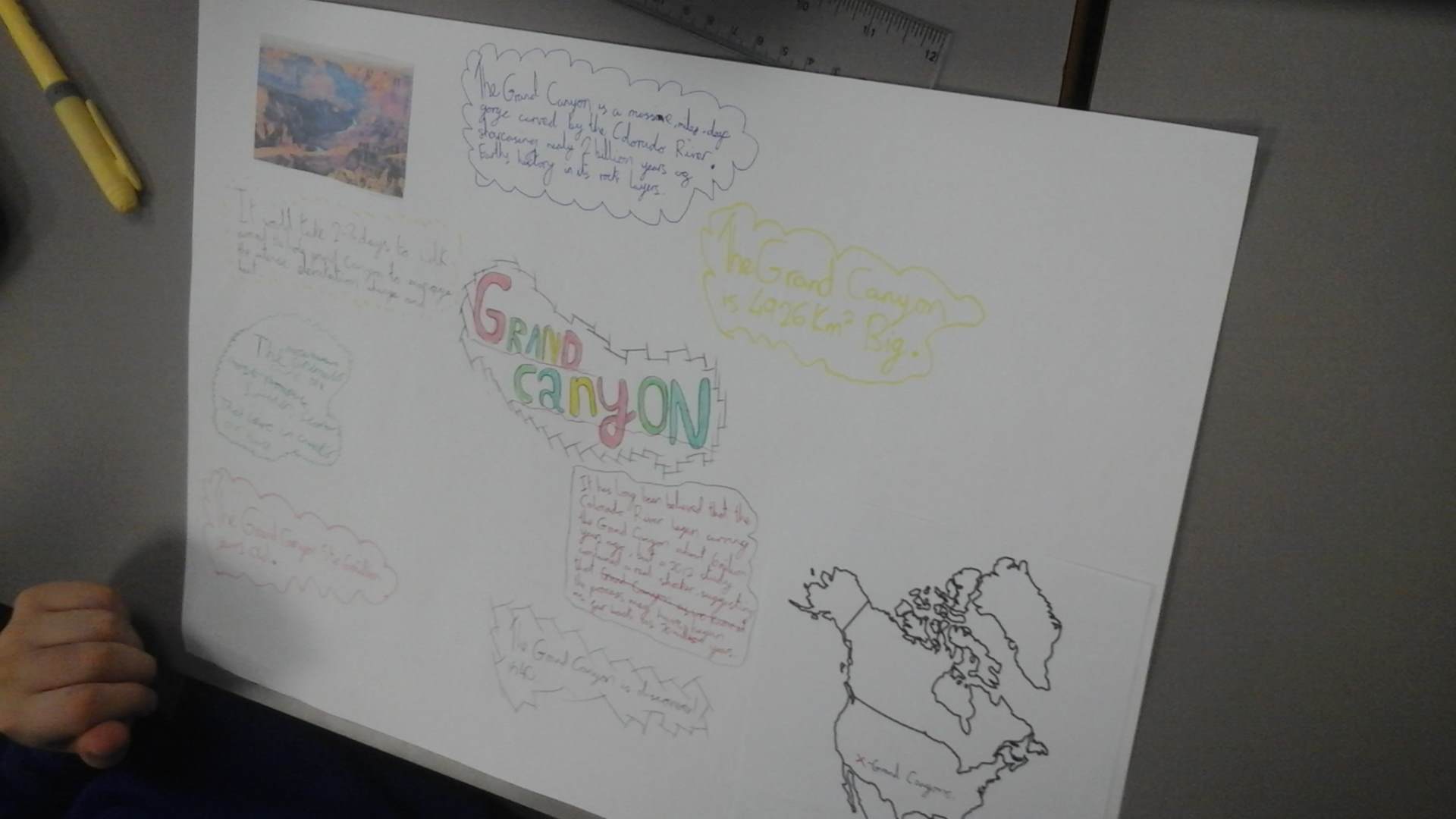 In Geography, we have been exploring countries, time zones, climates and geographical features within the continent of North America. We worked in pairs and threes to produce a poster about a geographical feature. We used the Chrome books to research facts about the landmark and find out where it was located in North America.