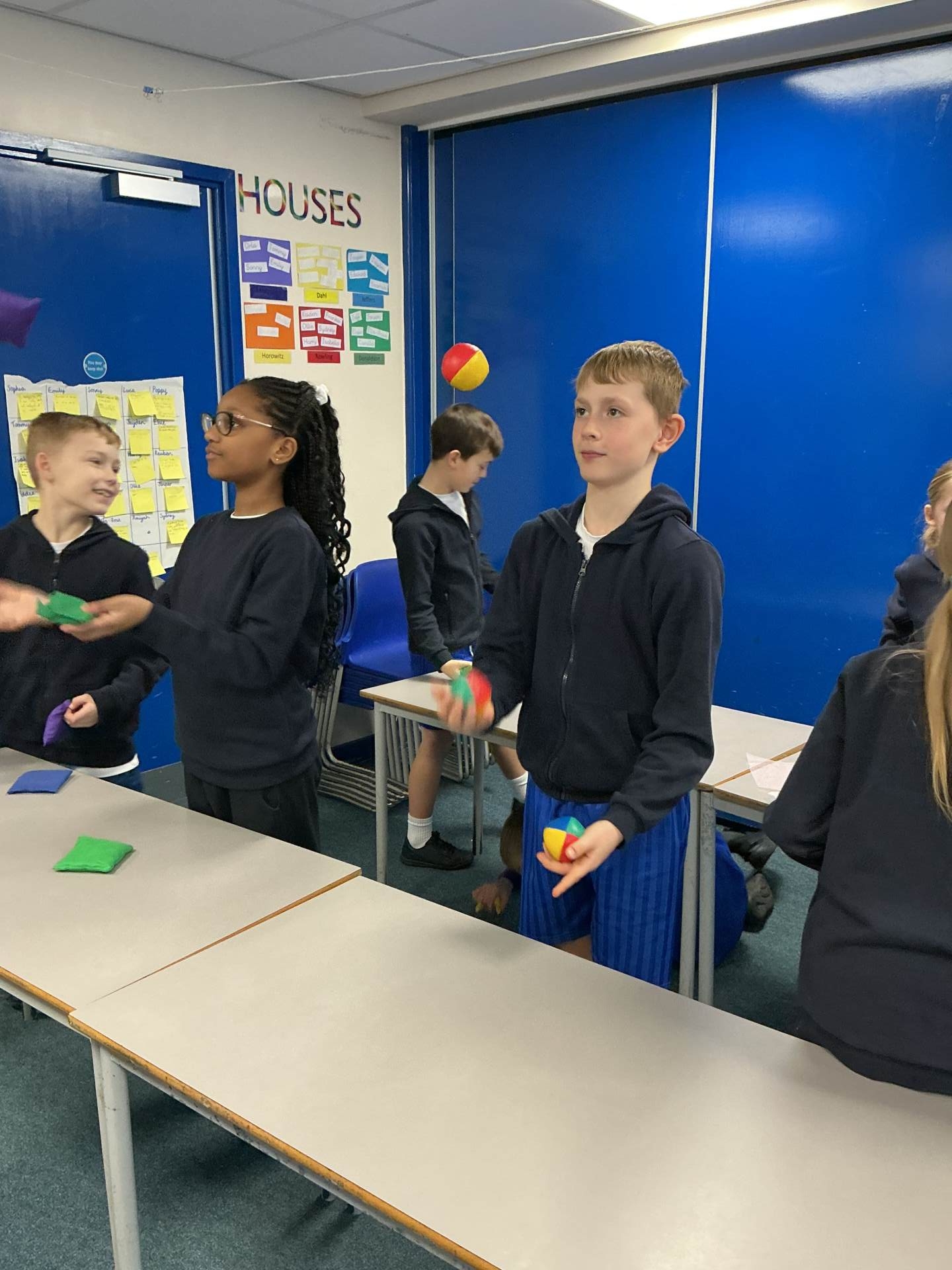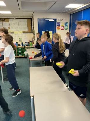 On Monday, we learnt to juggle! Mr Pryke came down to show off his skills and to be a 'blue' coach, in-line with our ReflectEd. The majority of us started the lesson off as 'red', which meant we didn't know anything about juggling. A few of us were 'yellow', which meant we knew a little about it but needed some more support. As the session went on, we found that we floated between the colours. When we became confident in the first step (which made us green) we then moved on to the next step, which meant many of us were back to being red/yellow again. This was a great session as it showed us that by breaking down a task into smaller steps, this allowed us to build on our perseverance and resilience.