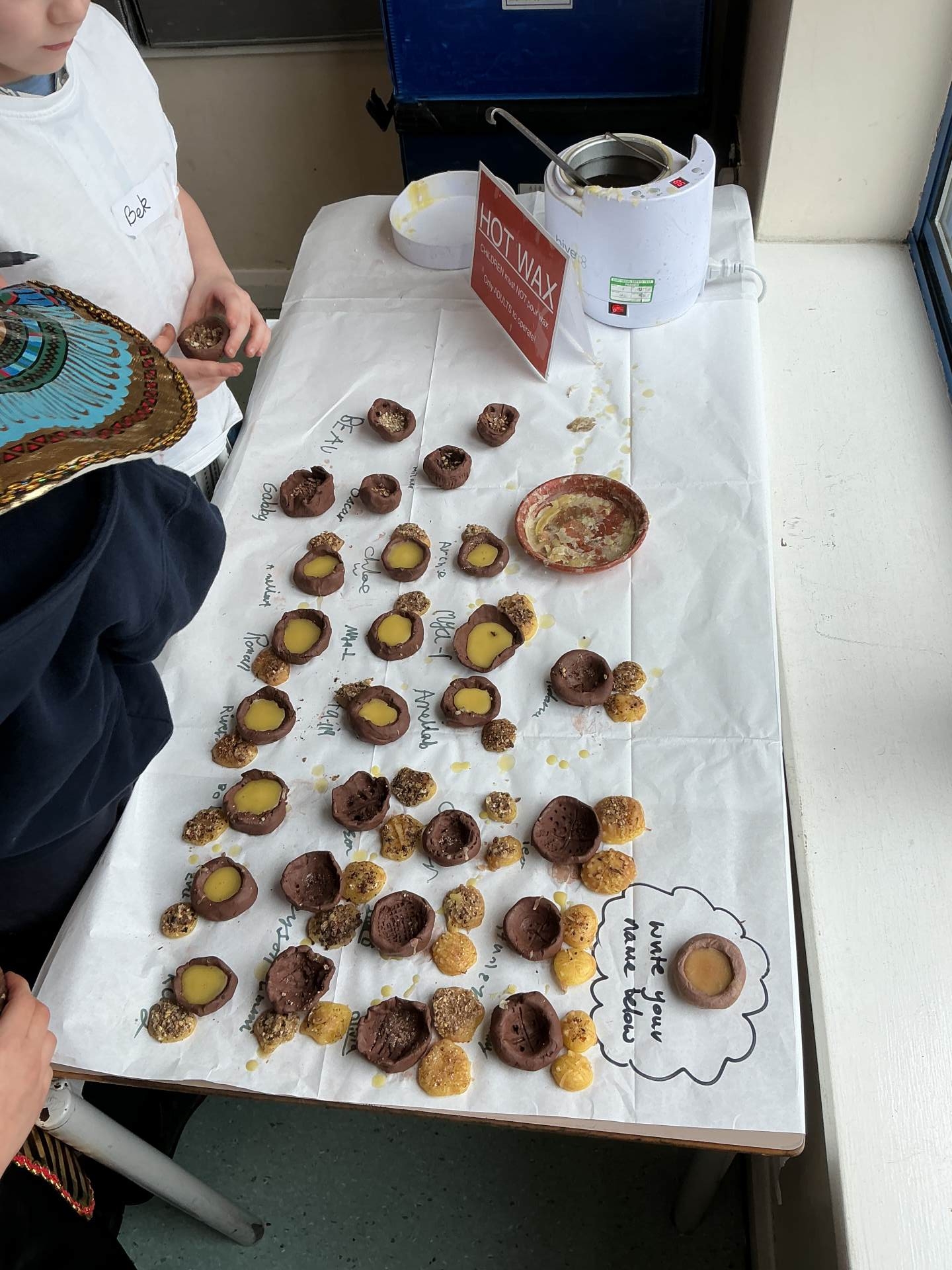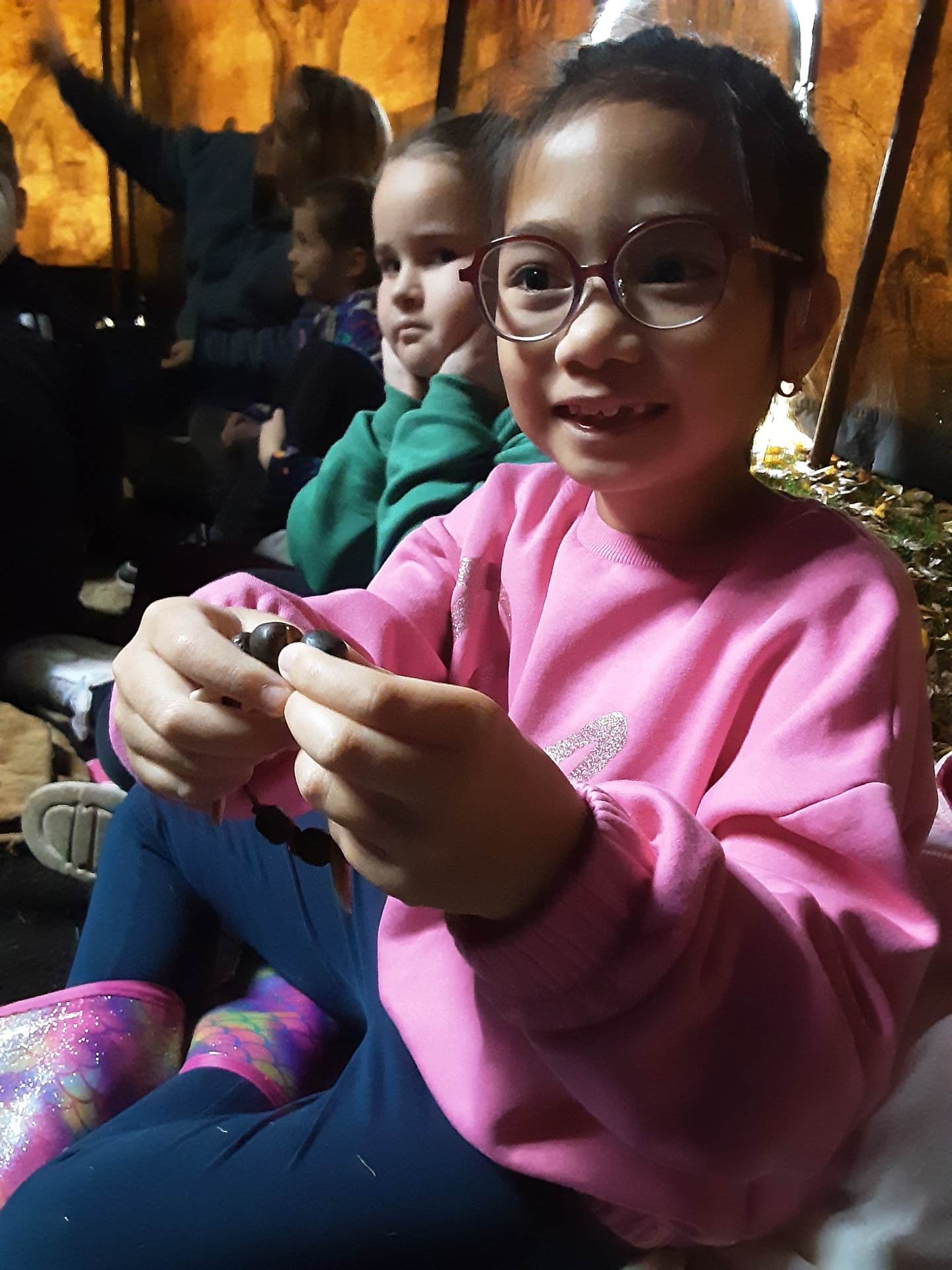 We had an amazing Stone Age Day today. We visited Kit and Twig in their Stone Age tent and were fascinated by all the things they told us. We were able to hold lots of amazing artefacts and look closely at them. We watched them light a fire using stones and natural materials. We learnt so many amazing things.