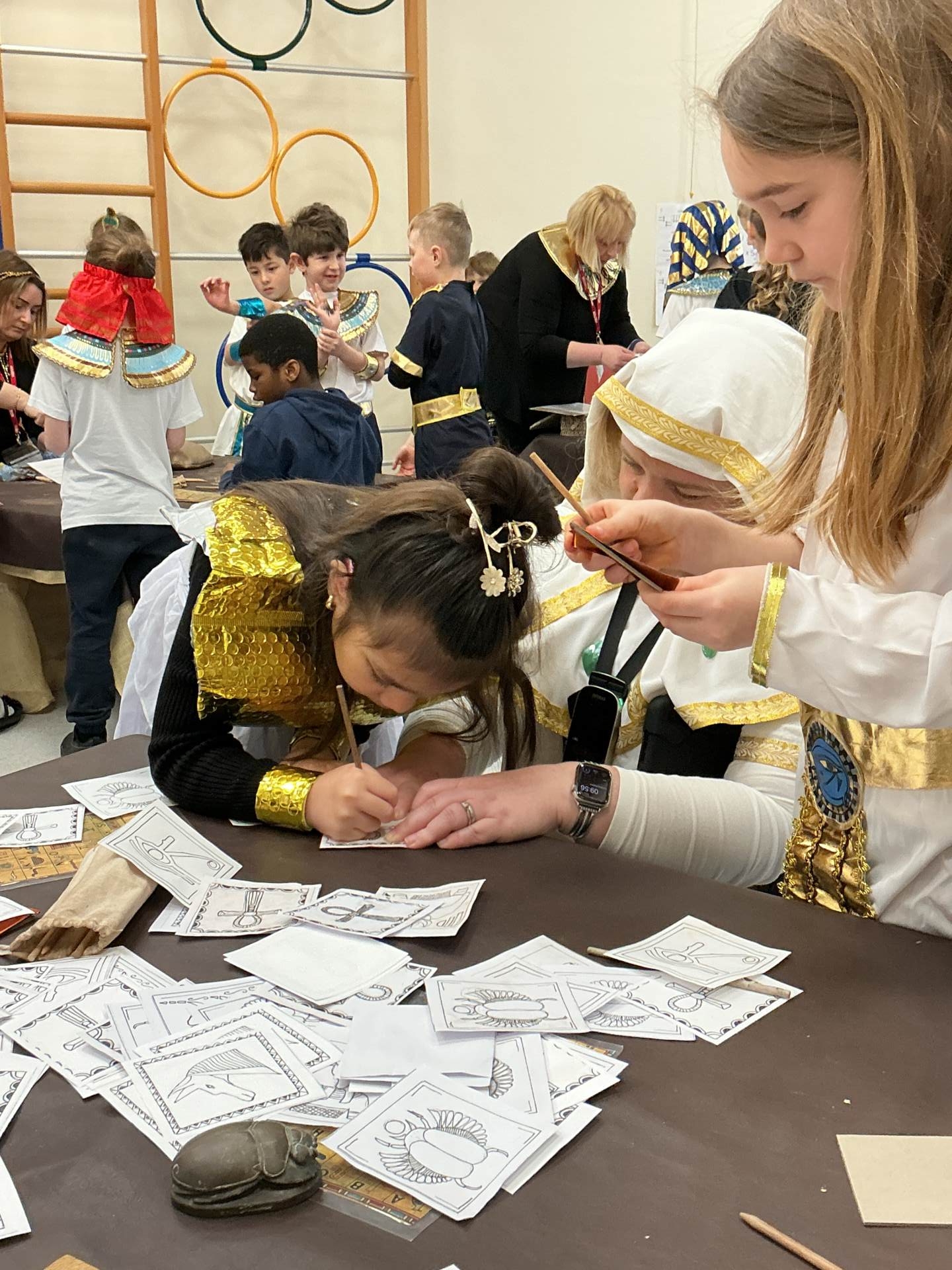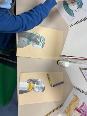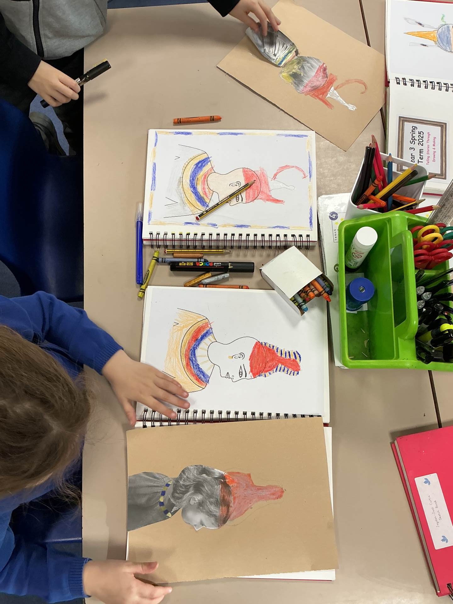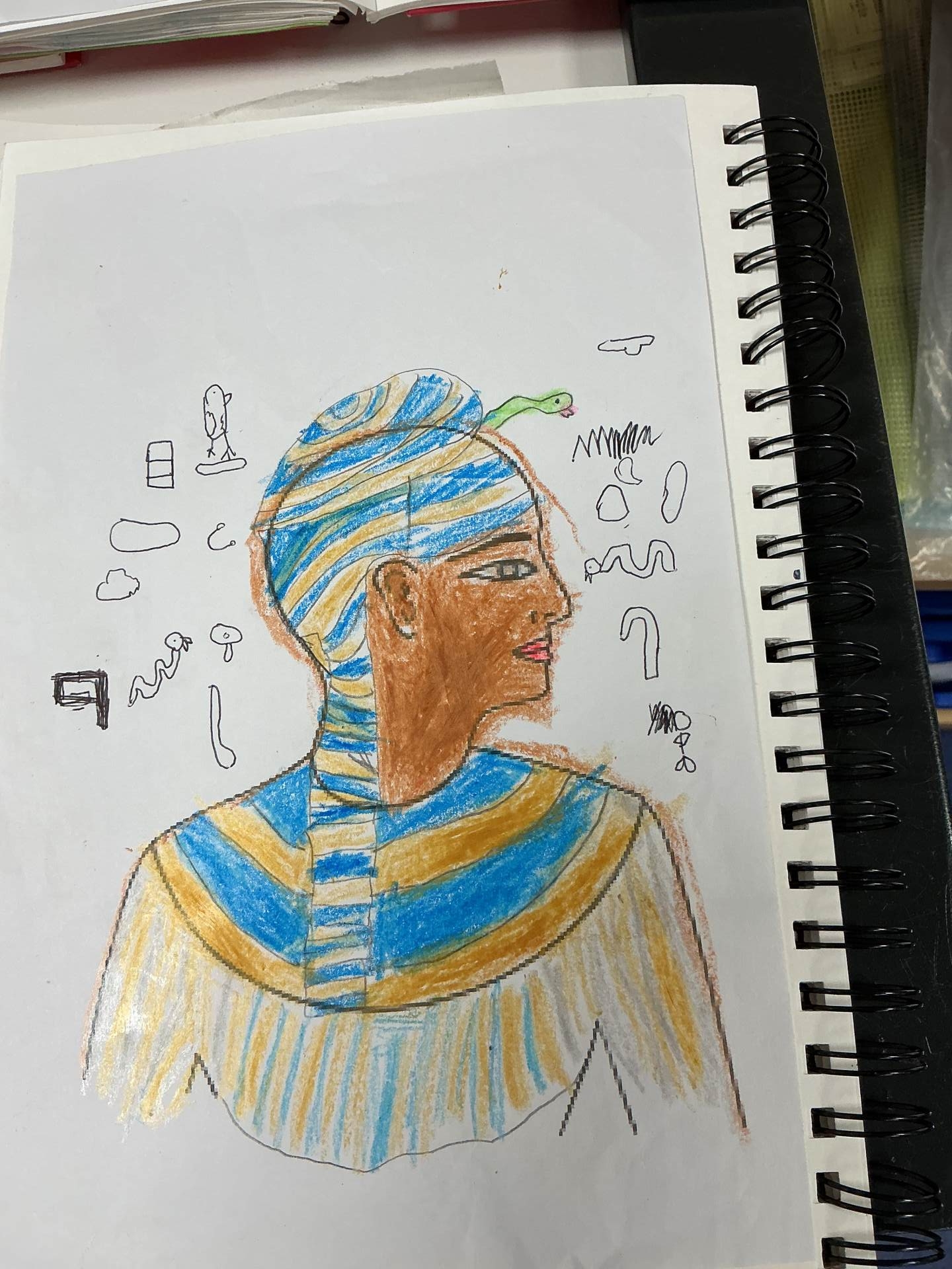 We looked at Ancient Egyptian portraits and created our own plan for an Egyptian side profile portrait.