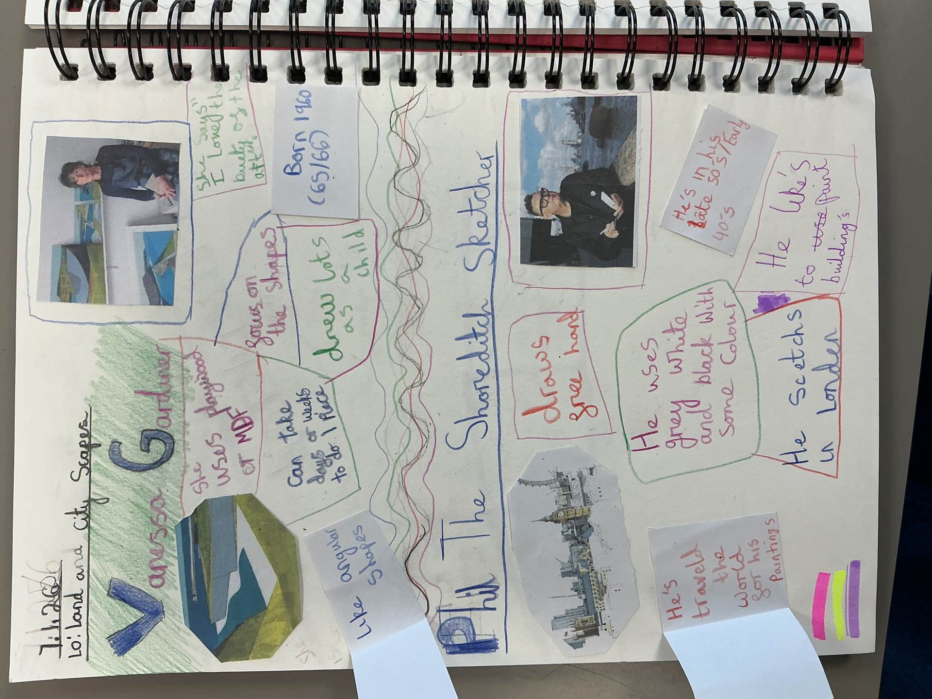 This week, we have started a unit for Art called Mixed Media Land and City. We looked at the artists Vanessa Gardiner and The Shoreditch Sketcher and explored some of their artwork. In our sketchbooks, we produced a page about them.
