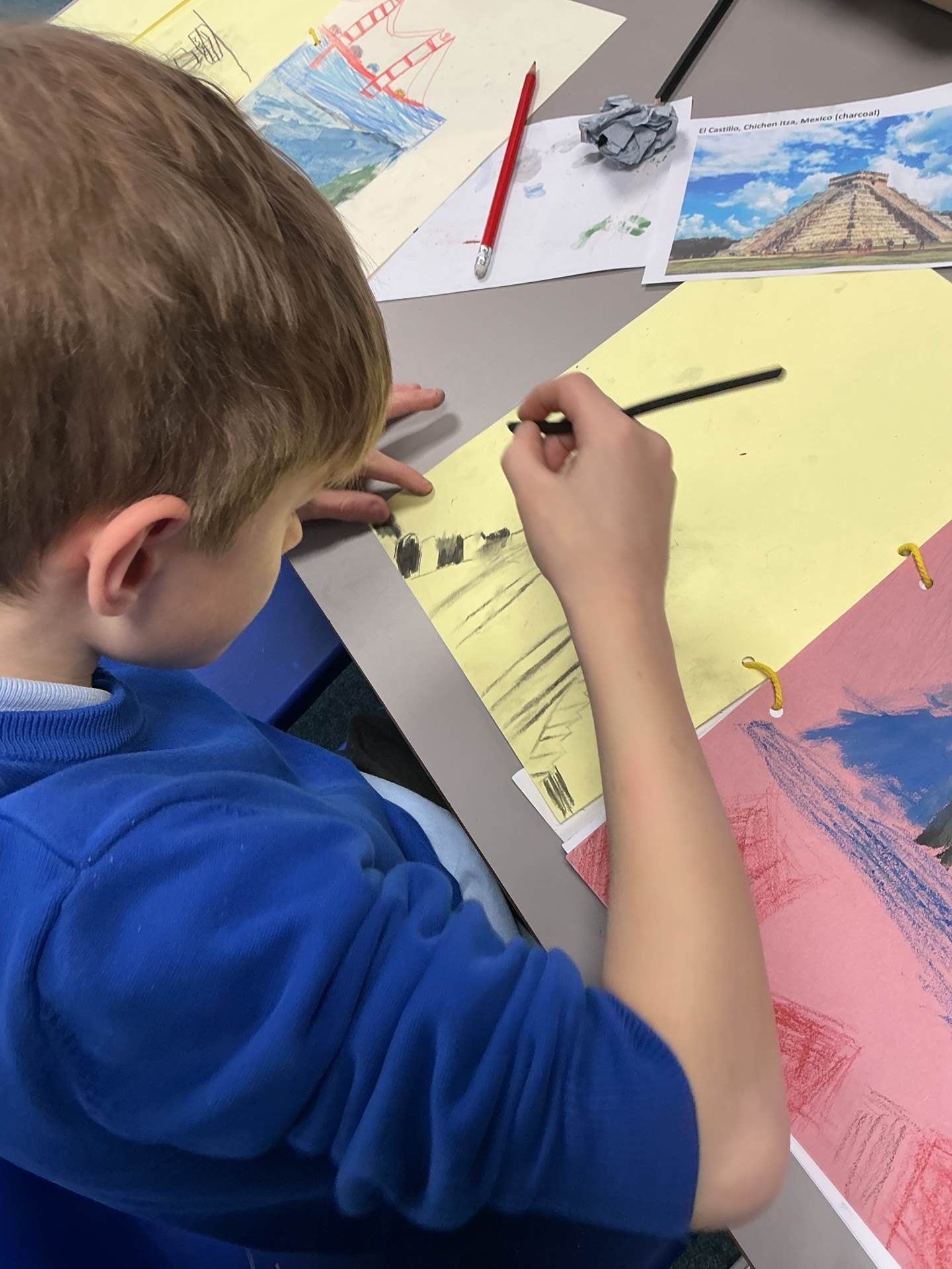 In Art this week, we have continued building on our topic of using mixed media for land and cityscapes. Today, we had an exploration session, where we tried out 7 different media to see what it was like to work with. We used chalk, charcoal, colouring pencils, handwriting pens, oil pastels, water colours and Indian ink. We spent a short amount of time using each media, which meant we could focus on what effect we could create with each rather than worrying too much about our drawings being perfect. Take a look at our pictures to see what we have created so far.