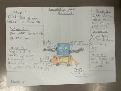 In English, we have been learning about explanation texts. We read some examples of how machines work, looking at the use of causal conjunctions, time conjunctions, technical vocab and rhetorical questions to hook the reader. Then we had a lot of fun creating our own machines for the areas we felt were most important: how to complete your homework easily, how to please your teacher and how to tidy your bedroom with ease. There was an incredible range of designs and we are looking forward to explaining how they would work next week.