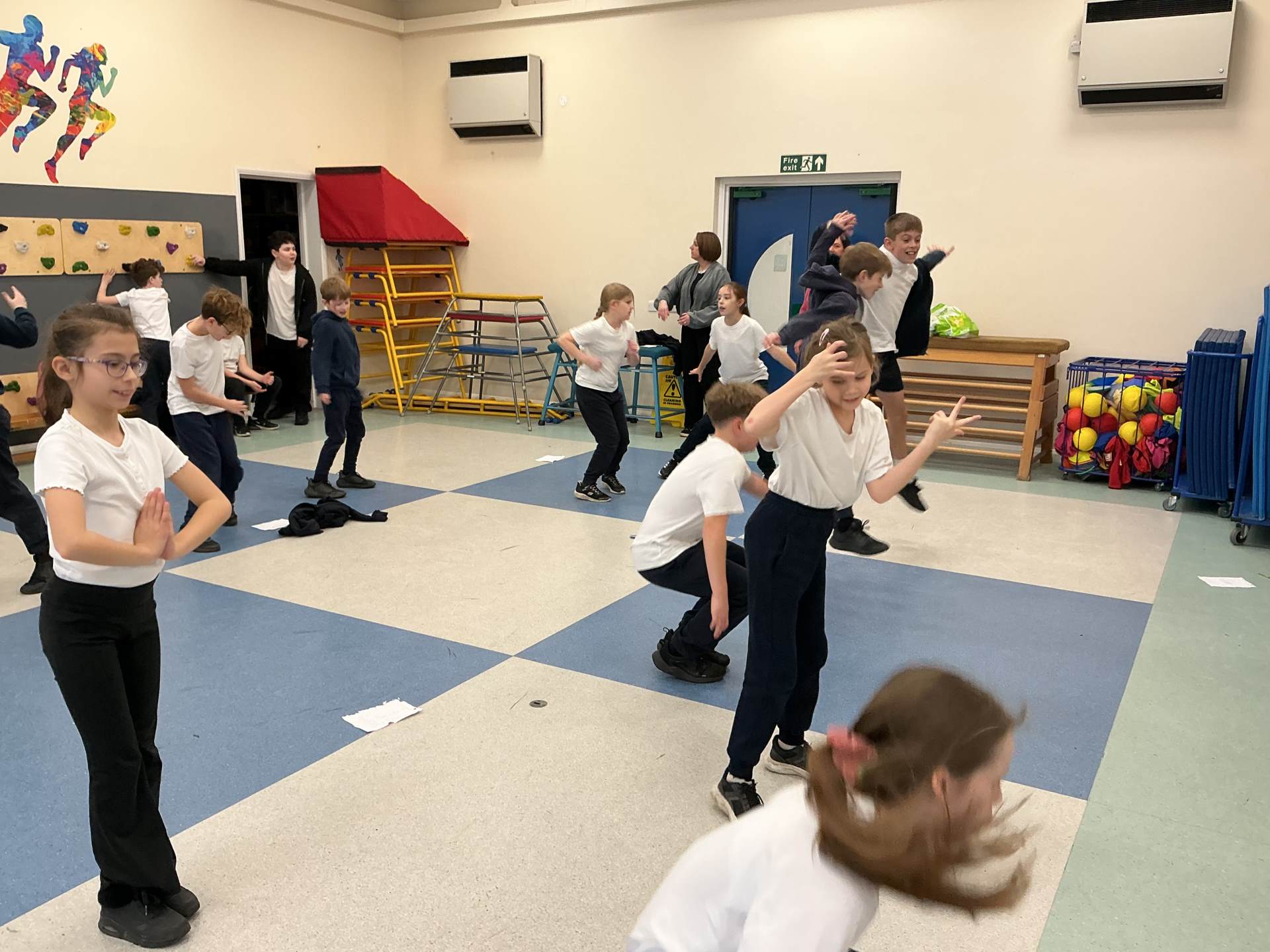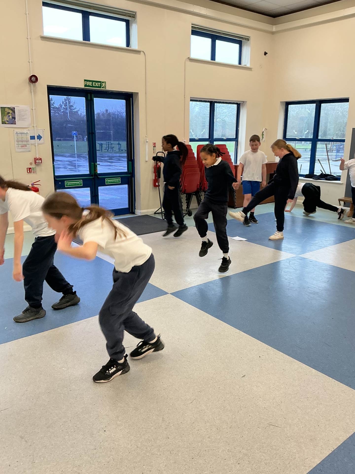 This week in PE, we finalised our dance routines and then performed them to the rest of the class. When creating our dances, we chose from a list of moves and performed them to a count of 8. The moves we chose from were extend, travel, kick, slide, ripple, jump, tilt, fall, twist and spin. Can you spot any of these moves in the pictures?