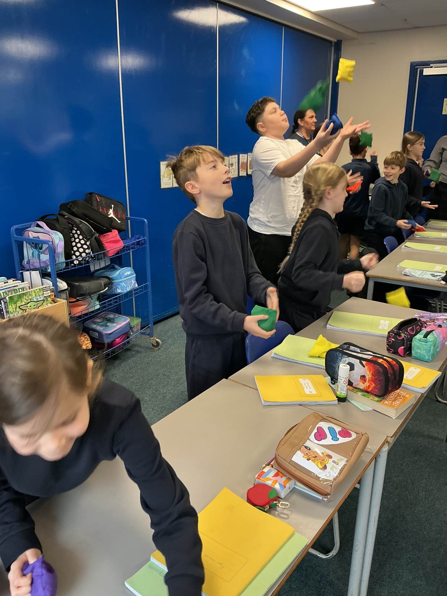 On Monday, we learnt to juggle! Mr Pryke came down to show off his skills and to be a 'blue' coach, in-line with our ReflectEd. The majority of us started the lesson off as 'red', which meant we didn't know anything about juggling. A few of us were 'yellow', which meant we knew a little about it but needed some more support. As the session went on, we found that we floated between the colours. When we became confident in the first step (which made us green) we then moved on to the next step, which meant many of us were back to being red/yellow again. This was a great session as it showed us that by breaking down a task into smaller steps, this allowed us to build on our perseverance and resilience.