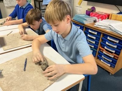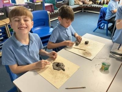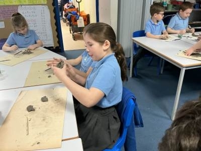 We have been exploring the work of Paul Cezanne for inspiration to learn about still life. Using colourful fruit with different textures to create a composition. Today, we made clay tiles from our drawings and learnt new clay techniques such as scoring, using slip and blending. Our final pieces will be ready to show soon.