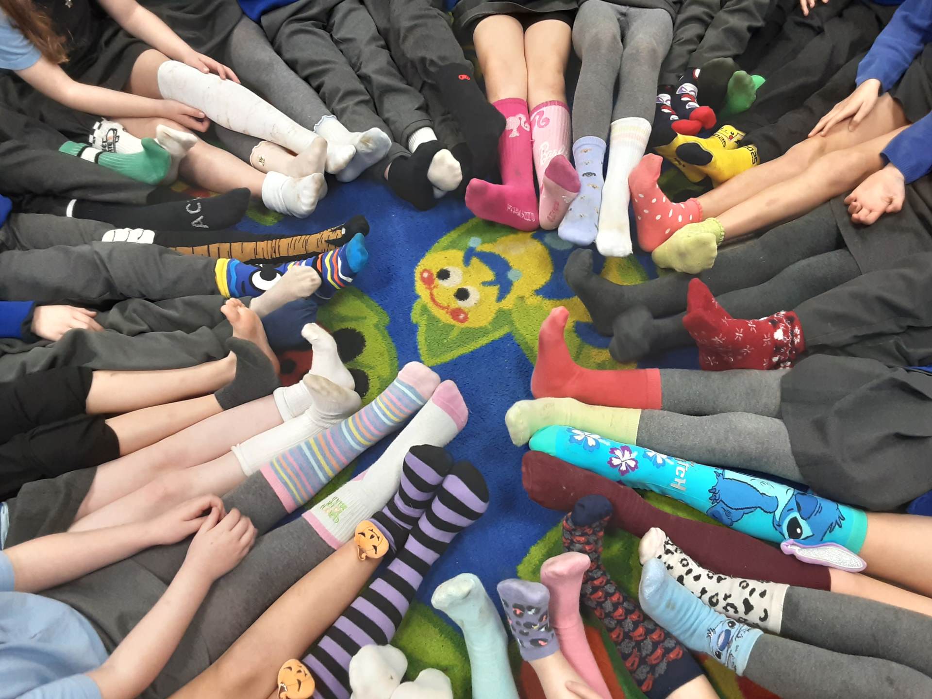 Odd Sock Day - As part of Anti-Bullying Week, we wore odd socks to school today. We discussed how this was to celebrate our differences. We spoke about choosing respect - treating other people with kindness despite them being different or having different views. We designed our own odd socks with our favourite colours, patterns and designs.