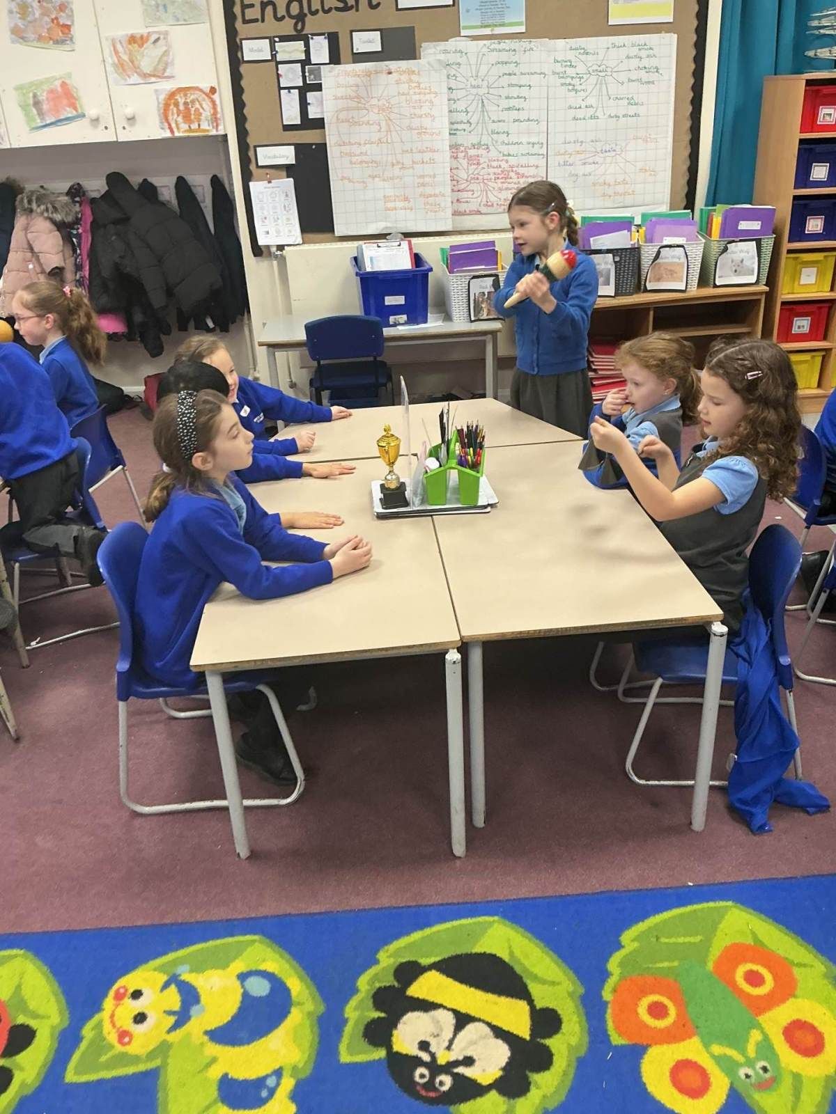 We had a noisy afternoon exploring the instruments. We played them loudly, softly, peacefully, to make us jump etc. We also discussed different situations where the noises the instruments make could be used.