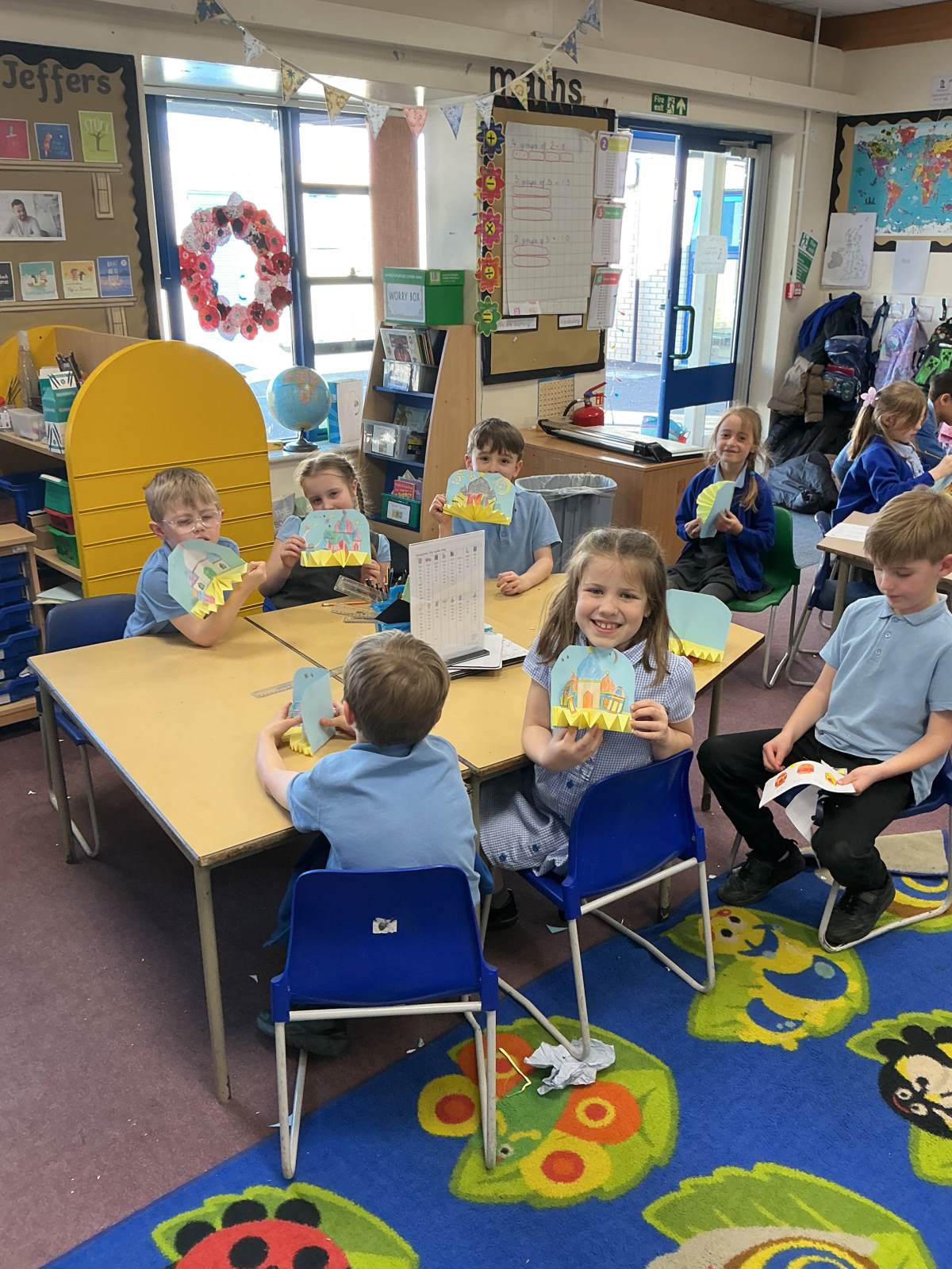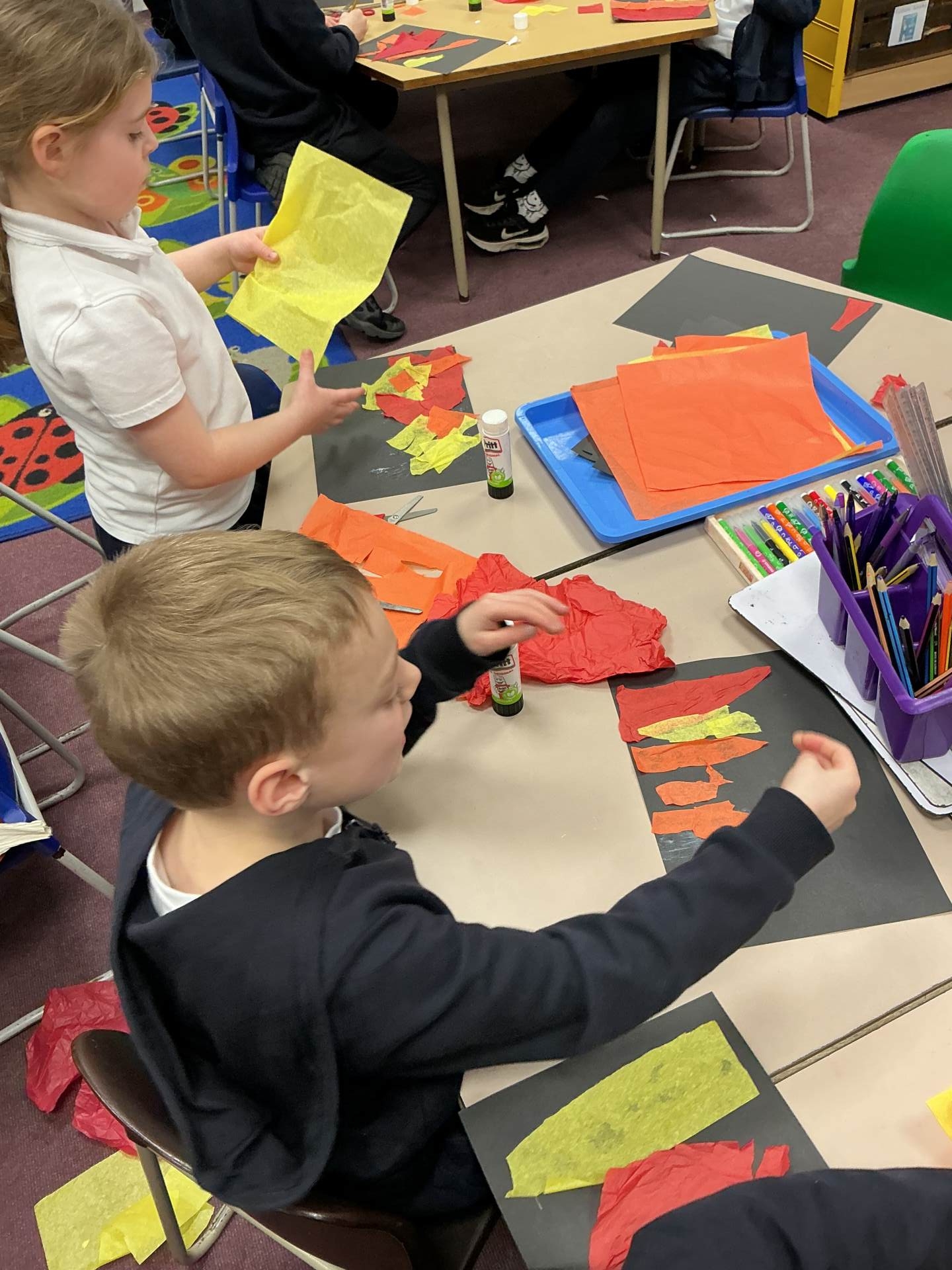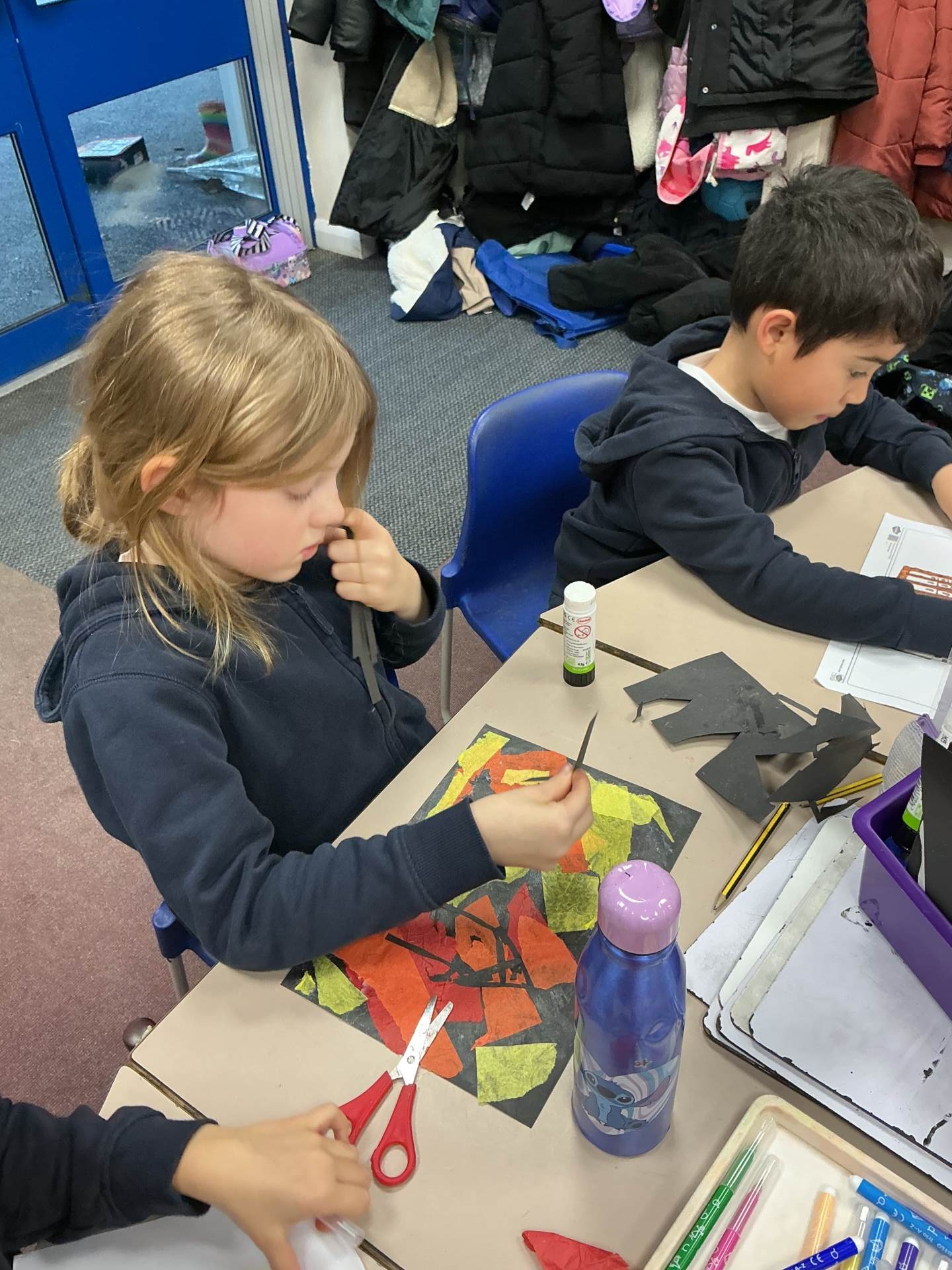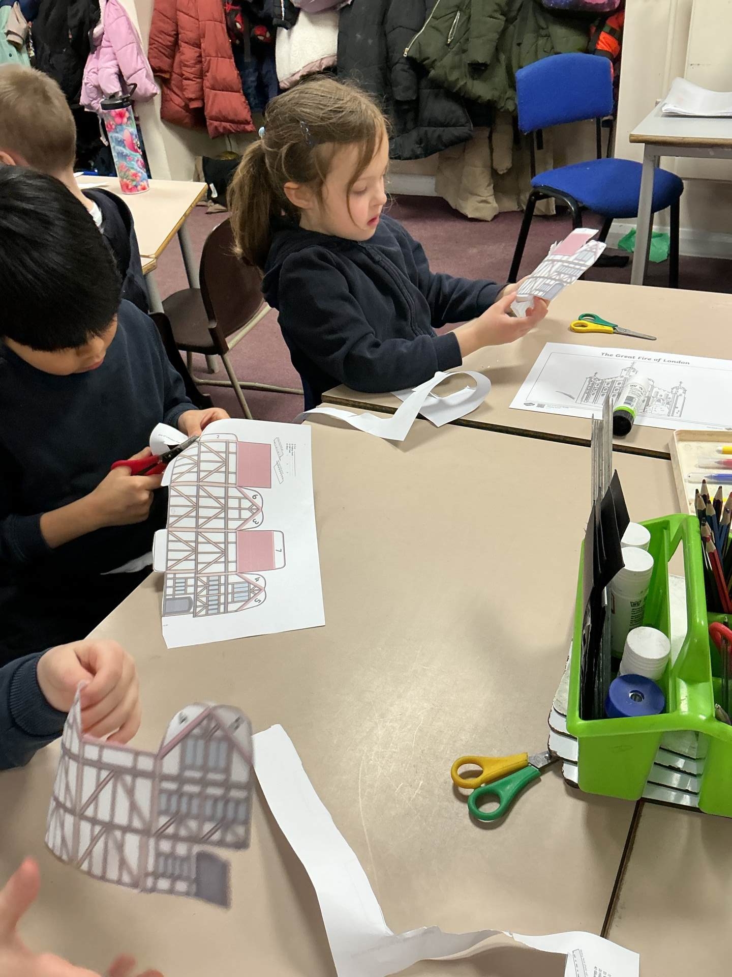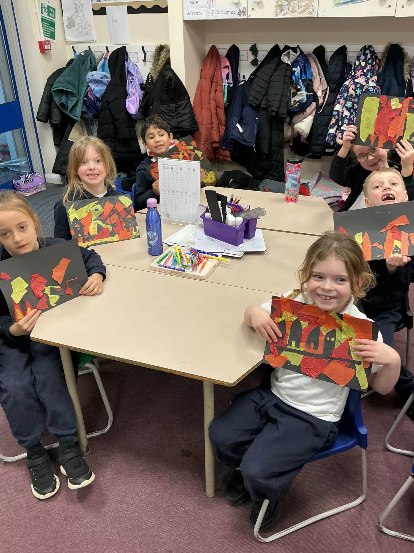 Today the children have had a brilliant day learning all about The Great Fire of London. They started off creating a mind map of what they already knew. They then built paper houses ready to burn the next day(as it was too rainy today). After break they made collage pictures depicting the great fire. During the afternoon, they performed a dance learning about how the fire started in Pudding Lane. At the end of the day, the children learnt the song September 1666.