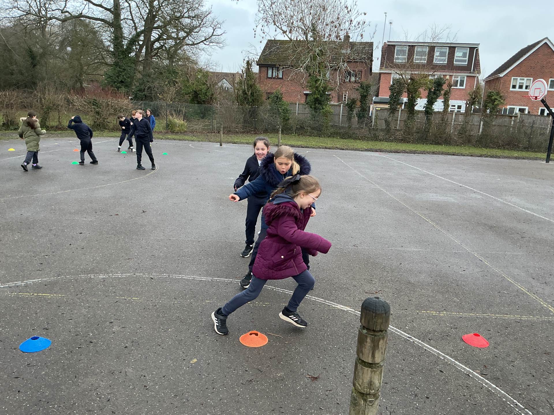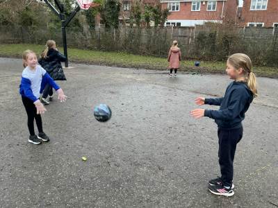 Today in P.E., we were looking at dodging and passing in basket ball.