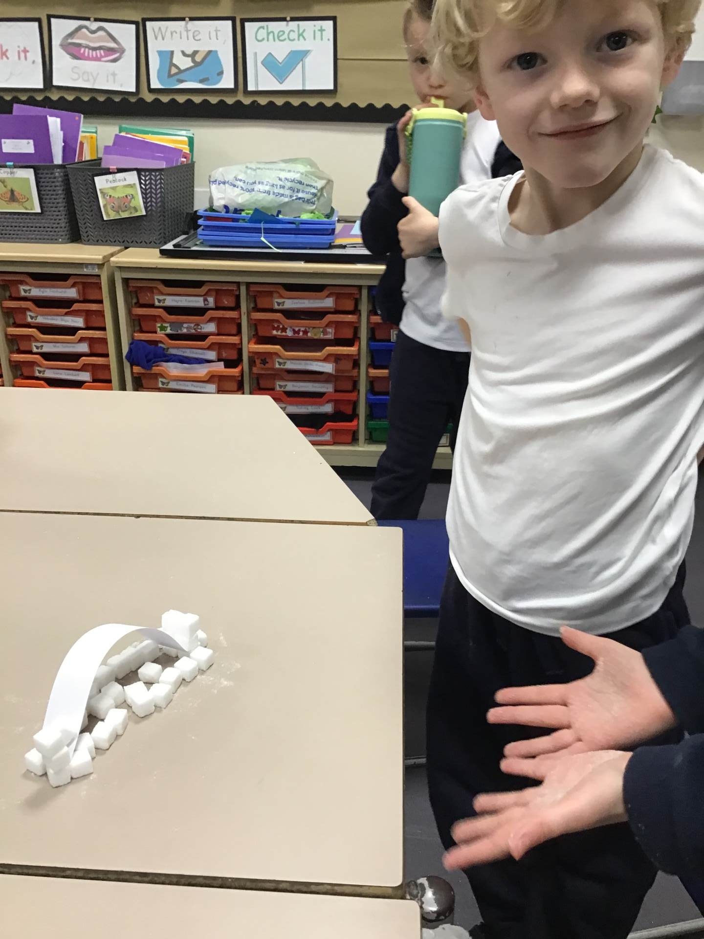 This week we used what we have learnt about bridges to make our own out of sugar cubes! We are engineers!