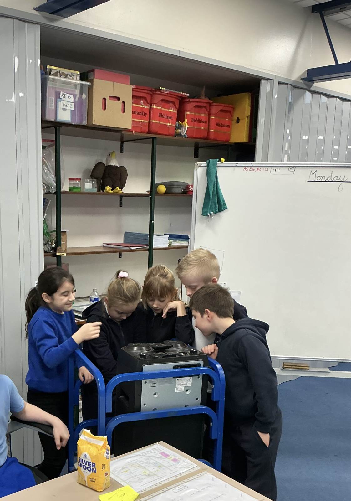 Today in Science we looked at how sound travels differently through gas, liquid and solid.