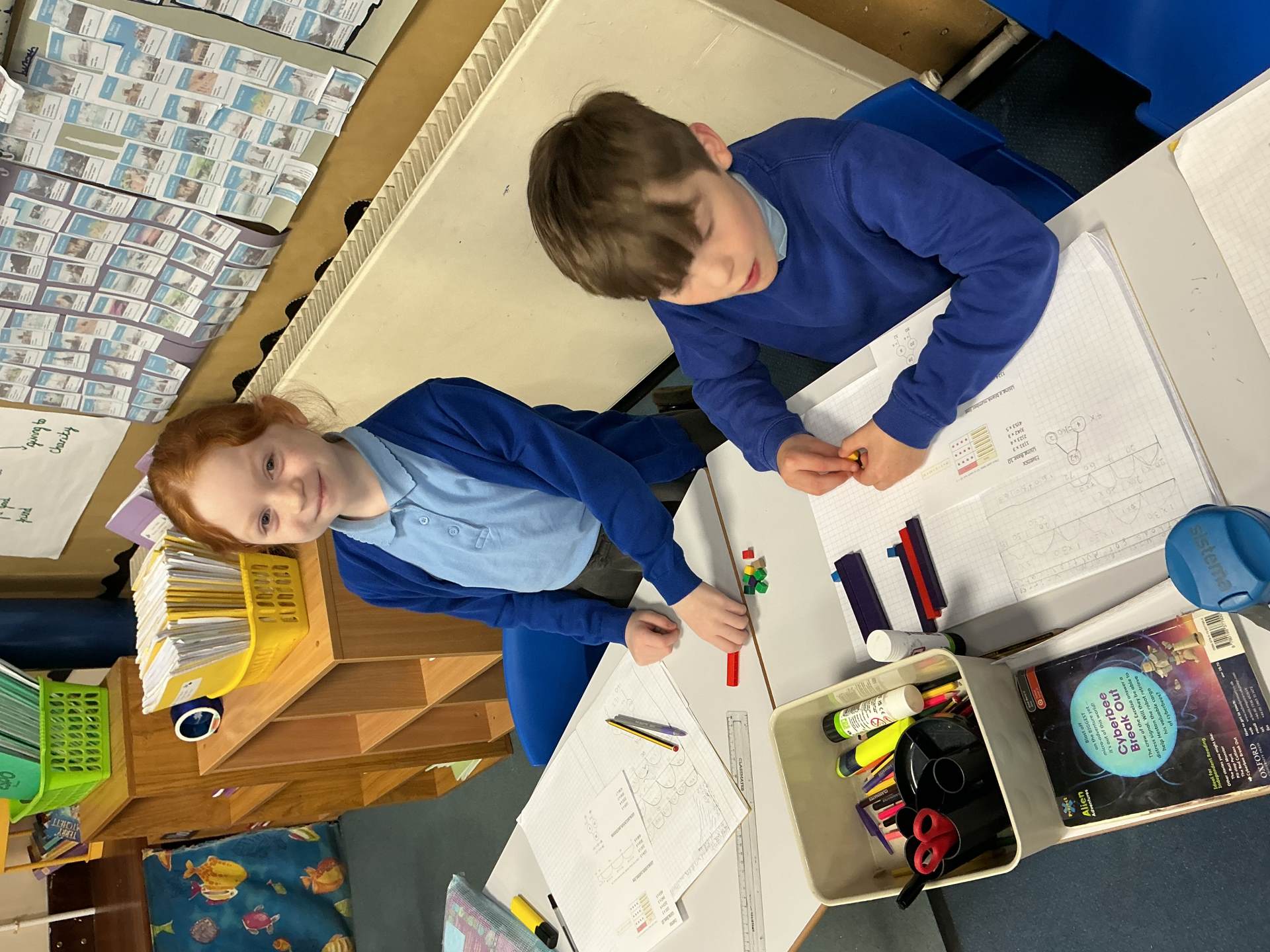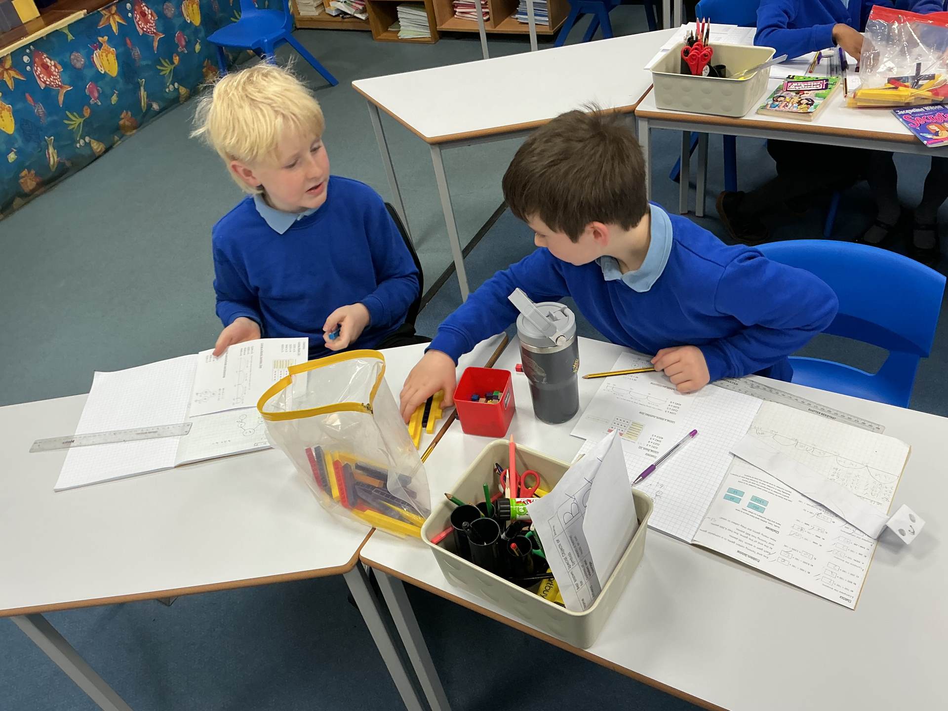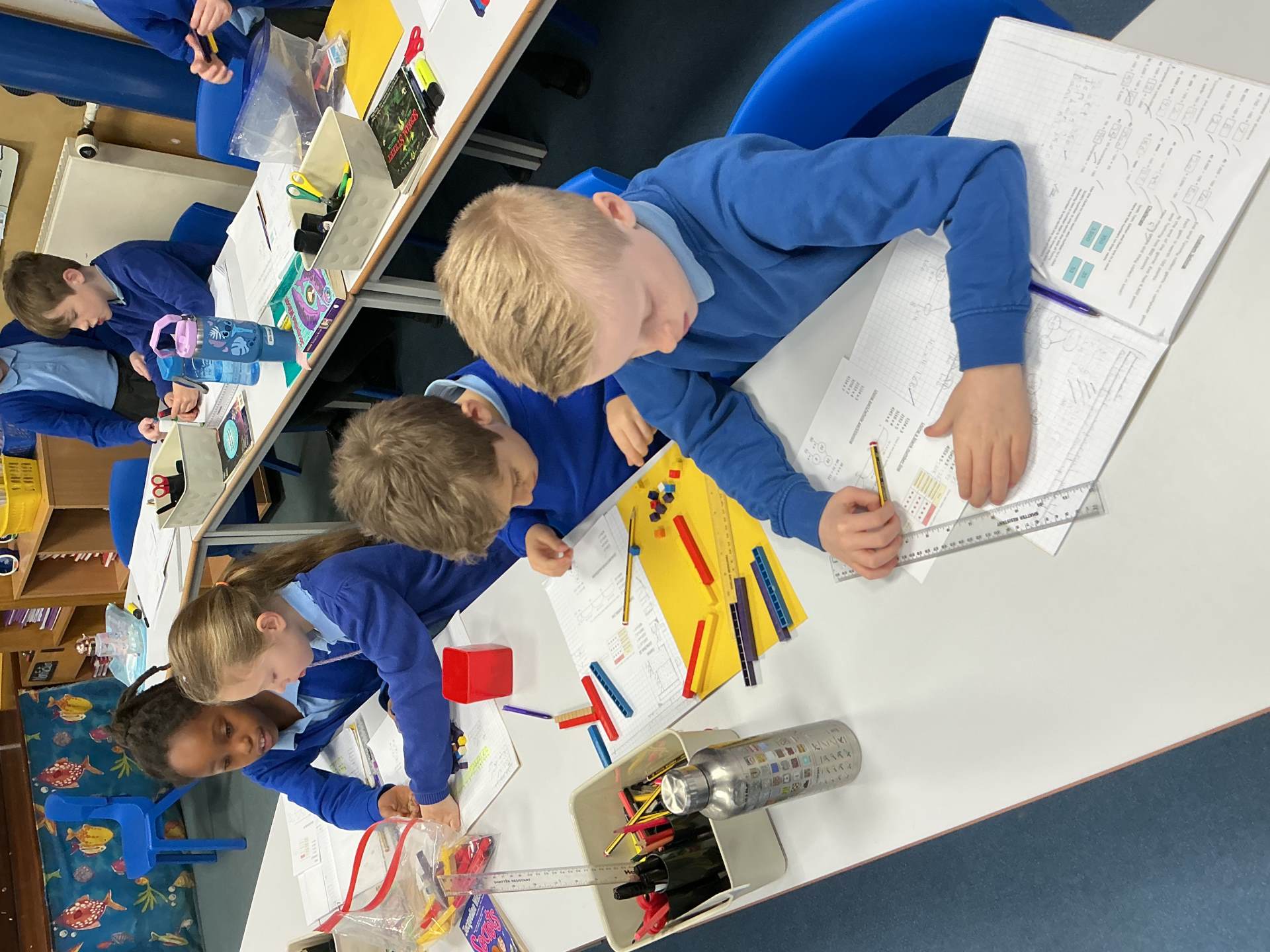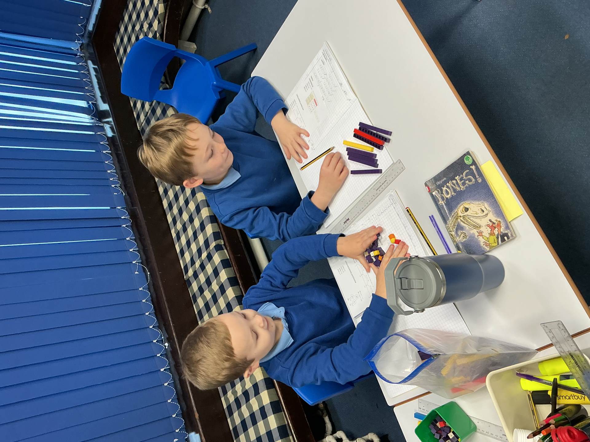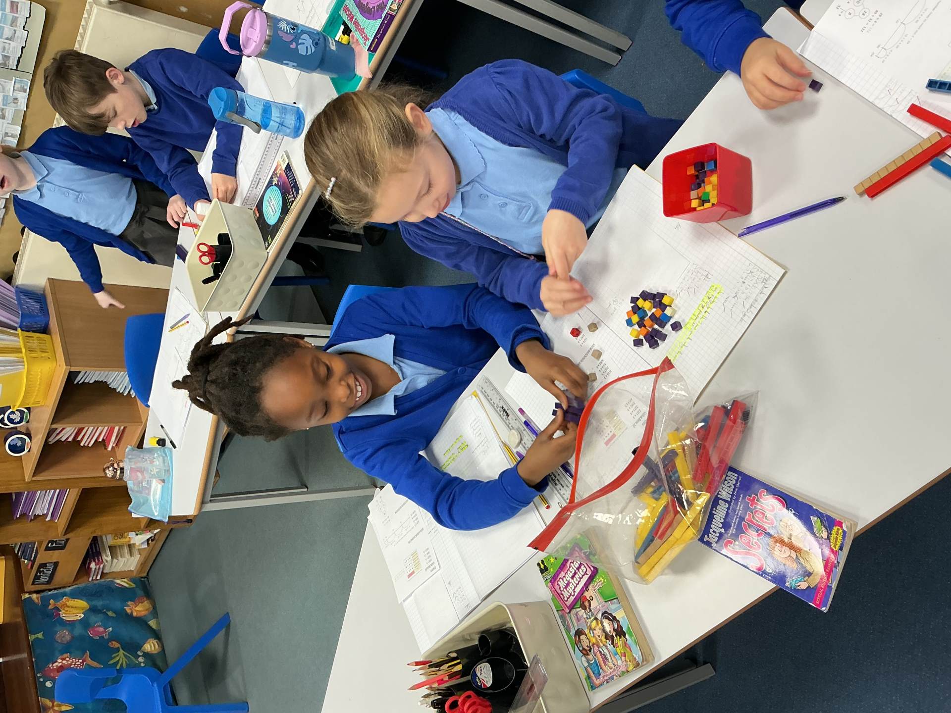 In Maths today we used informal methods, including Base 10, number lines and partitioning, to complete multiplication calculations.