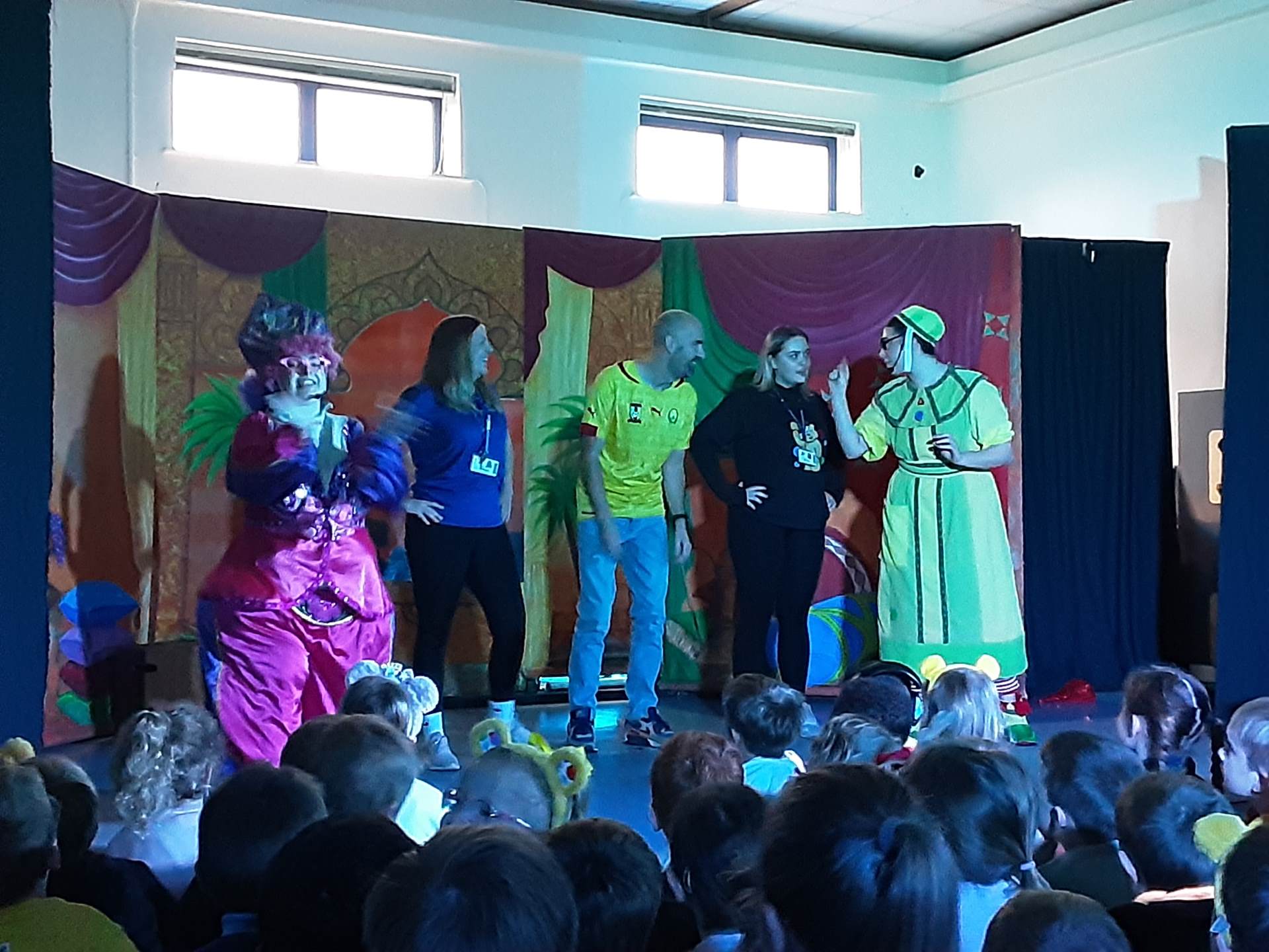 Mrs Woods, Mr Brownsell and Miss Bird were surprised to find themselves volunteered to dance in the Panto - much to the children's delight!