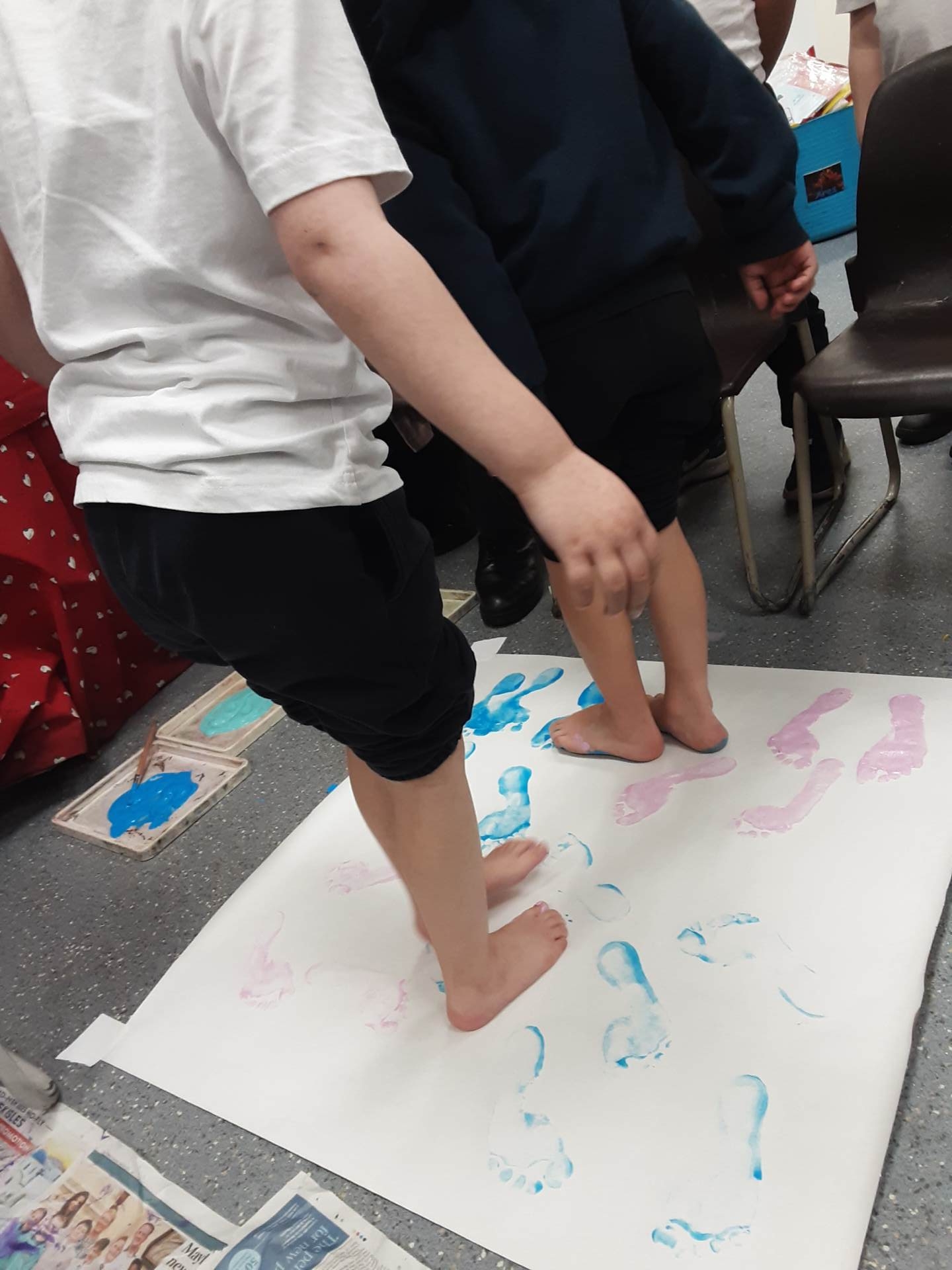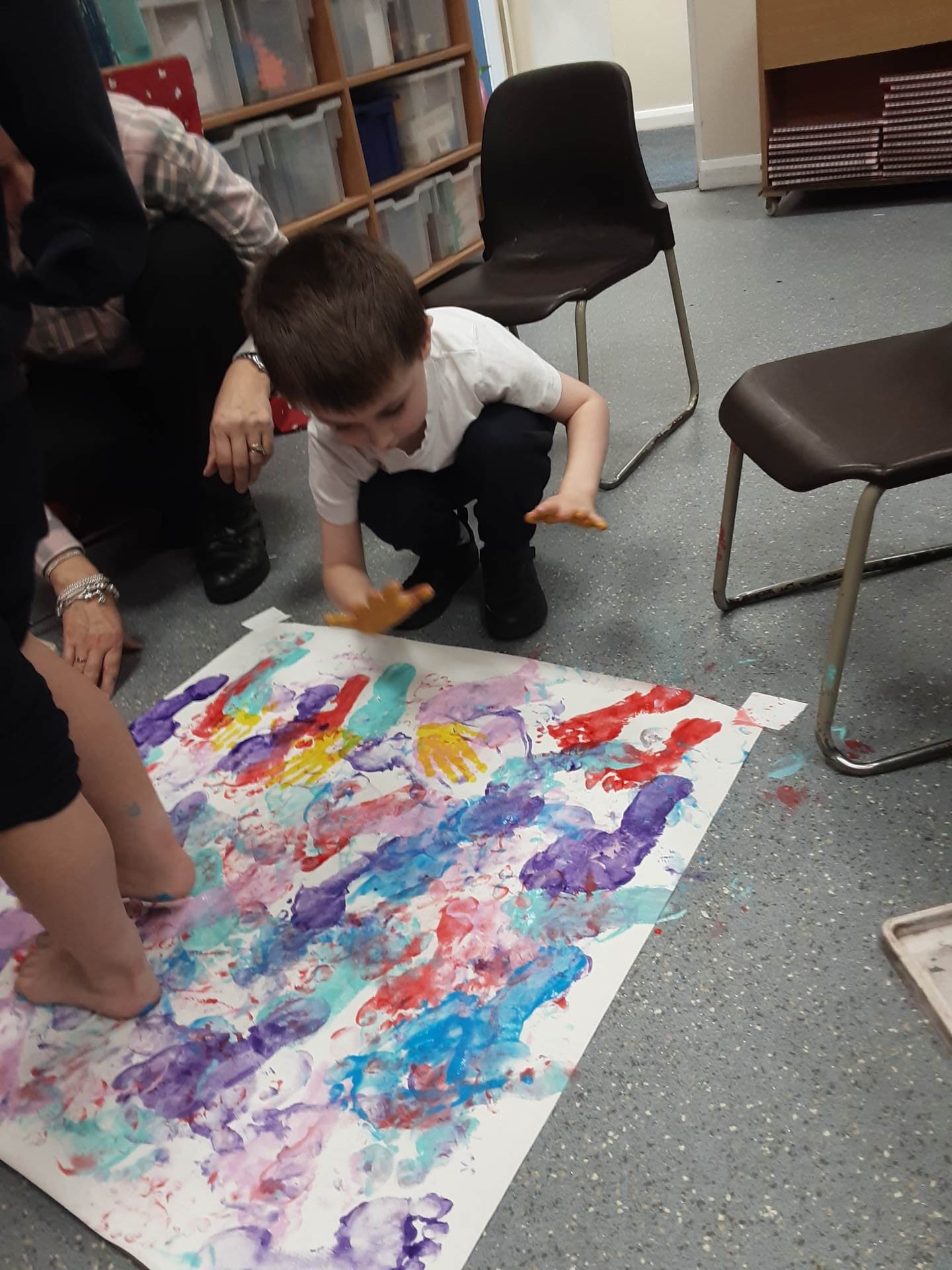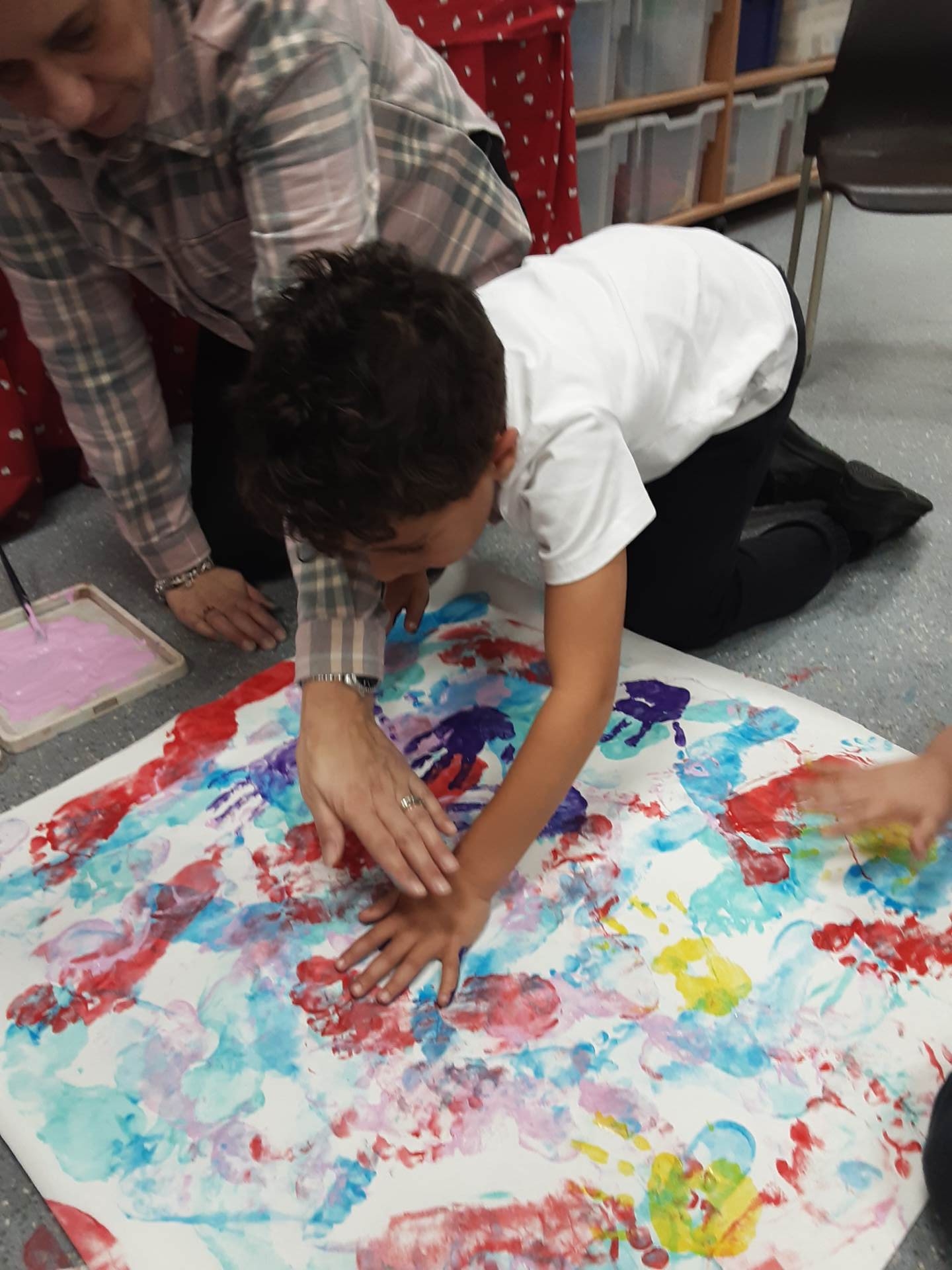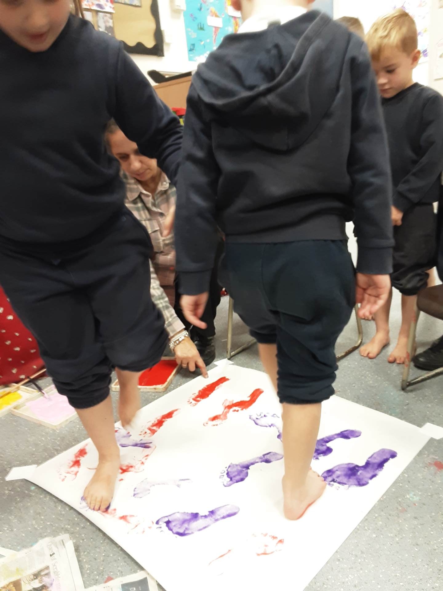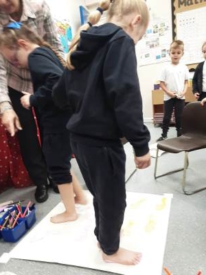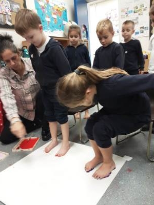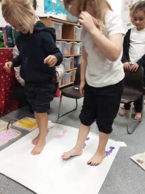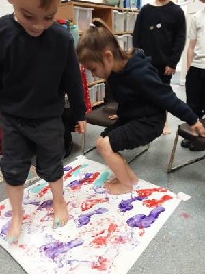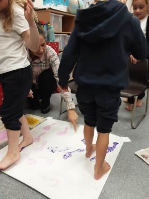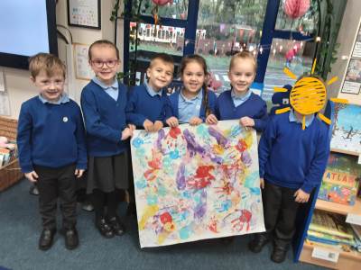 This week, our table groups worked collaboratively to create a wonderful piece of artwork. Each child used either their handprint or footprint to make their mark on a large sheet of paper, choosing a different colour to contribute to the design. The children are extremely proud of their collective masterpiece, and next week we will be using these colourful prints as the canvas for our next exciting art project!