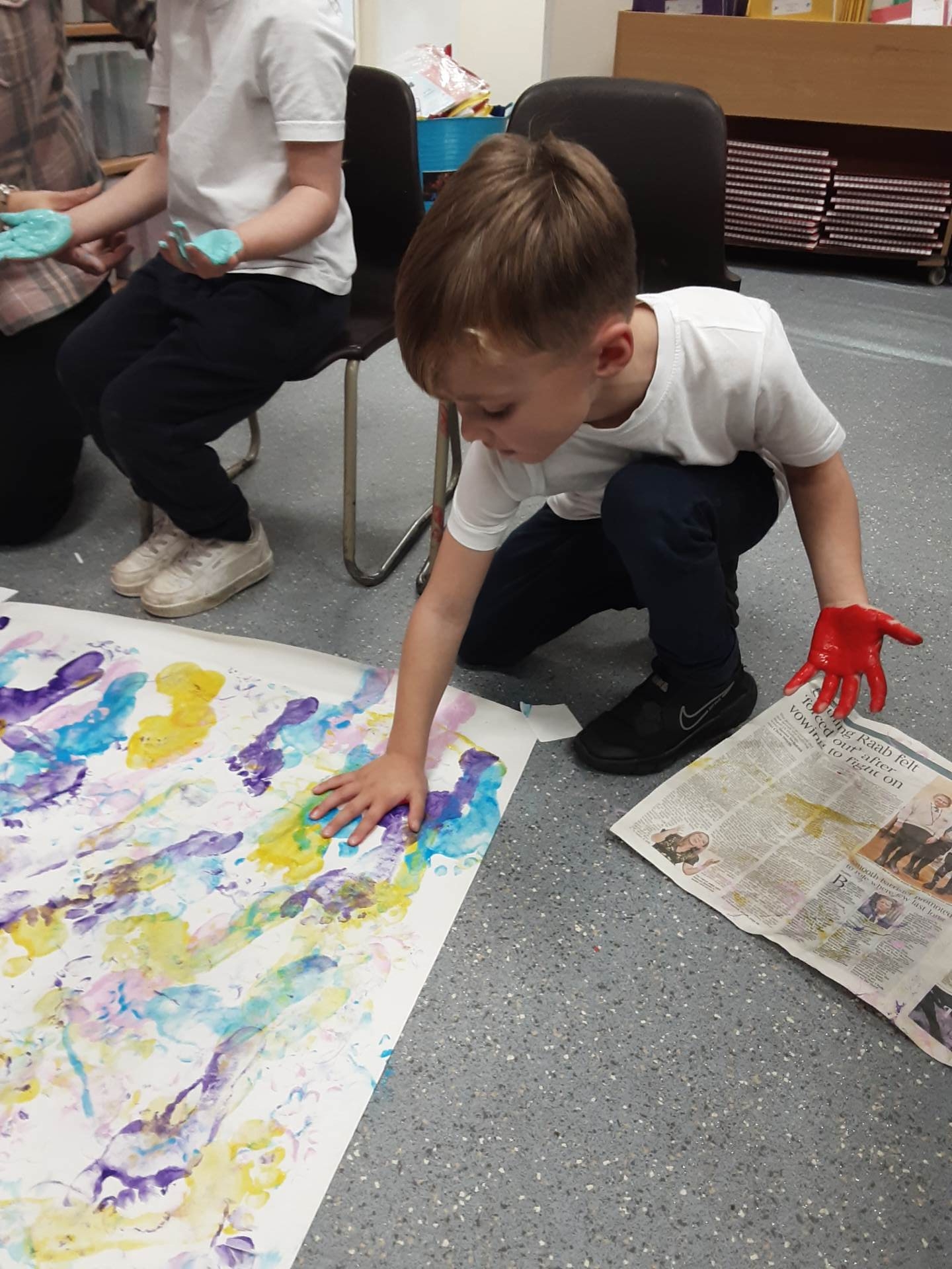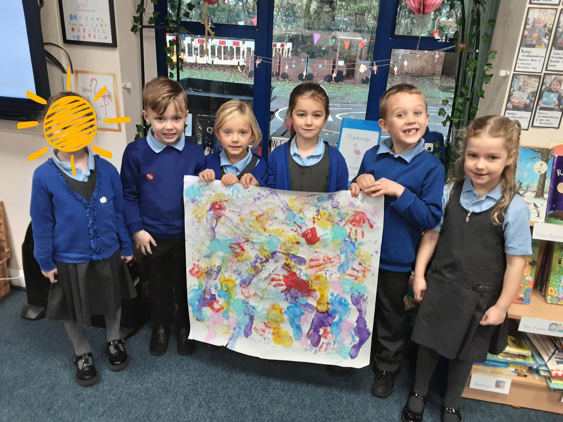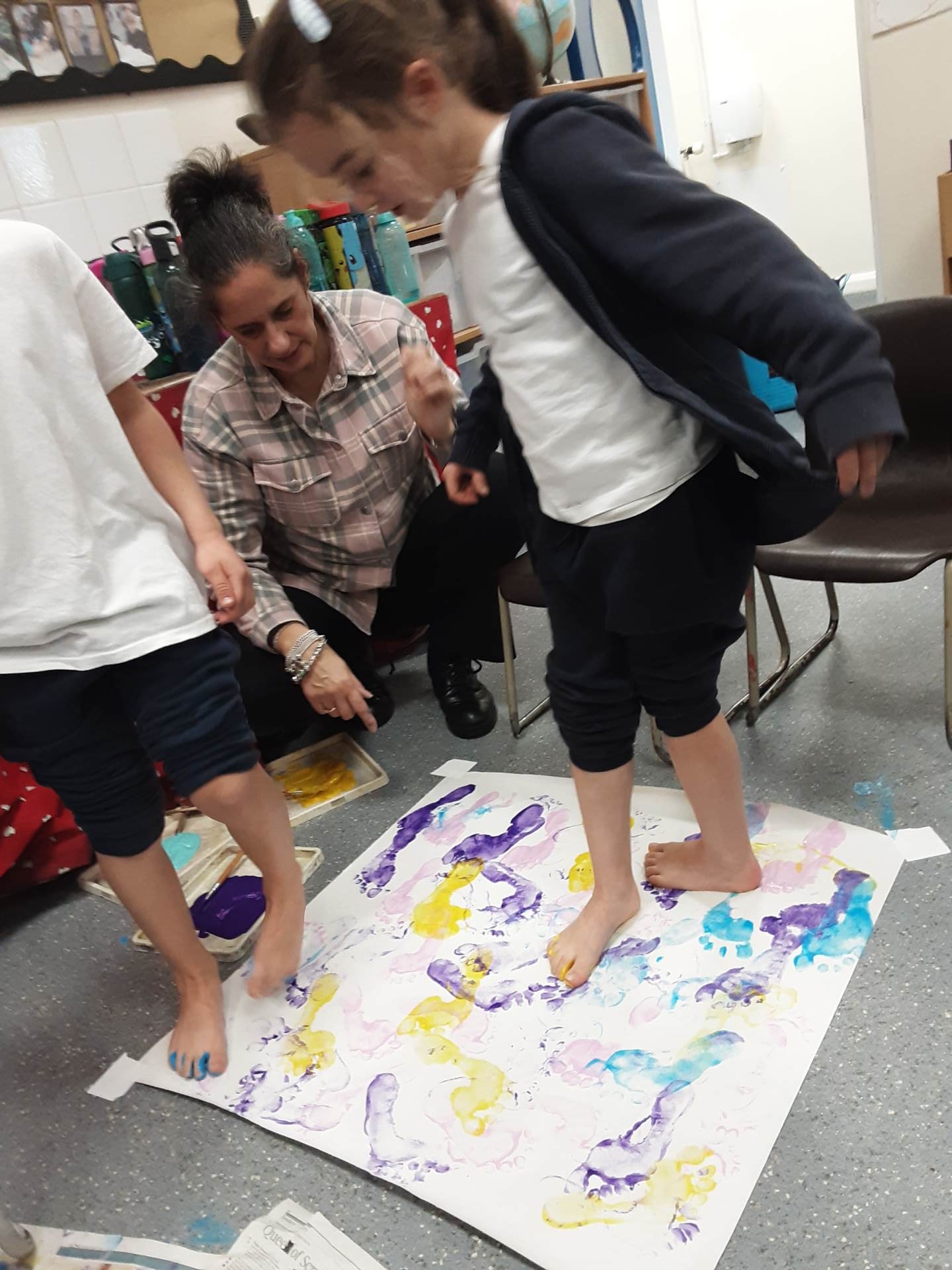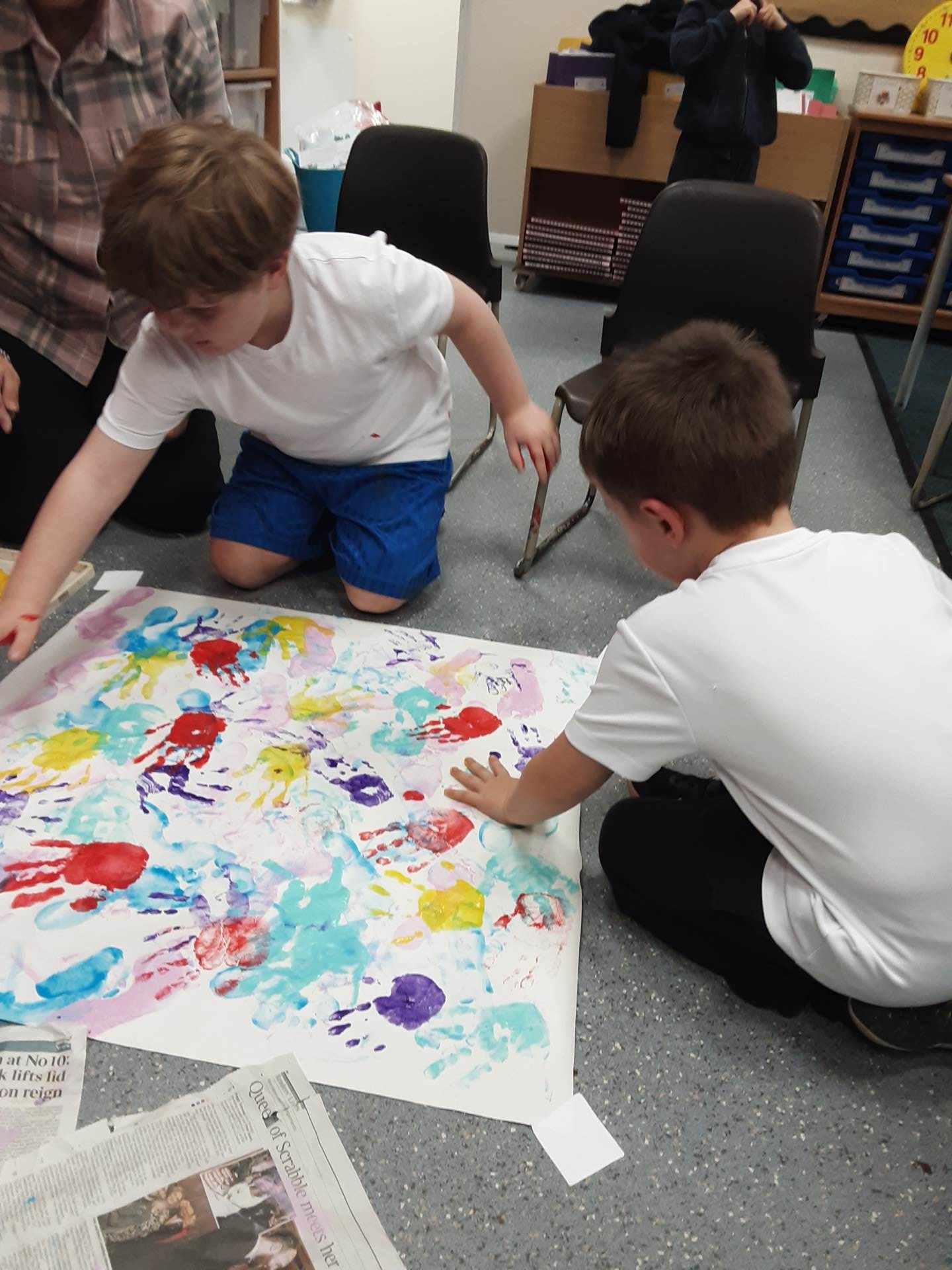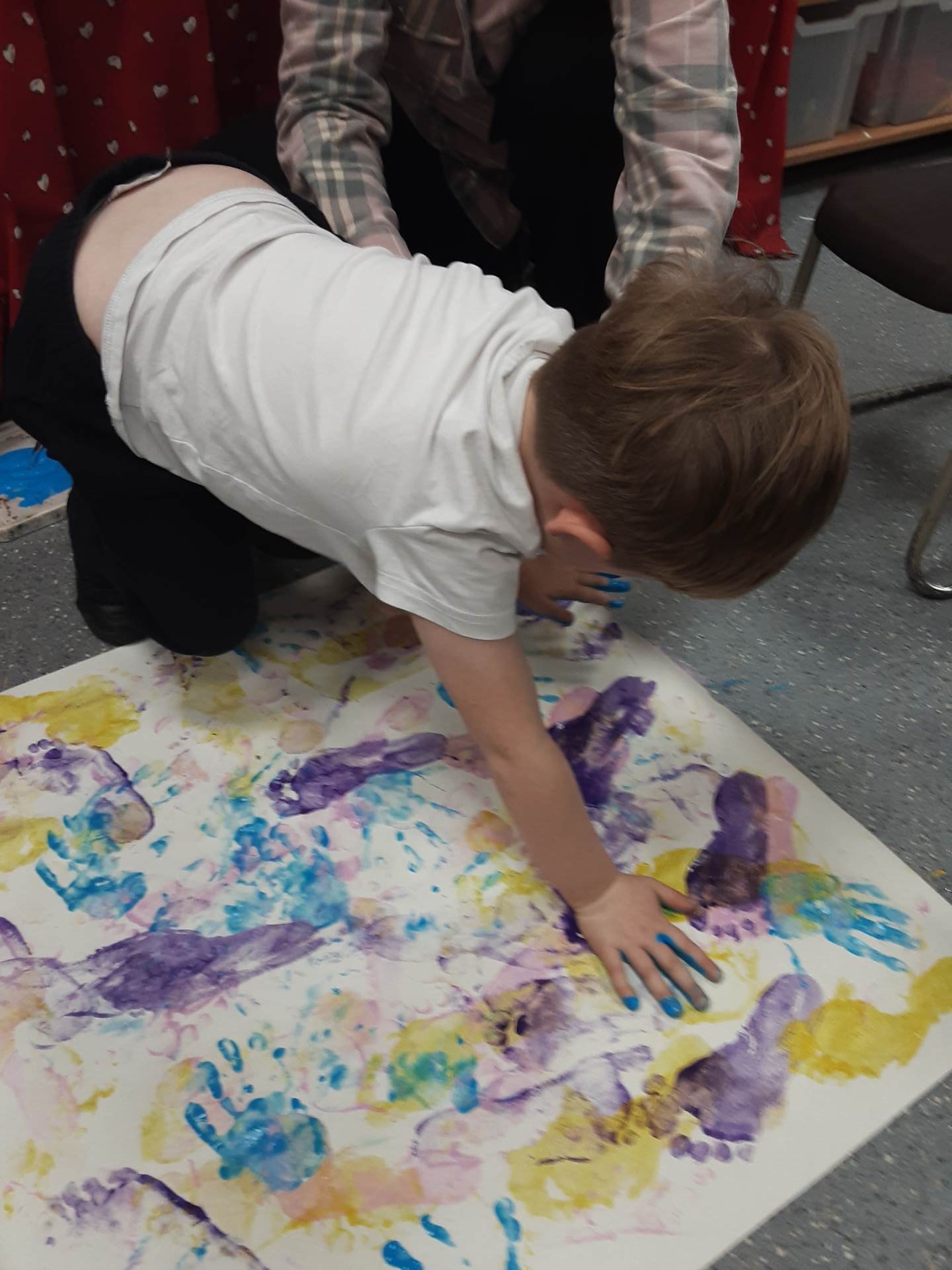 This week, our table groups worked collaboratively to create a wonderful piece of artwork. Each child used either their handprint or footprint to make their mark on a large sheet of paper, choosing a different colour to contribute to the design. The children are extremely proud of their collective masterpiece, and next week we will be using these colourful prints as the canvas for our next exciting art project!
