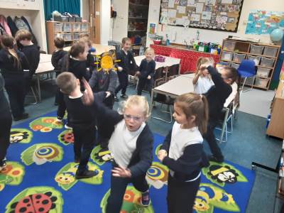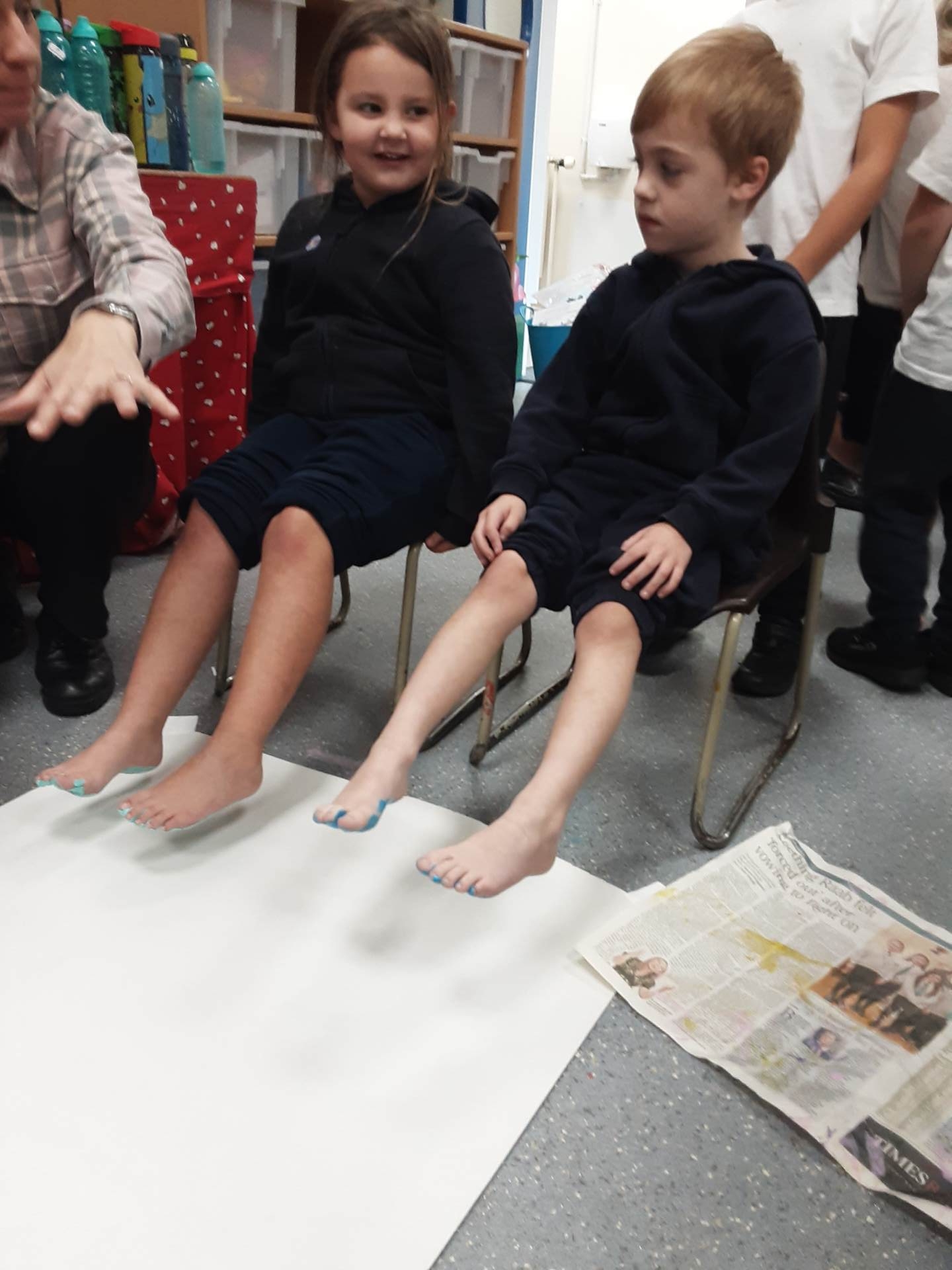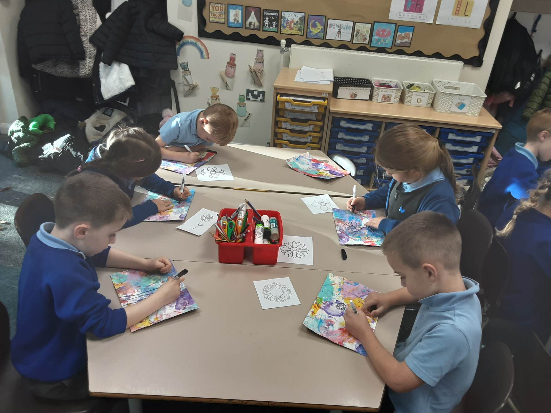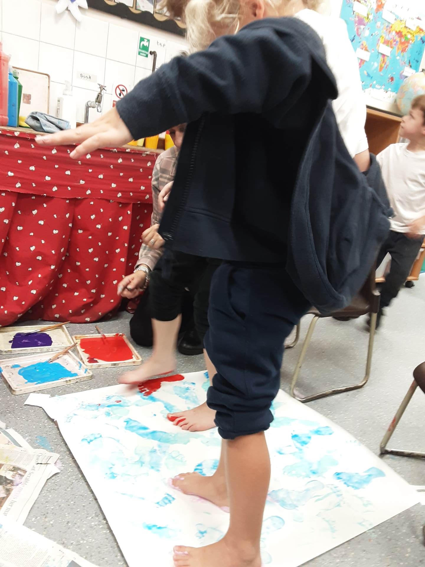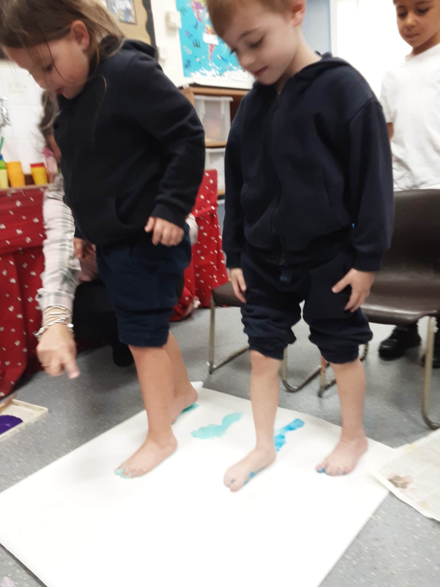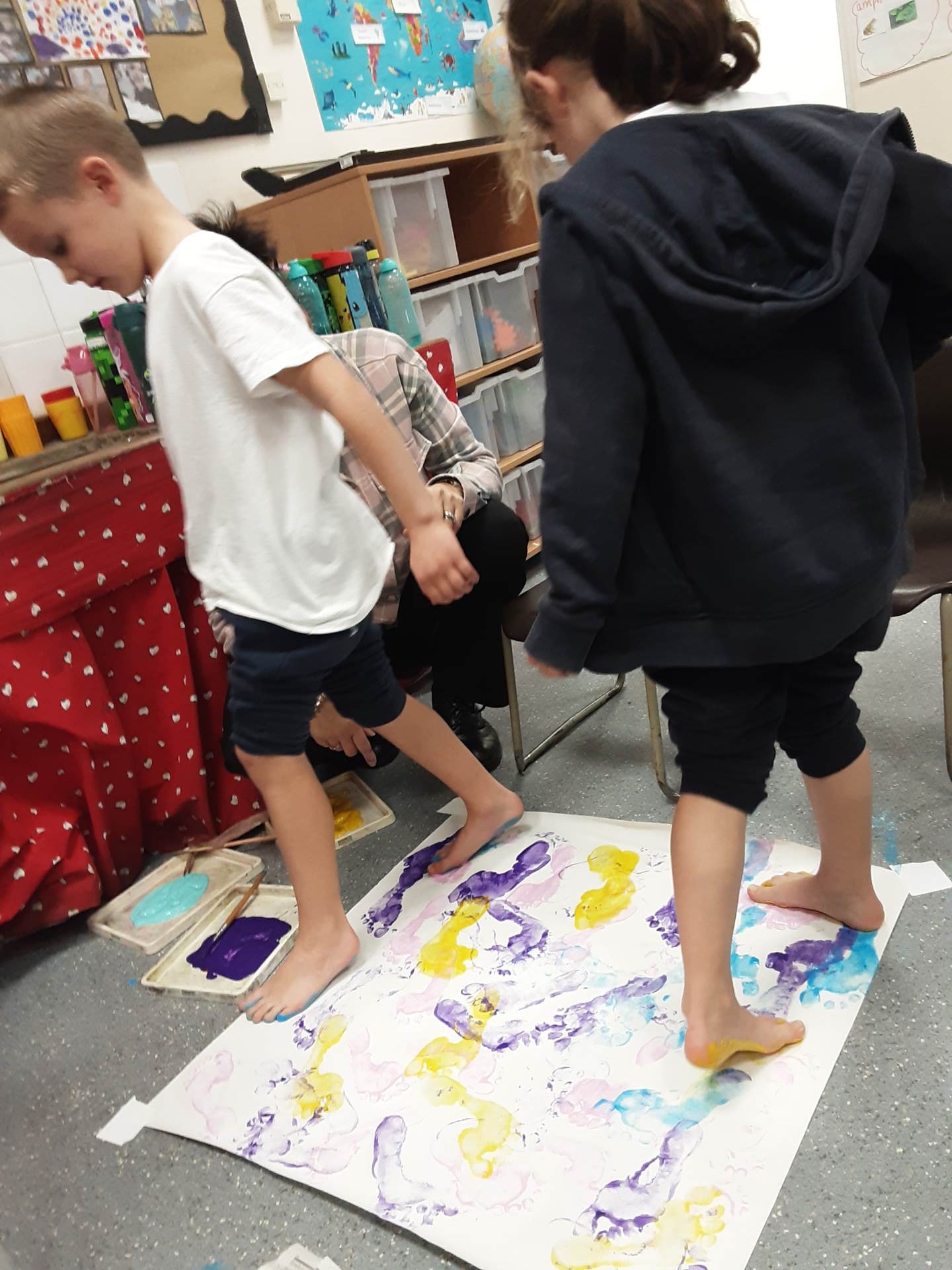 This week, our table groups worked collaboratively to create a wonderful piece of artwork. Each child used either their handprint or footprint to make their mark on a large sheet of paper, choosing a different colour to contribute to the design. The children are extremely proud of their collective masterpiece, and next week we will be using these colourful prints as the canvas for our next exciting art project!