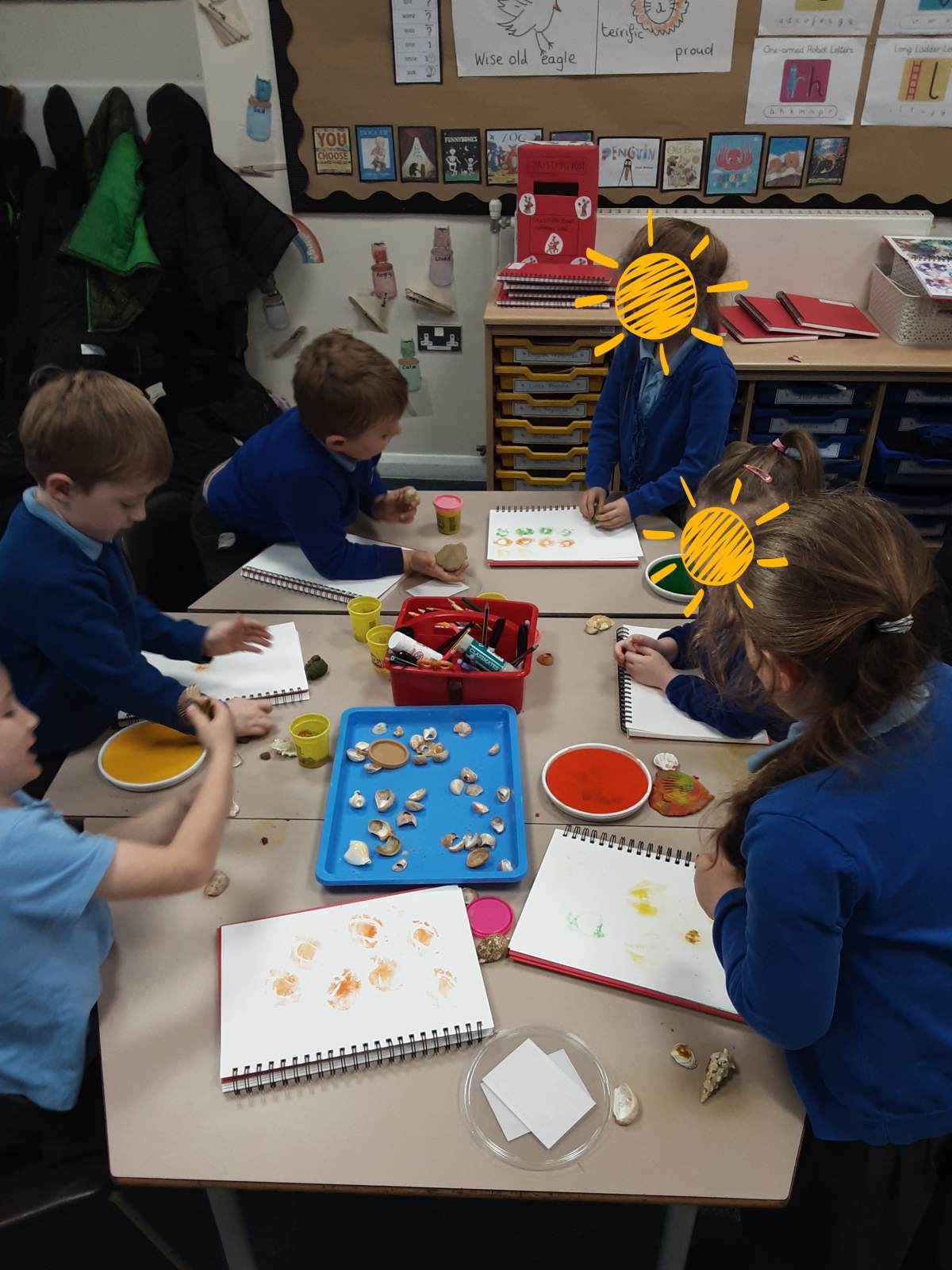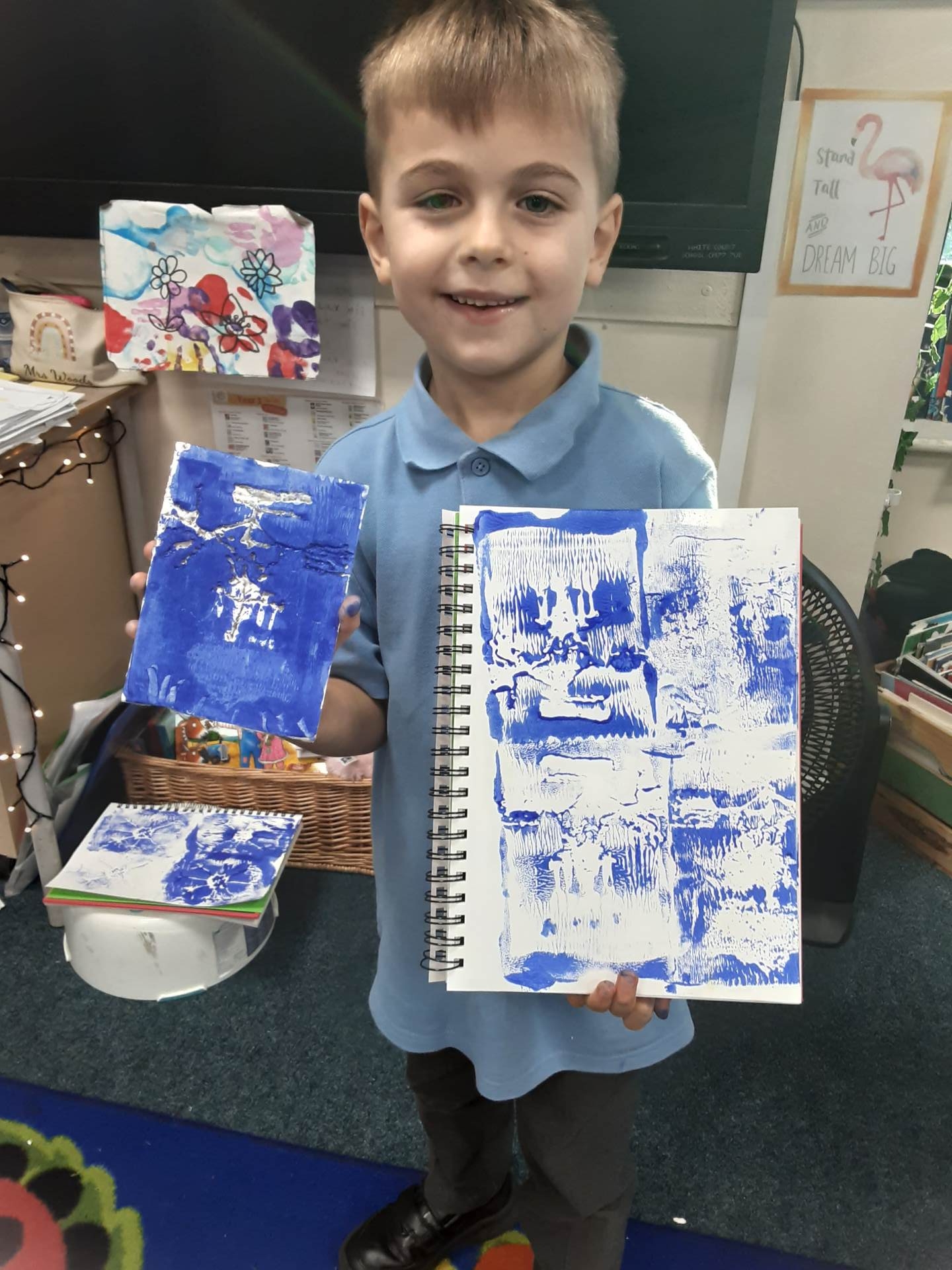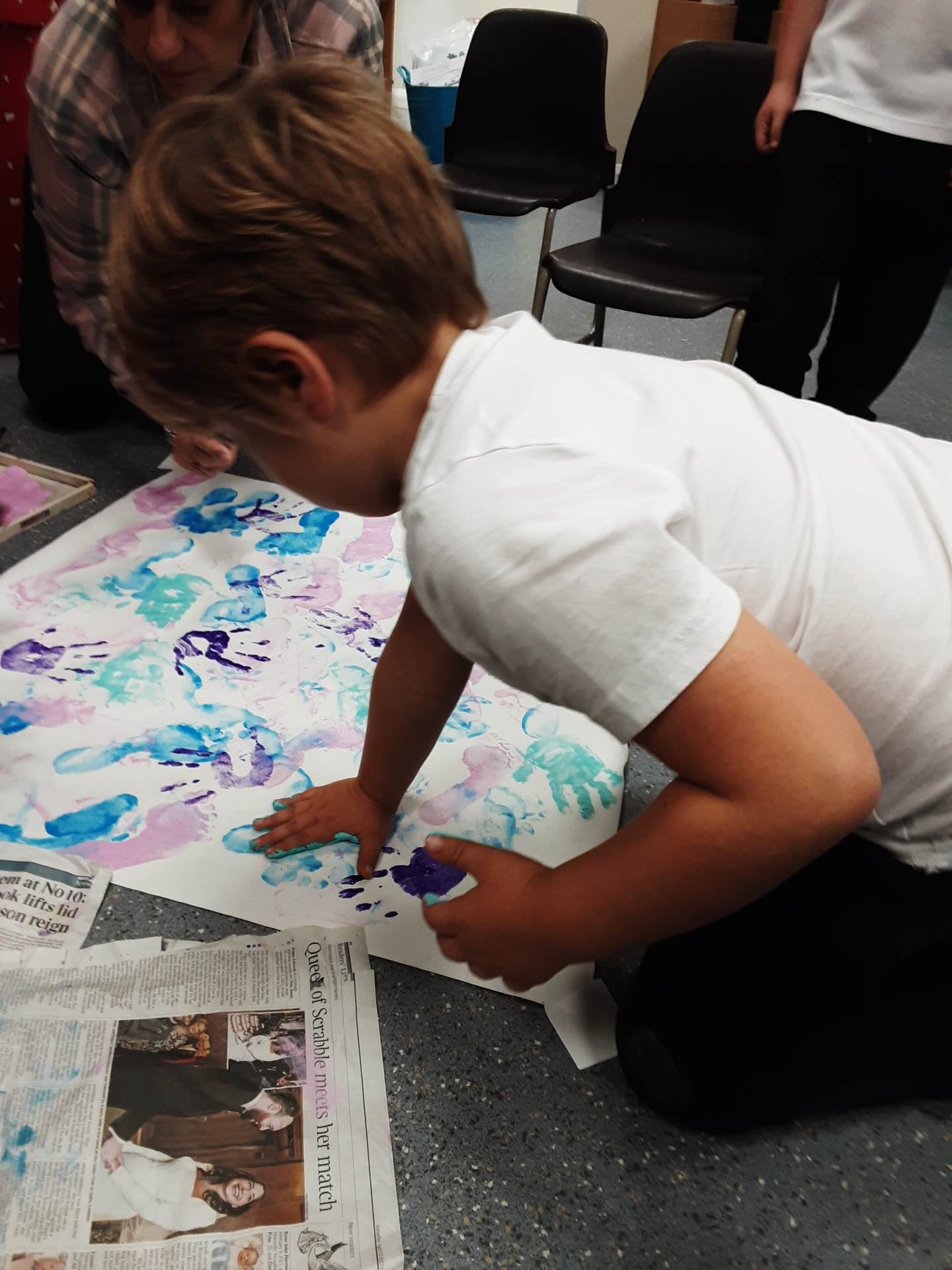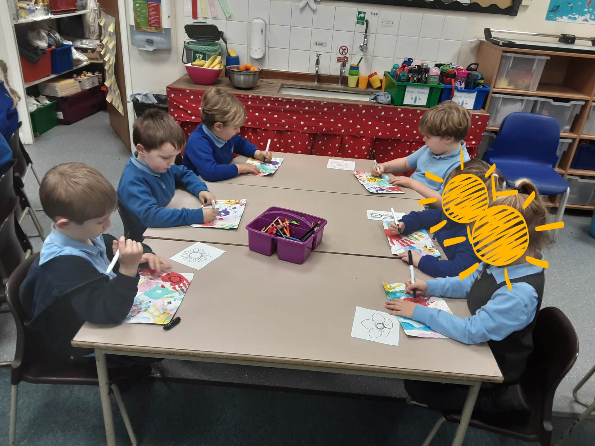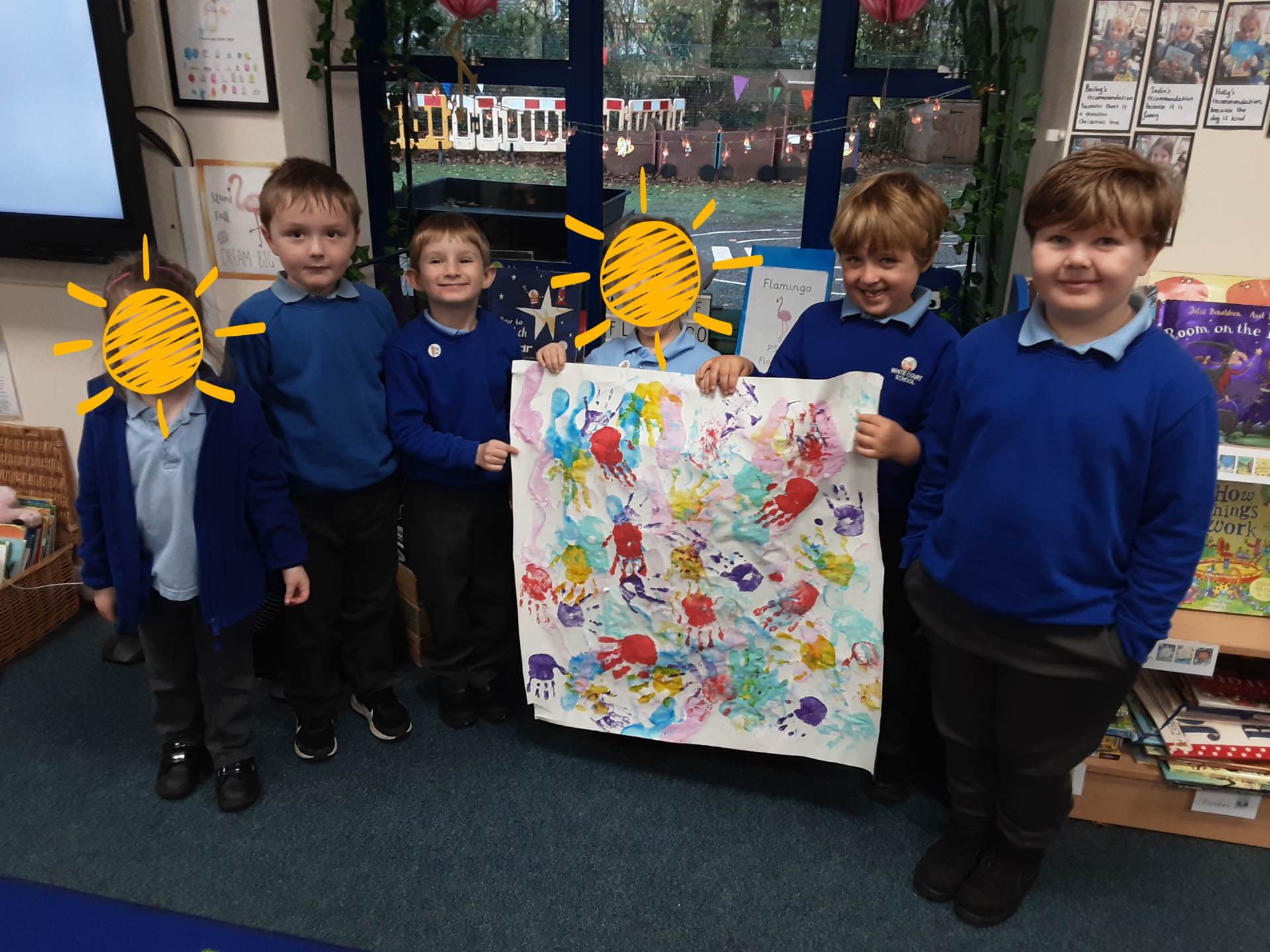 This week, our table groups worked collaboratively to create a wonderful piece of artwork. Each child used either their handprint or footprint to make their mark on a large sheet of paper, choosing a different colour to contribute to the design. The children are extremely proud of their collective masterpiece, and next week we will be using these colourful prints as the canvas for our next exciting art project!
