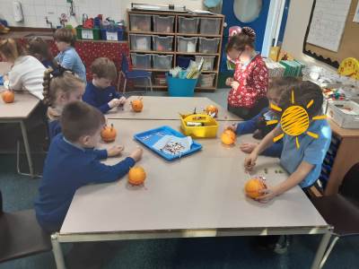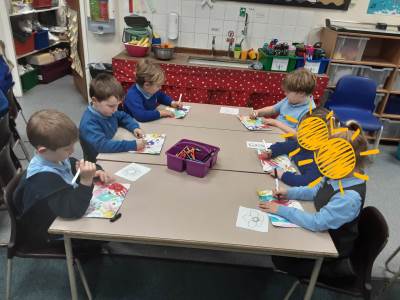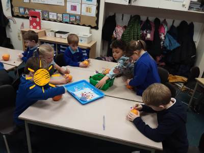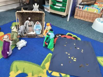 This week in Science, we have been sorting animals into their three groups: herbivores, carnivores and omnivores. In RE, we welcomed Katie from Notley Church, who visited to discuss the Nativity Story. She used puppets to retell the story and encouraged the children to think of ways they could send a message of love to others. In Art, the children completed their hand and foot canvases by adding beautiful flower outlines. They are very proud of their stunning finished pieces!