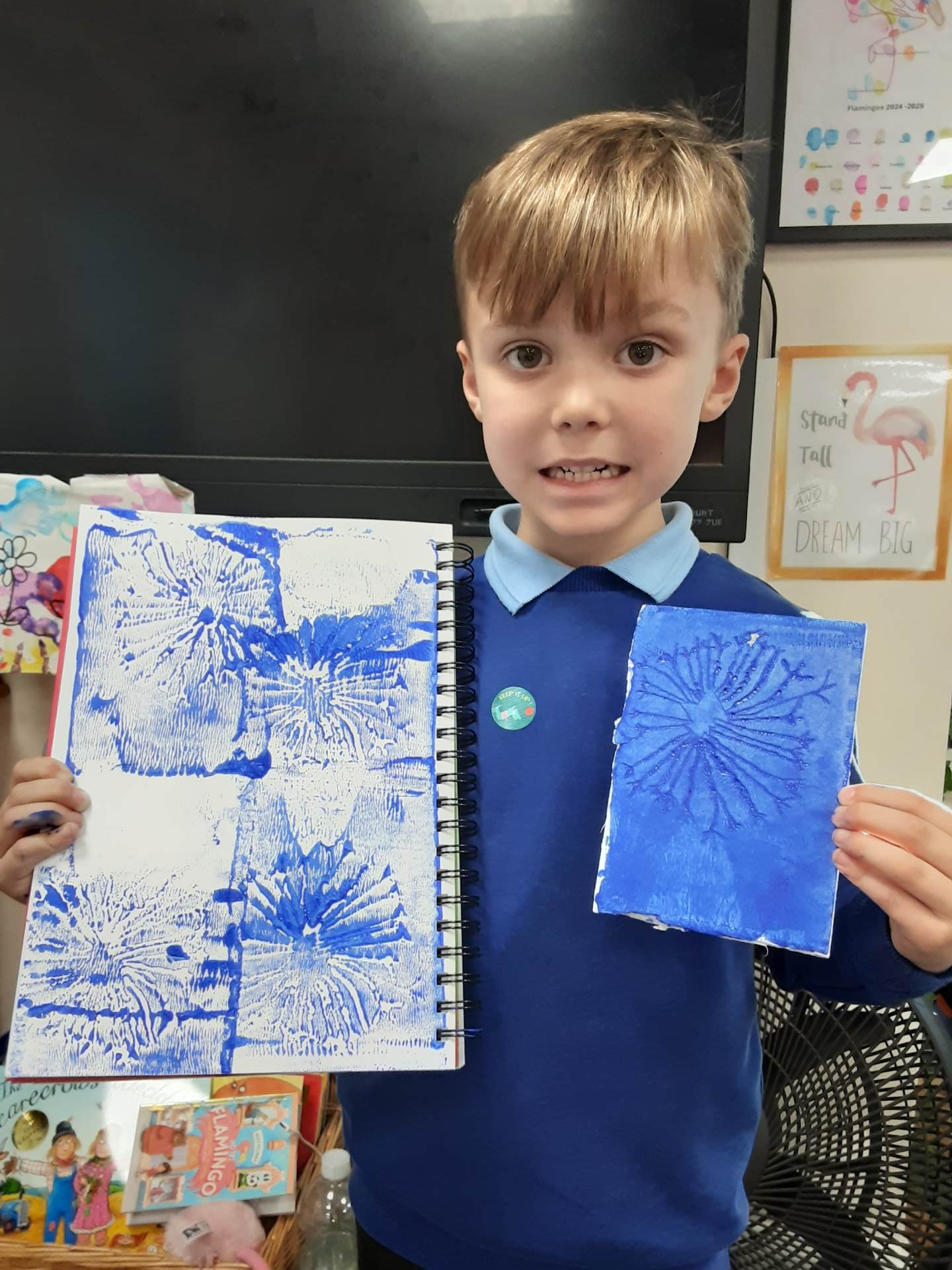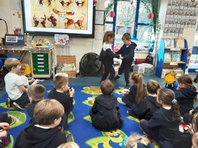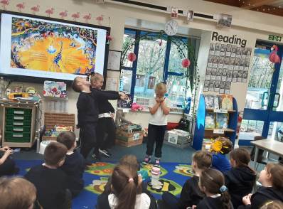 This week we visited Butterfly Class in Year 2, where they shared their instructions for making a “disgusting sandwich.” Our class listened carefully and thoroughly enjoyed the experience. In English, we brought Giraffes Can’t Dance to life through drama. The whole class took part in acting out the scenes, and volunteers then stepped forward to perform each one for their classmates. Finally, in Art the children explored printing techniques using plasticine and real shells. They enjoyed experimenting with different textures and patterns and produced some beautiful shell-inspired prints.