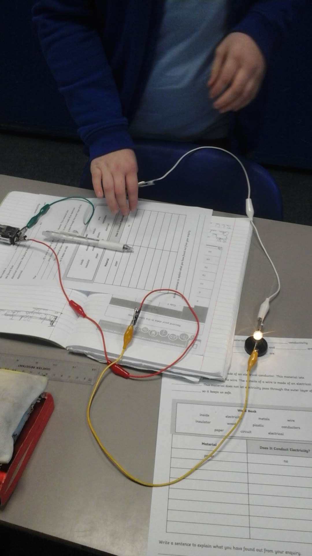 In Science, we have been exploring the properties of different materials. This week, we investigated electrical conductors and insulators. We made a circuit and then tested different materials. If the material conducted electricity, then the light bulb came on. We worked collaboratively in groups.