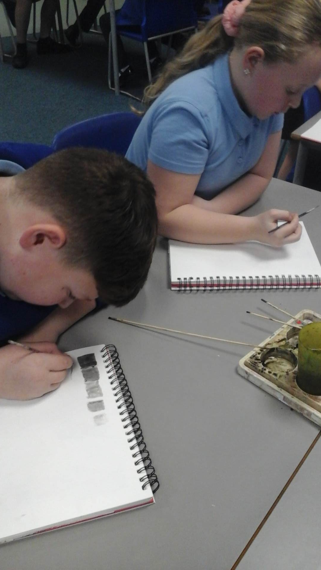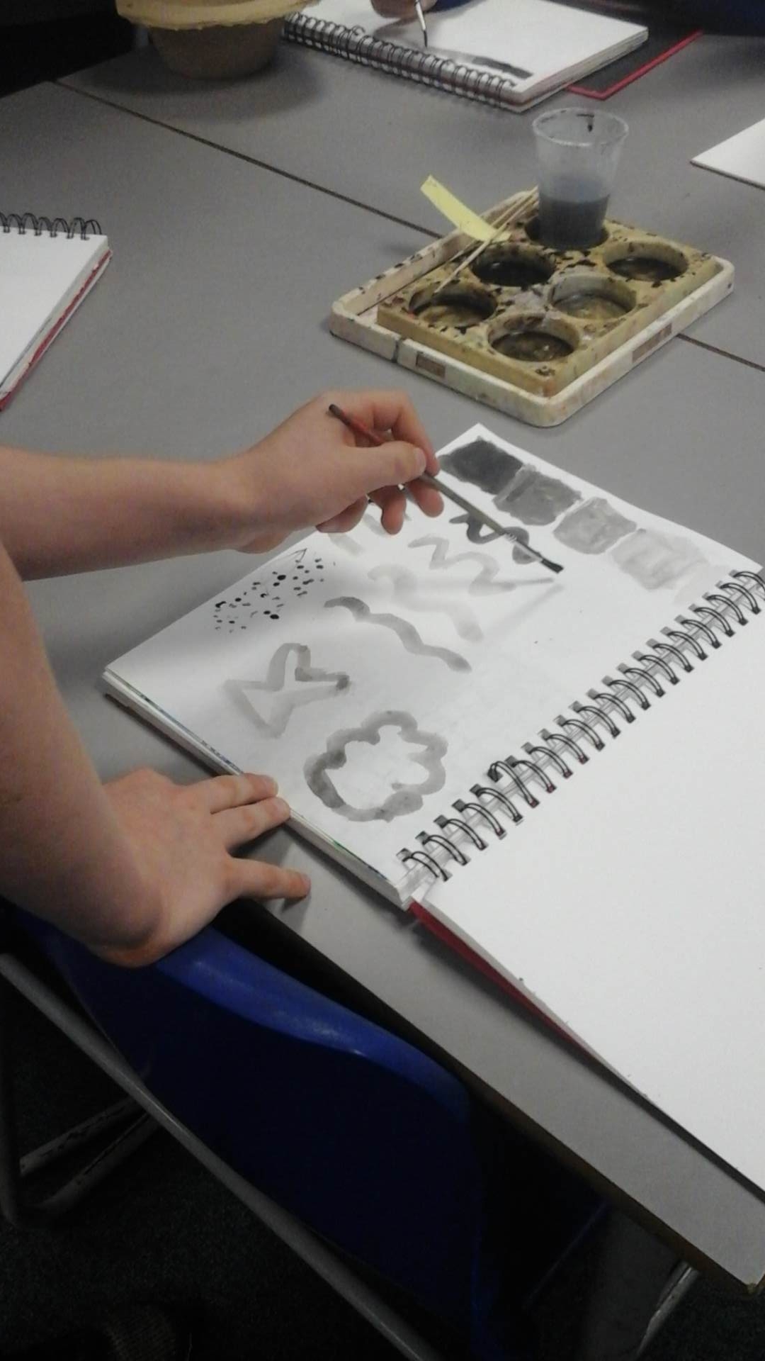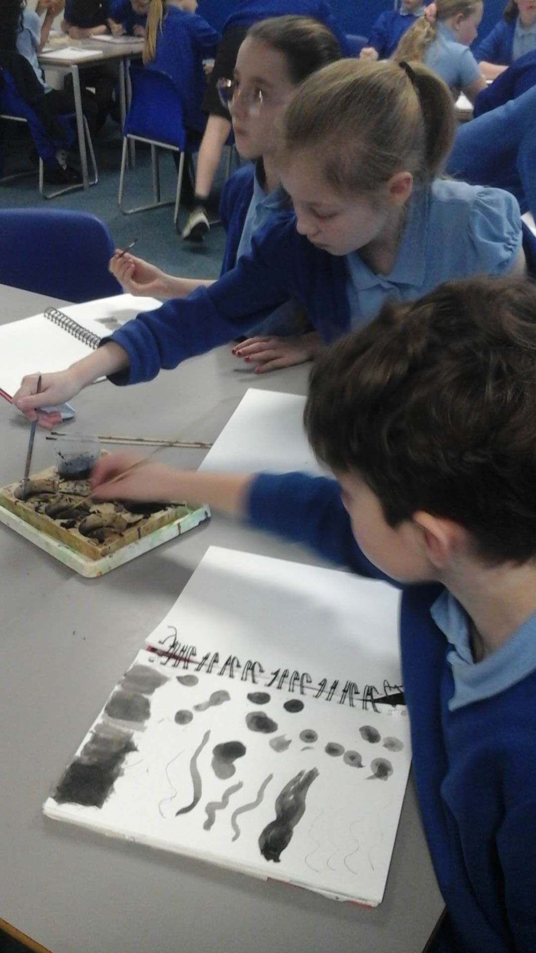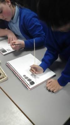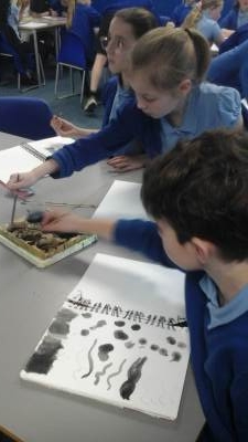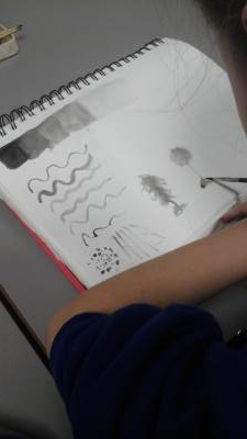 During our Art lesson this week, we learnt a range of techniques that can be created when working with Indian ink. Using a paintbrush and a wooden skewer, we were able to create colour values (shades of colour after adding varying amounts of water to the ink), colour washes (where the ink bled into the water wash) and differing line widths and patterns.