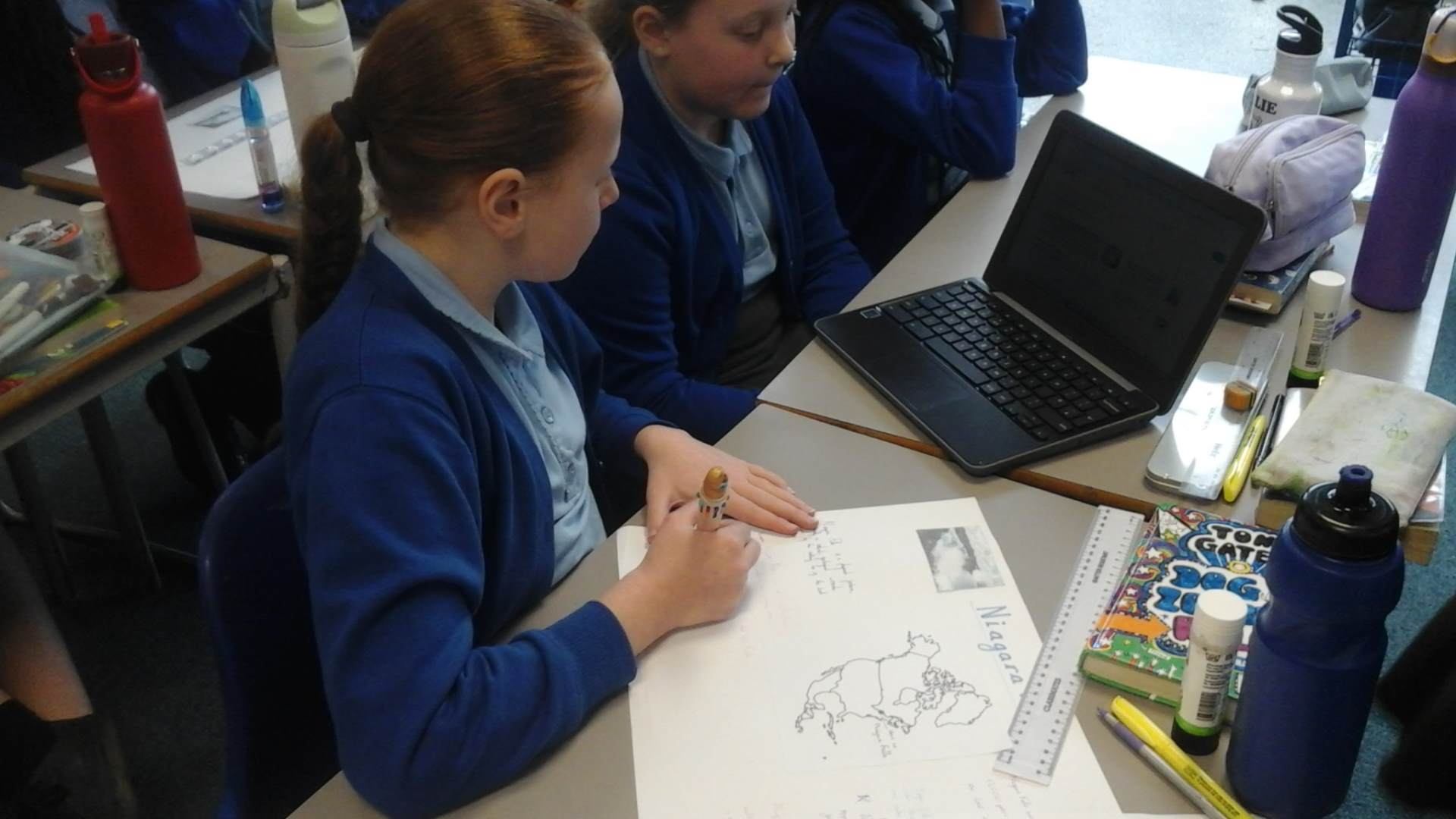In Geography, we have been exploring countries, time zones, climates and geographical features within the continent of North America. We worked in pairs and threes to produce a poster about a geographical feature. We used the Chrome books to research facts about the landmark and find out where it was located in North America.