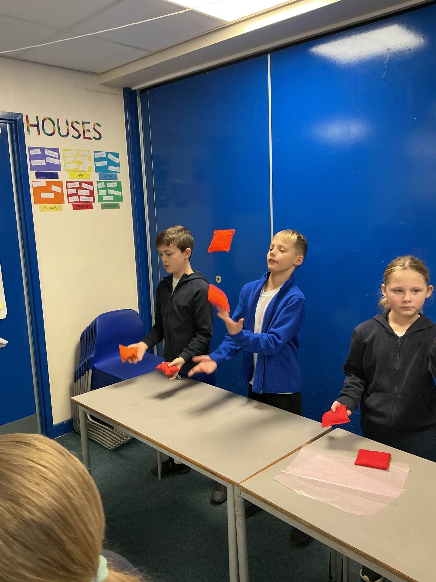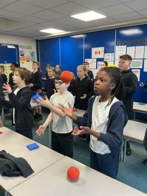 On Monday, we learnt to juggle! Mr Pryke came down to show off his skills and to be a 'blue' coach, in-line with our ReflectEd. The majority of us started the lesson off as 'red', which meant we didn't know anything about juggling. A few of us were 'yellow', which meant we knew a little about it but needed some more support. As the session went on, we found that we floated between the colours. When we became confident in the first step (which made us green) we then moved on to the next step, which meant many of us were back to being red/yellow again. This was a great session as it showed us that by breaking down a task into smaller steps, this allowed us to build on our perseverance and resilience.