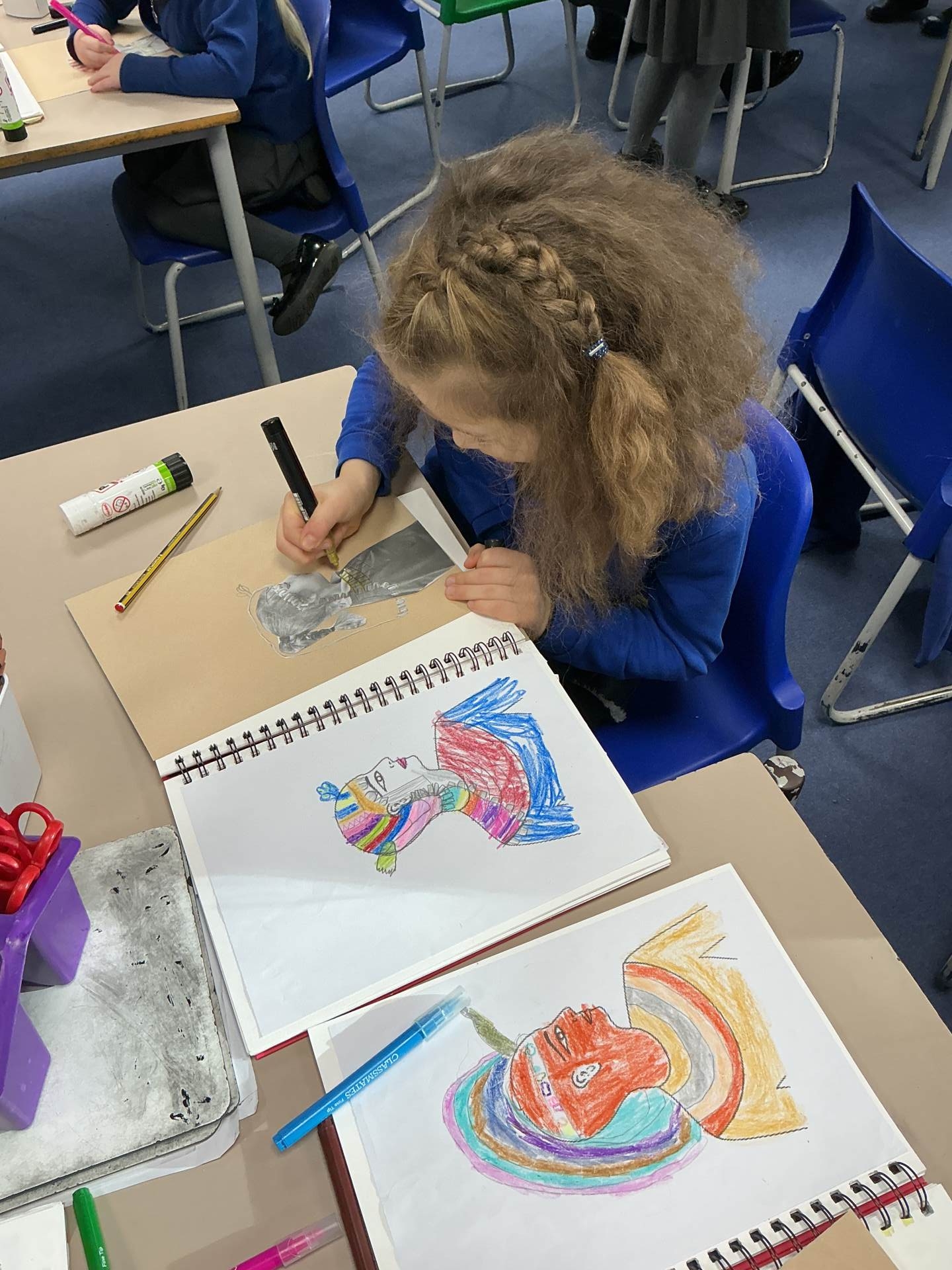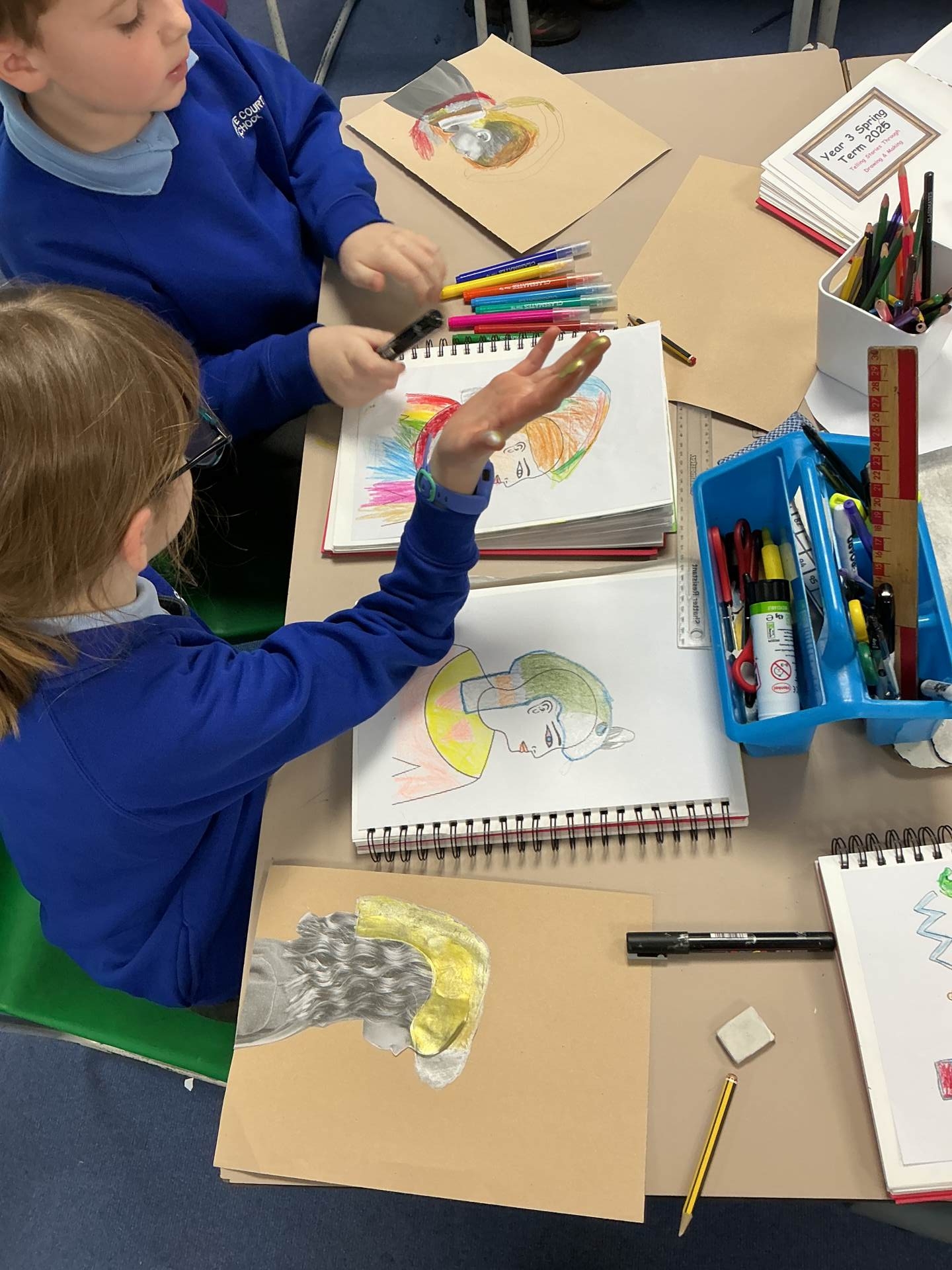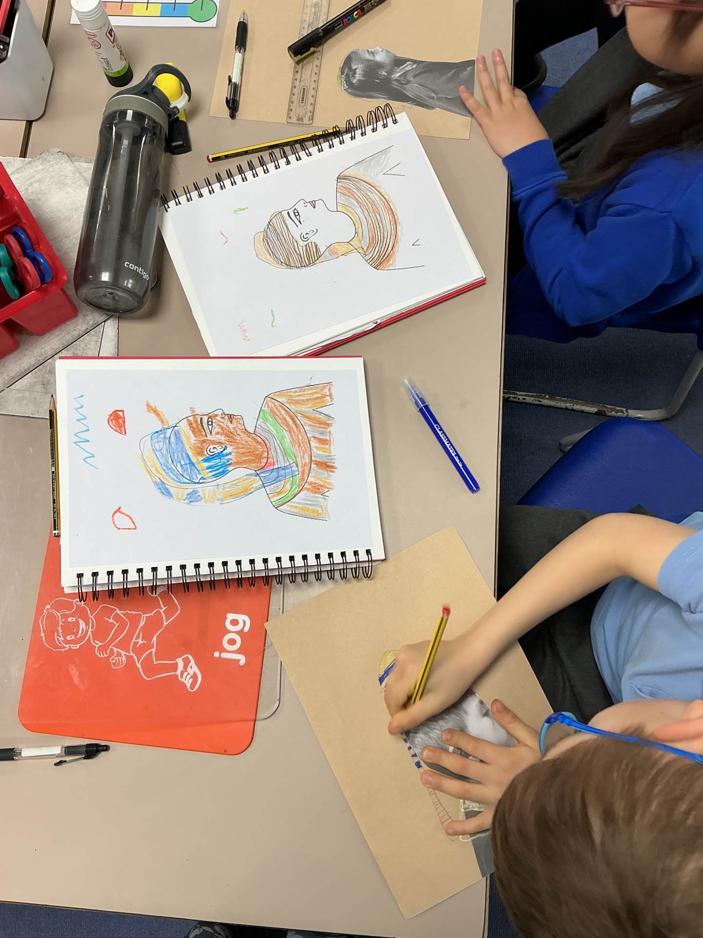 We looked at Ancient Egyptian portraits and created our own plan for an Egyptian side profile portrait.