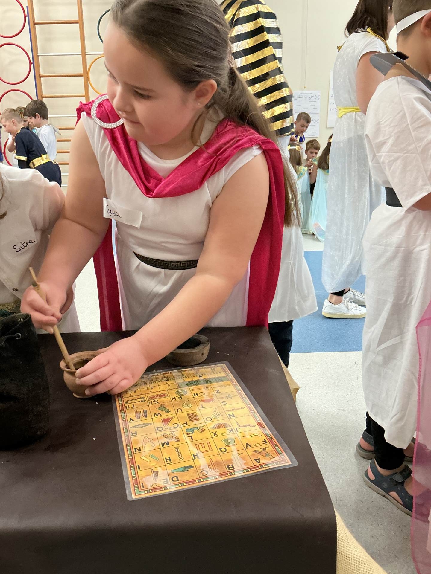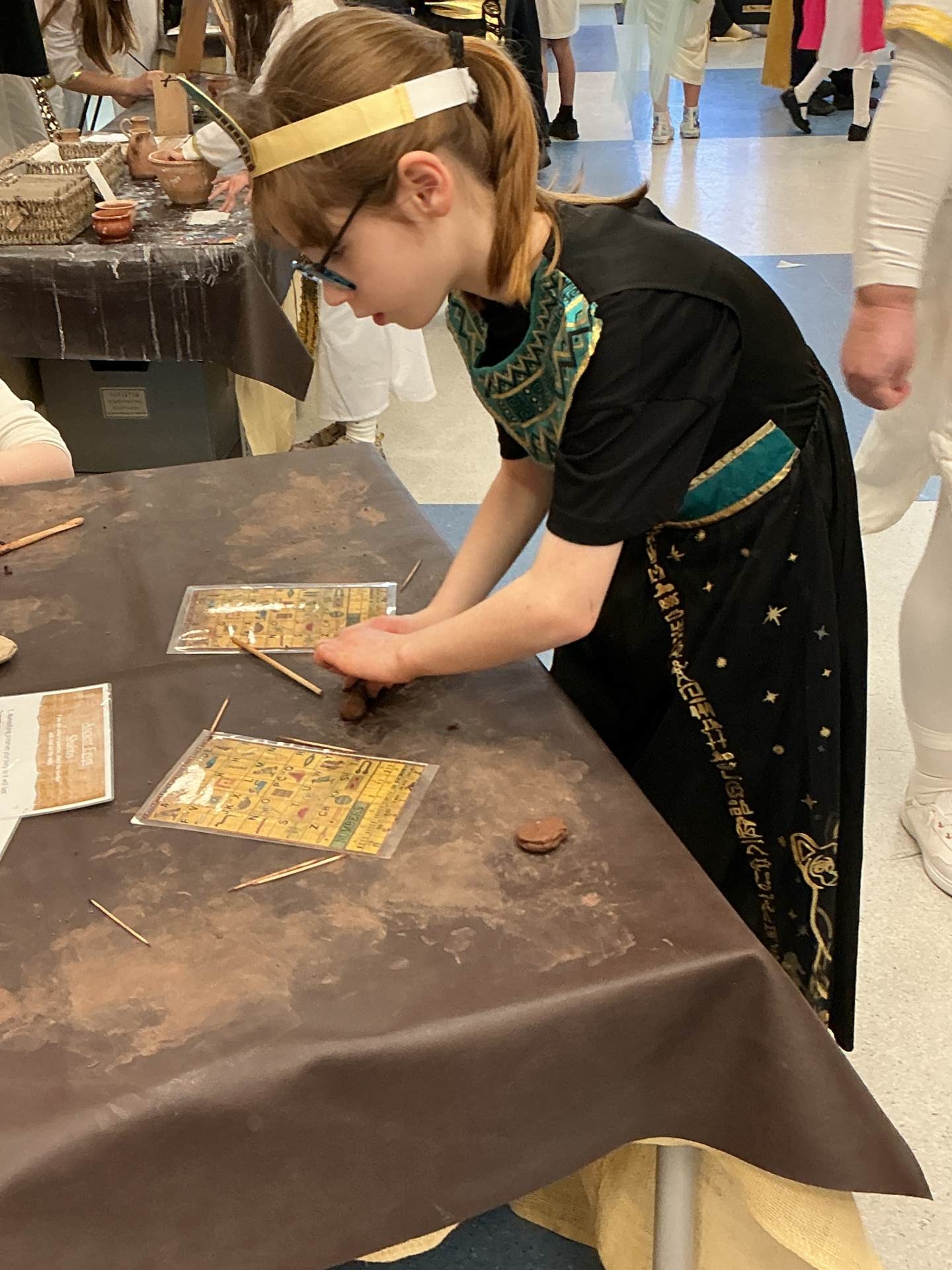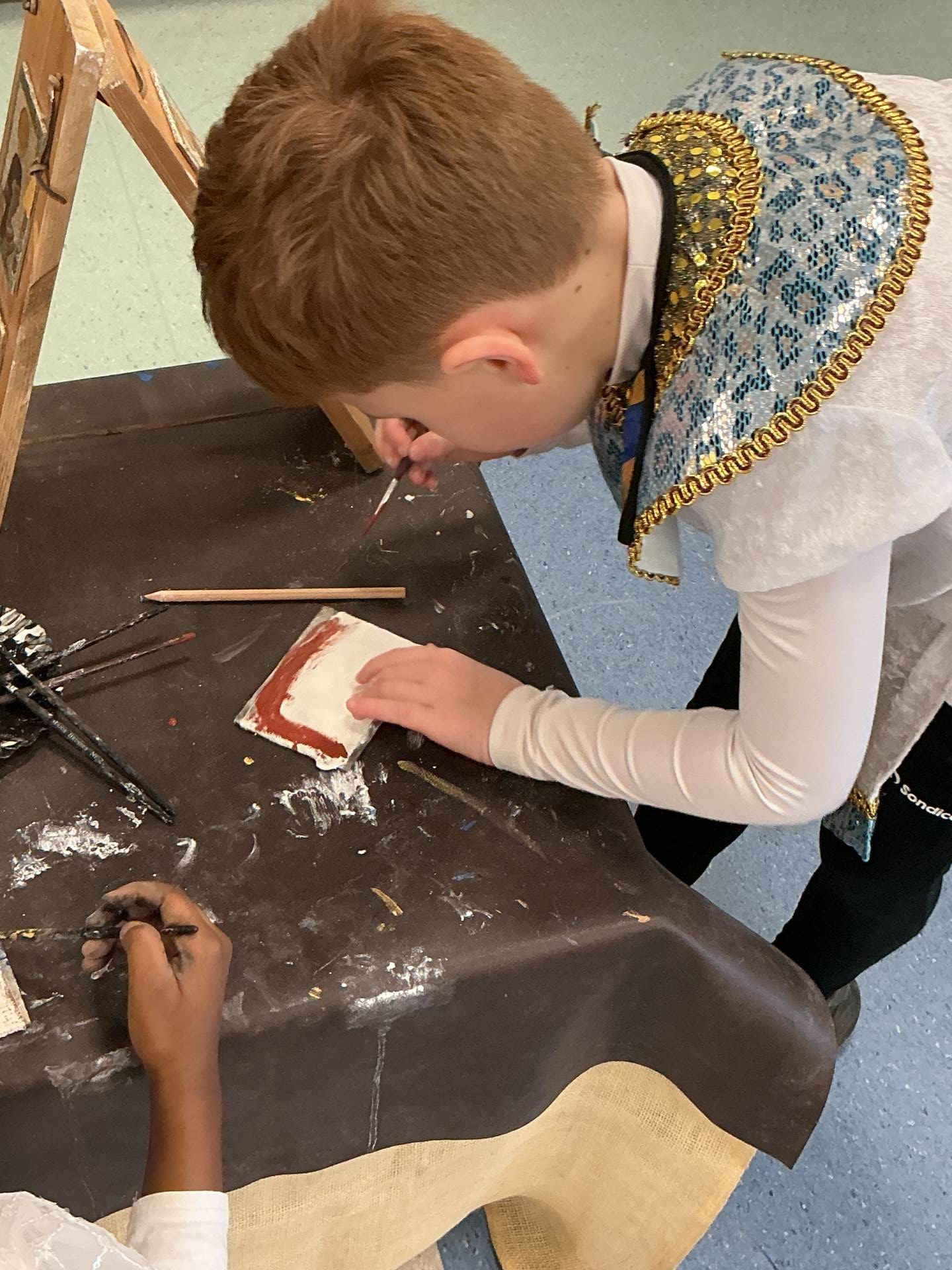 We looked at Ancient Egyptian portraits and created our own plan for an Egyptian side profile portrait.