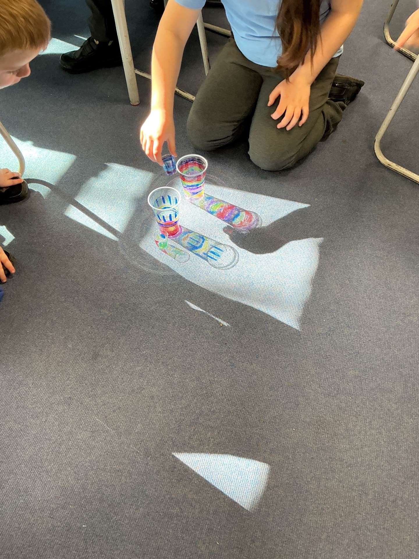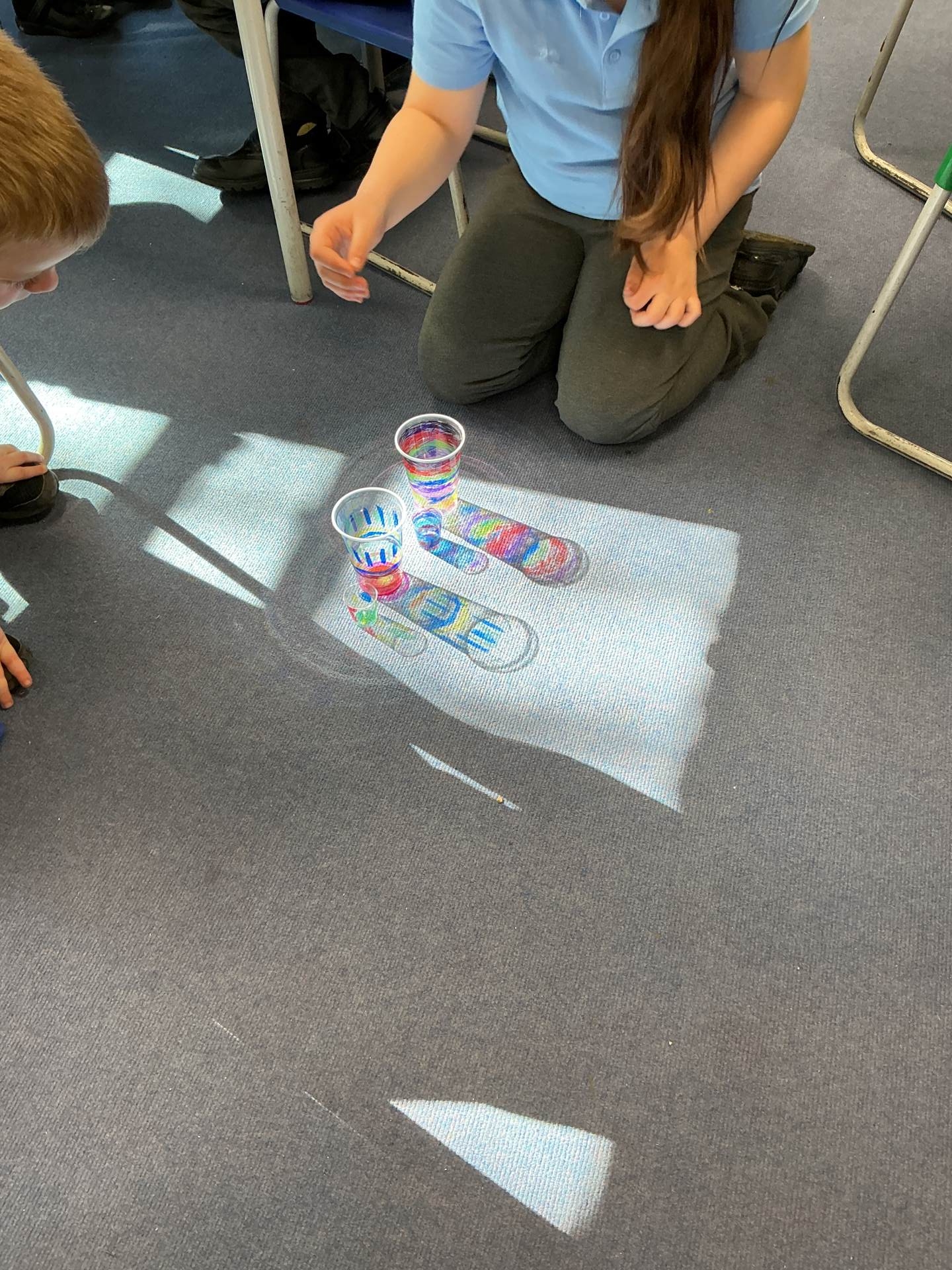 We looked at different objects and classed them as transparent, translucent and opaque. We looked at how only opaque items created a shadow. As the sun was shining, we took our learning outside and created shadows on the playground using our bodies.