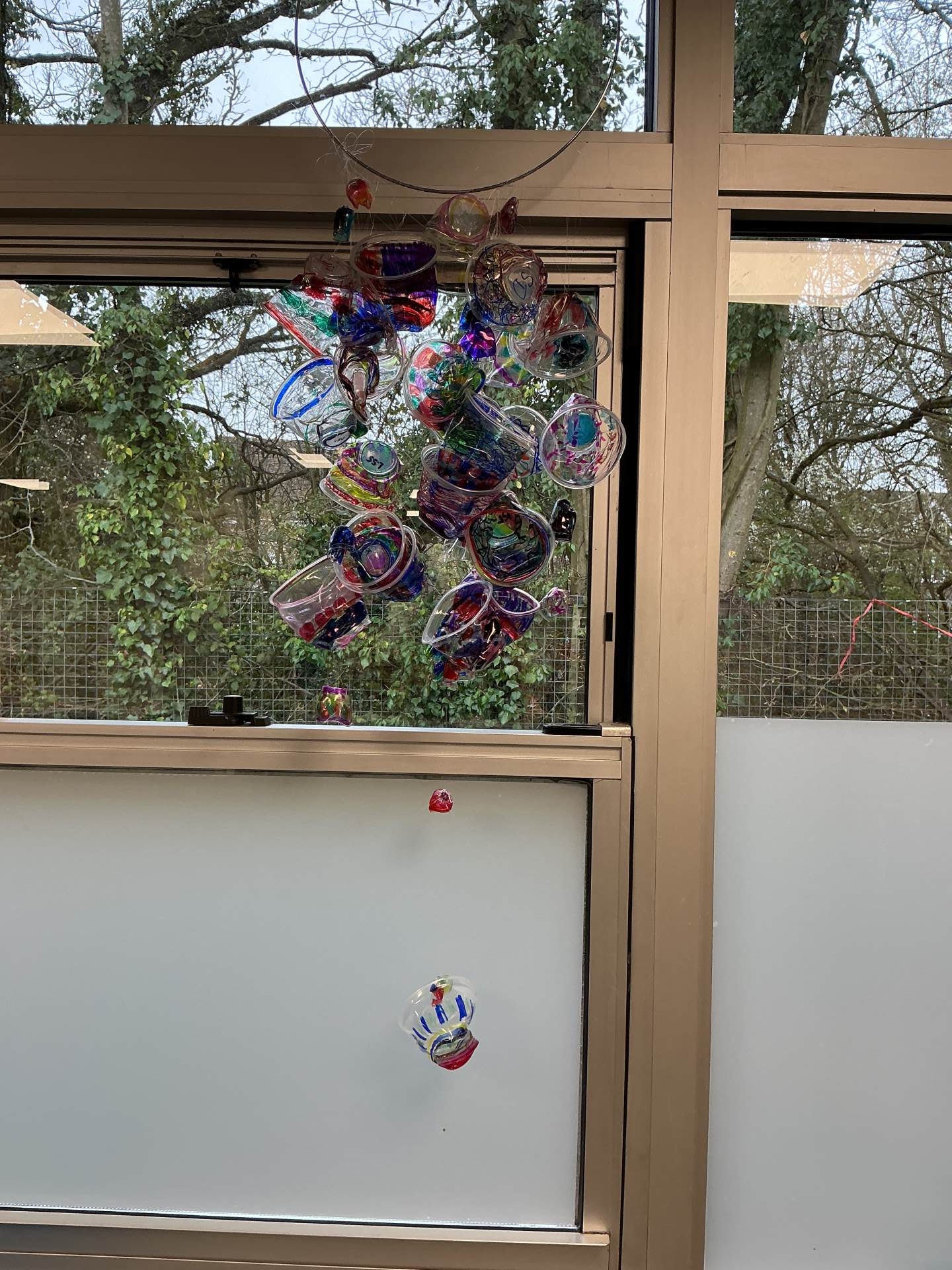 At last, our Dale Chihuly sculpture is finished! We coloured plastic cups and then heated them in the oven to make them melt and change shape. We were amazed by how colourful our final designs were. They are now hung in our wet area and we are hoping they will look beautiful when the sun is shining!