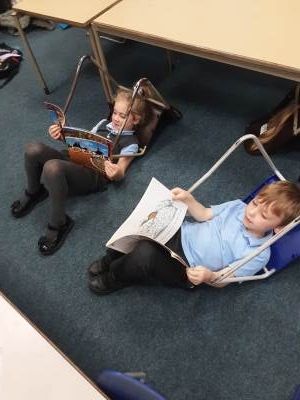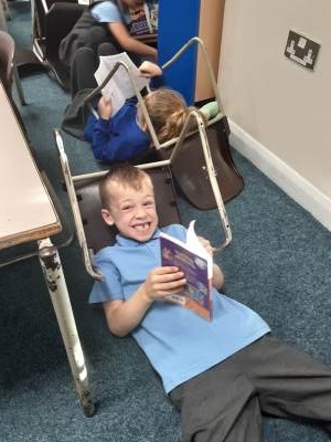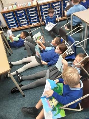 We all found a comfortable position to enjoy our new library book and Drop Every And Read.