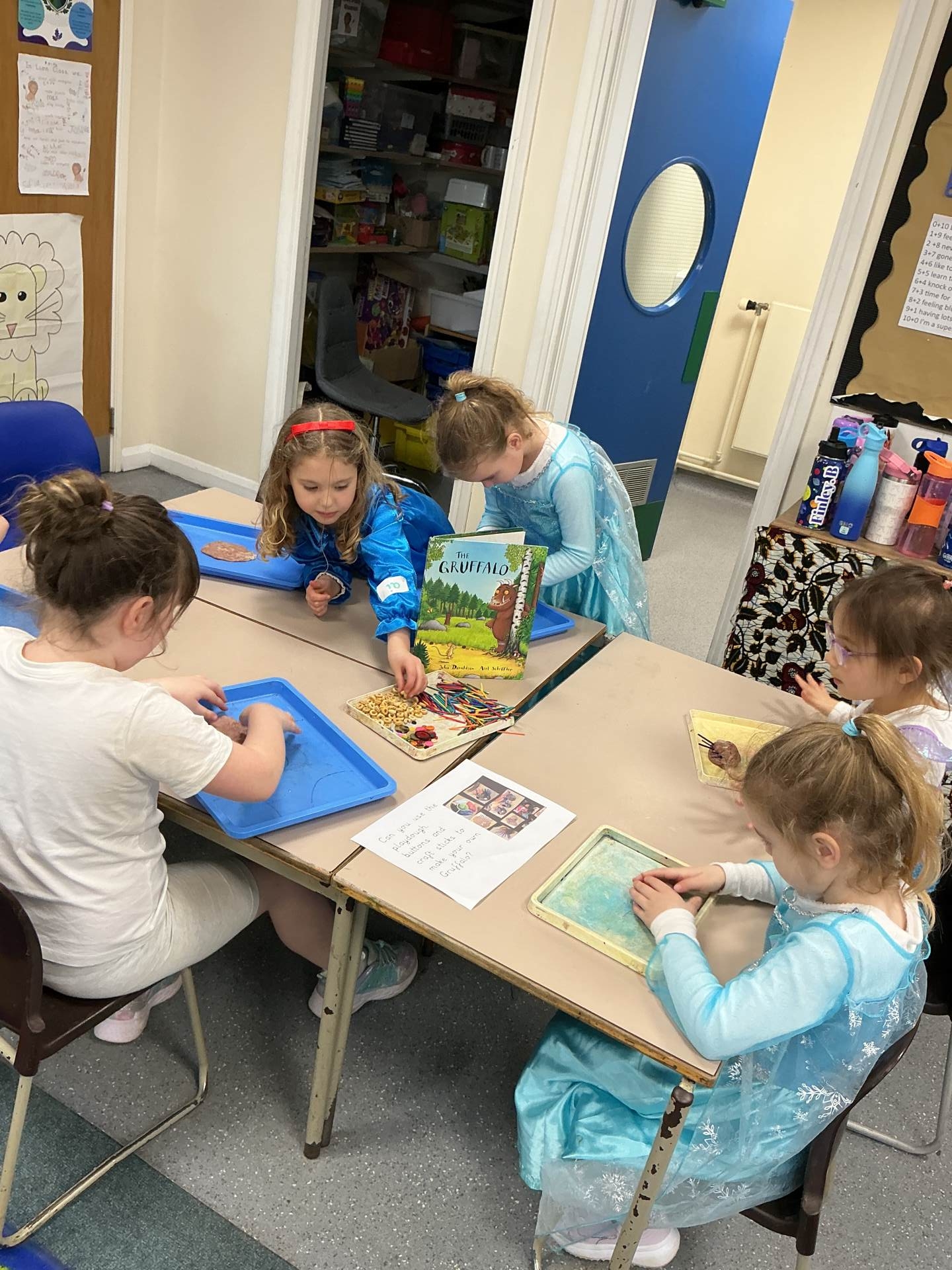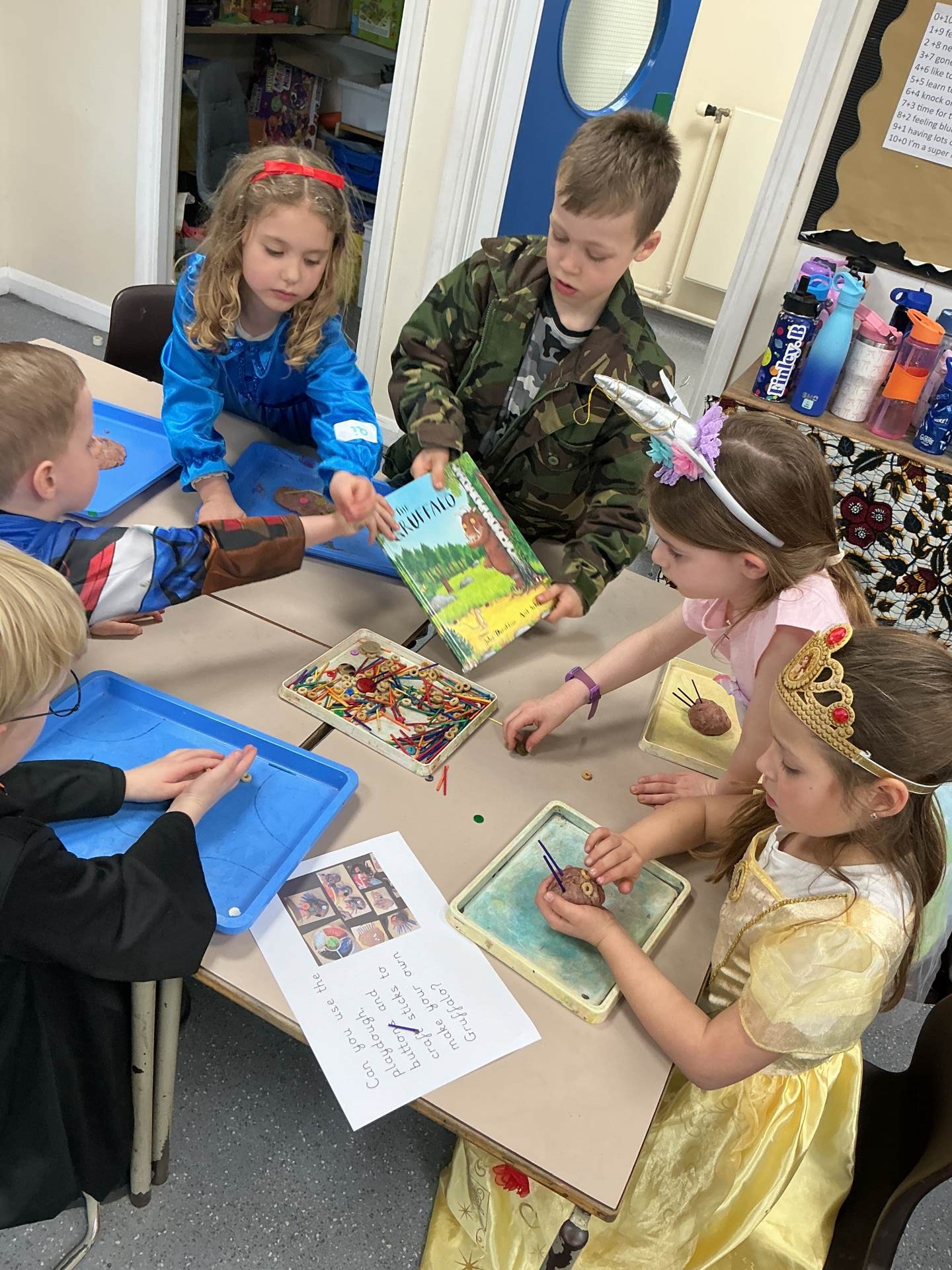 For World Book Day, the children had great fun dressing up as their favourite word or phrase. We enjoyed completing a range of Julia Donaldson themed activities, including making Play-Doh Gruffalos and creating a Snail and the Whale collage. We also made the most of the sunshine by reading outside with our Year 3 reading buddies, which was a lovely way to celebrate our love of books together.
