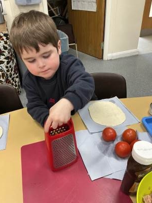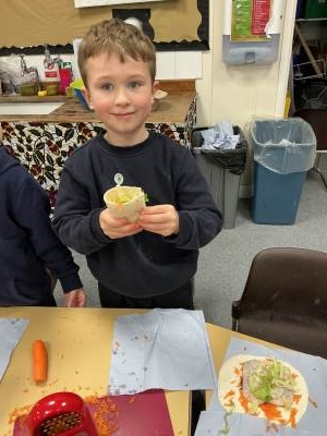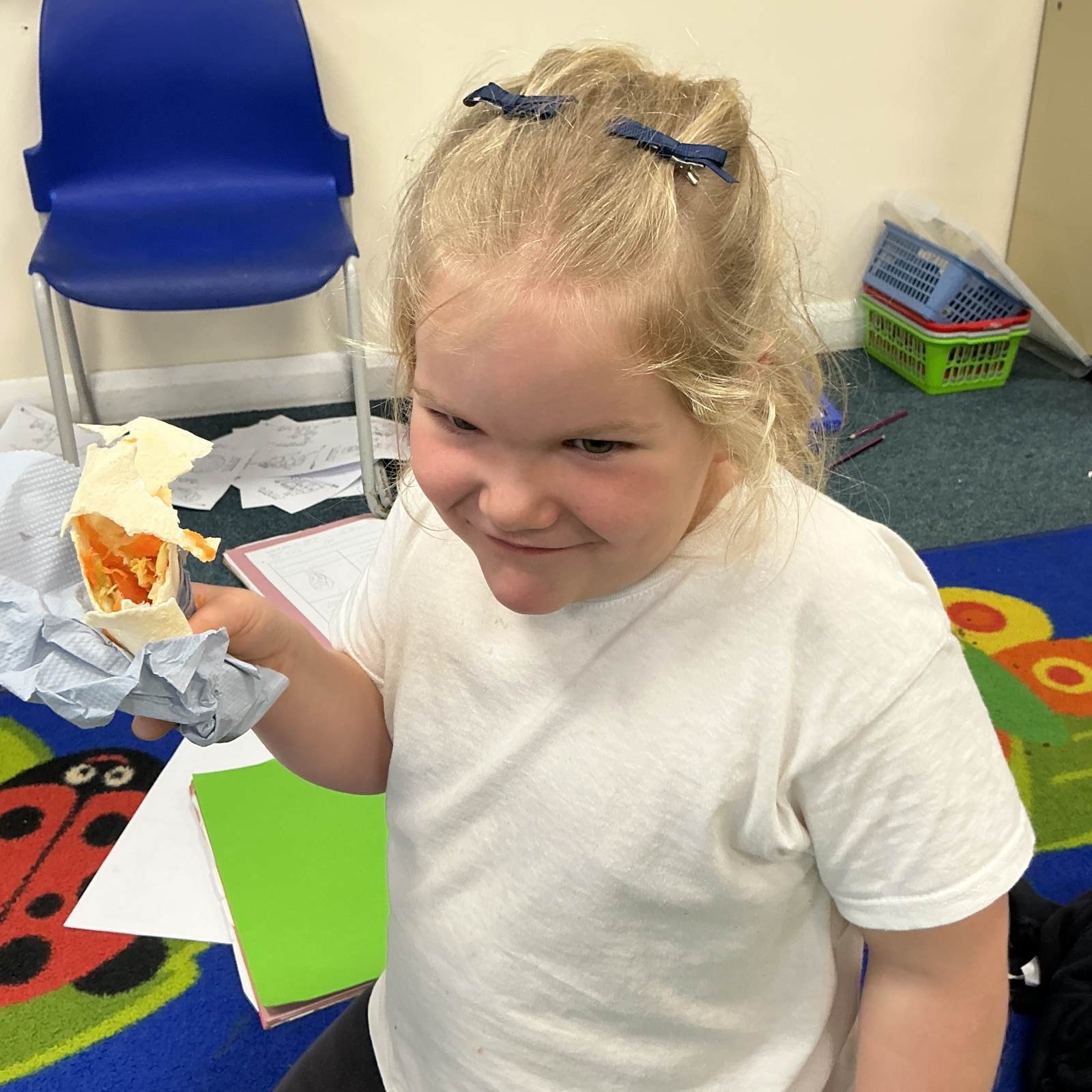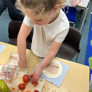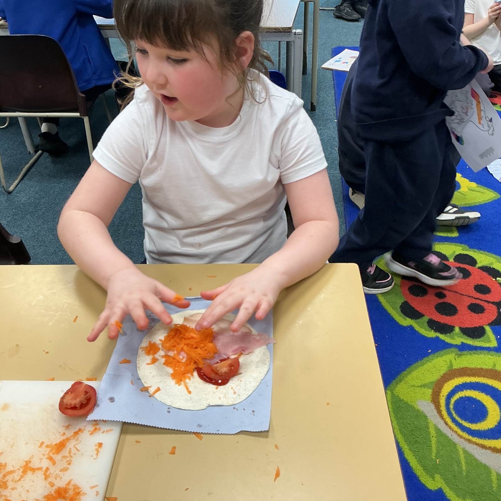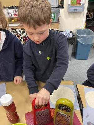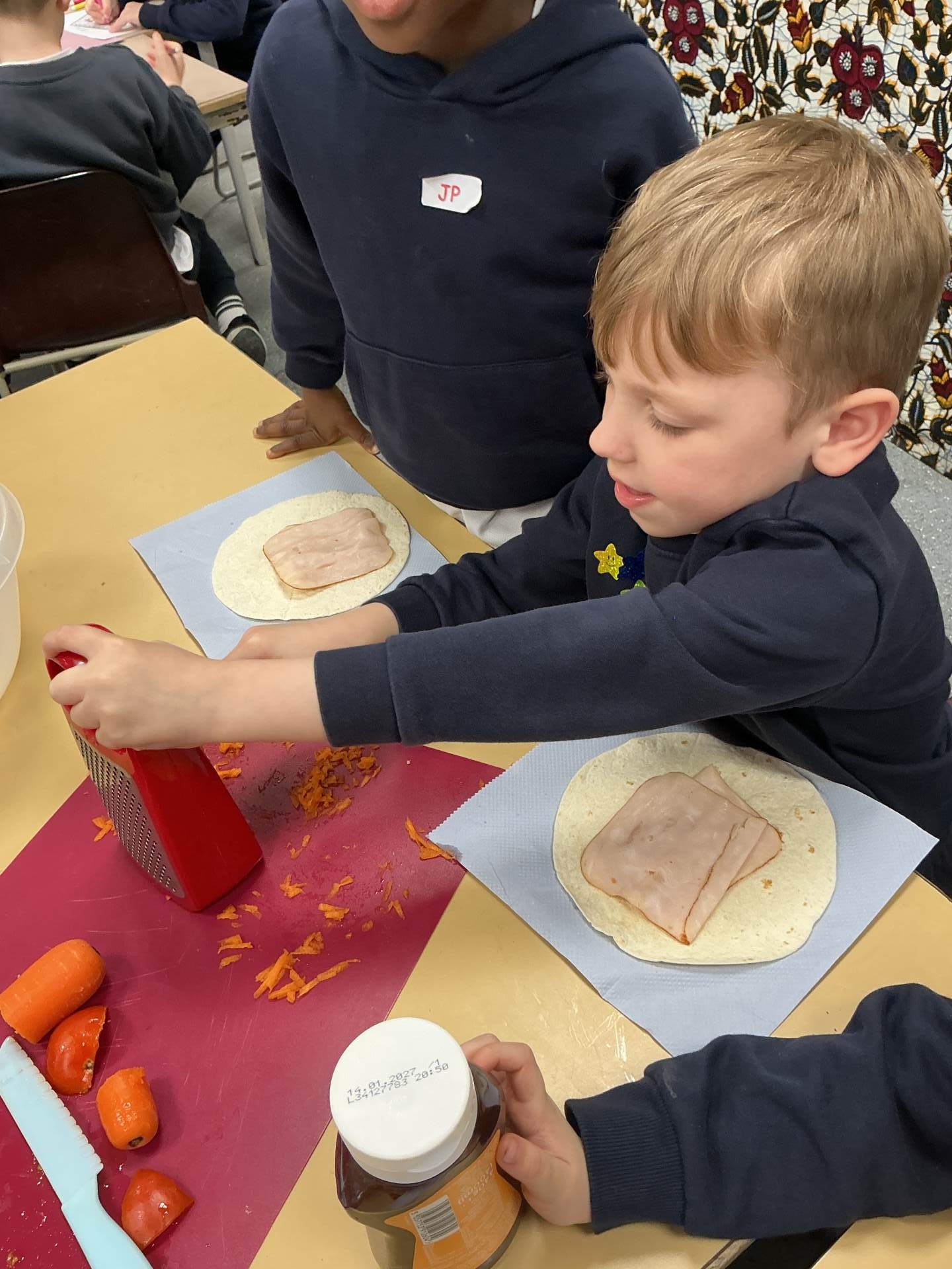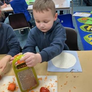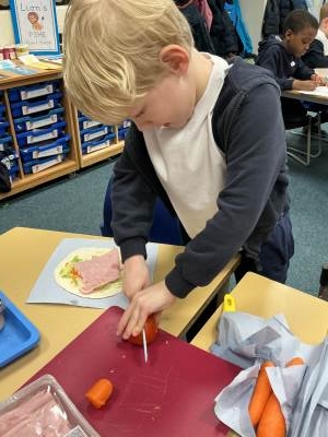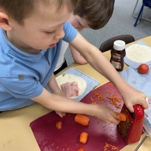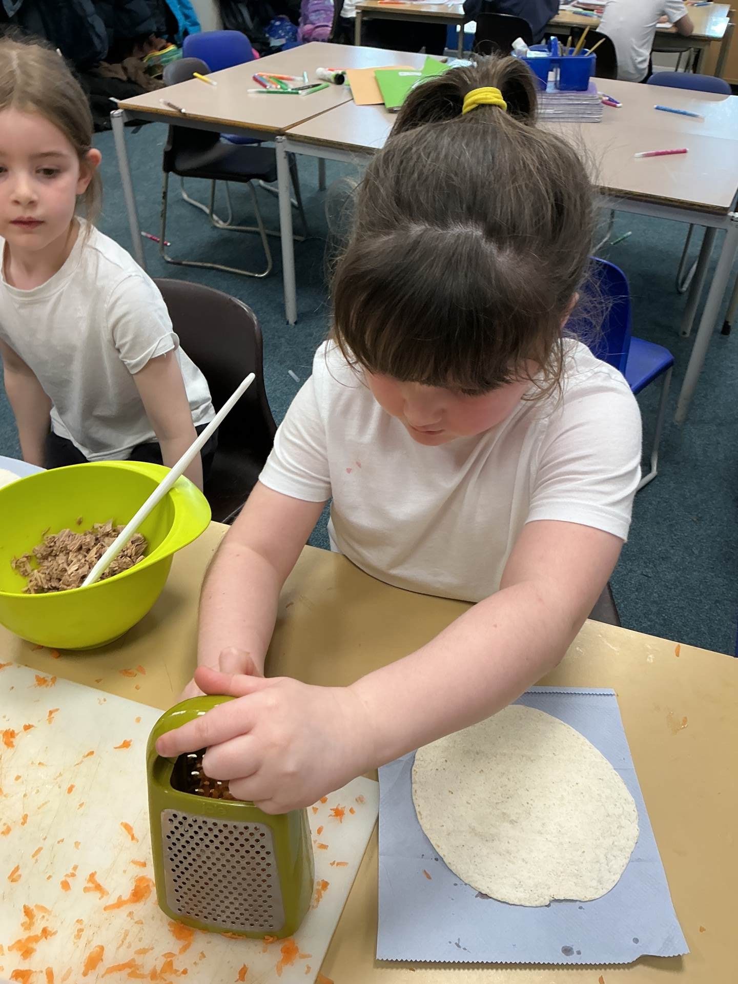 In DT we designed and made our portable snacks! We grated carrots and chopped tomatoes. We evaluated them by thinking about what we liked and what we would change if we made them again.