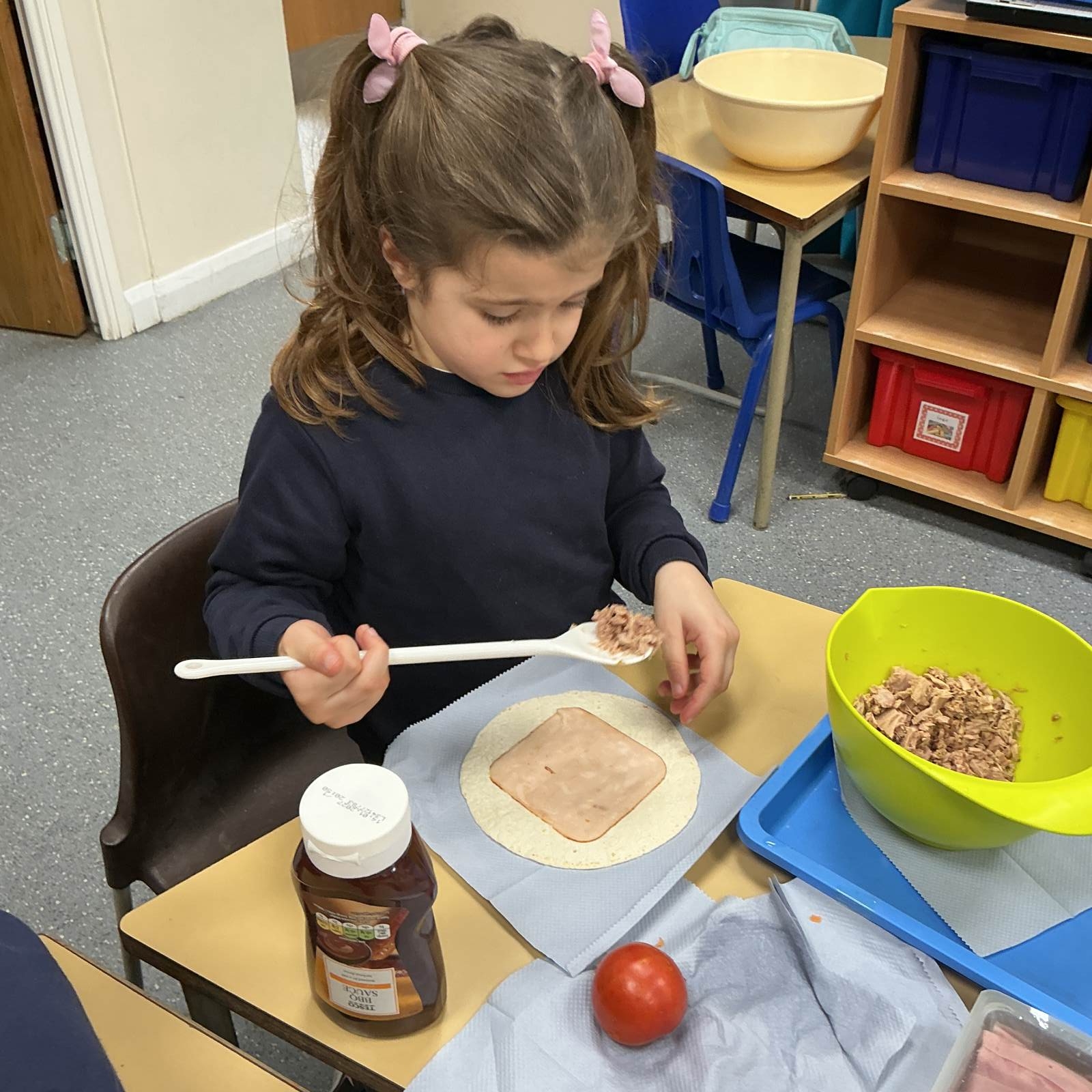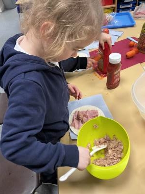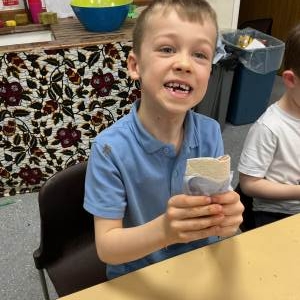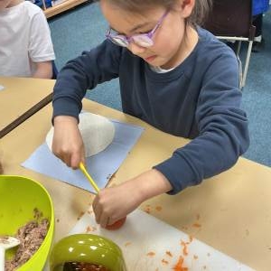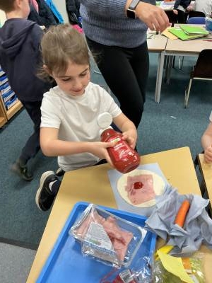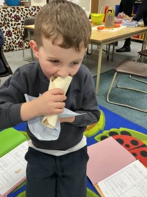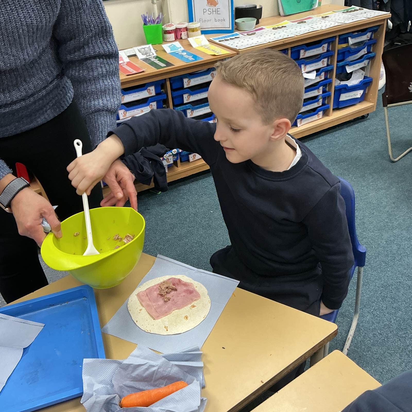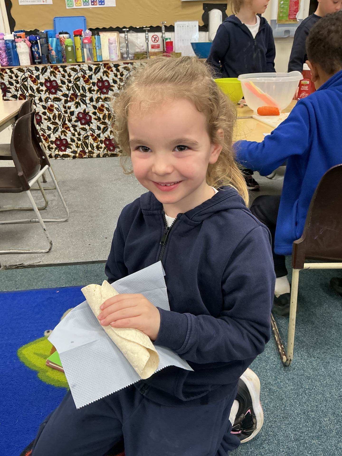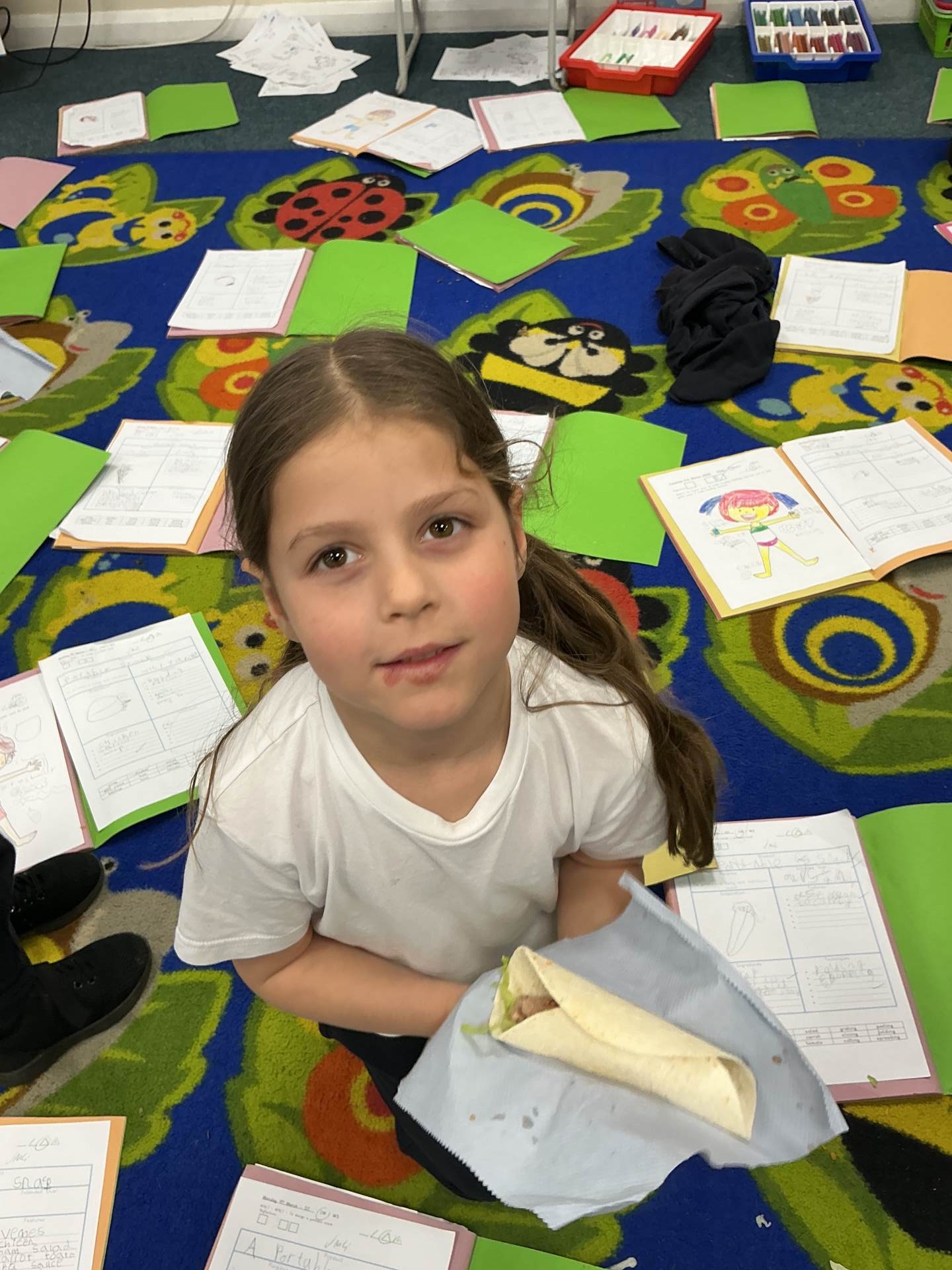 In DT we designed and made our portable snacks! We grated carrots and chopped tomatoes. We evaluated them by thinking about what we liked and what we would change if we made them again.