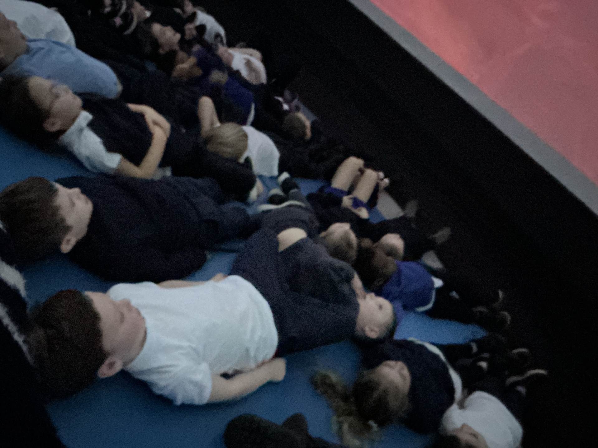 We were acting different parts of the story in the book Giraffes Cant Dance.