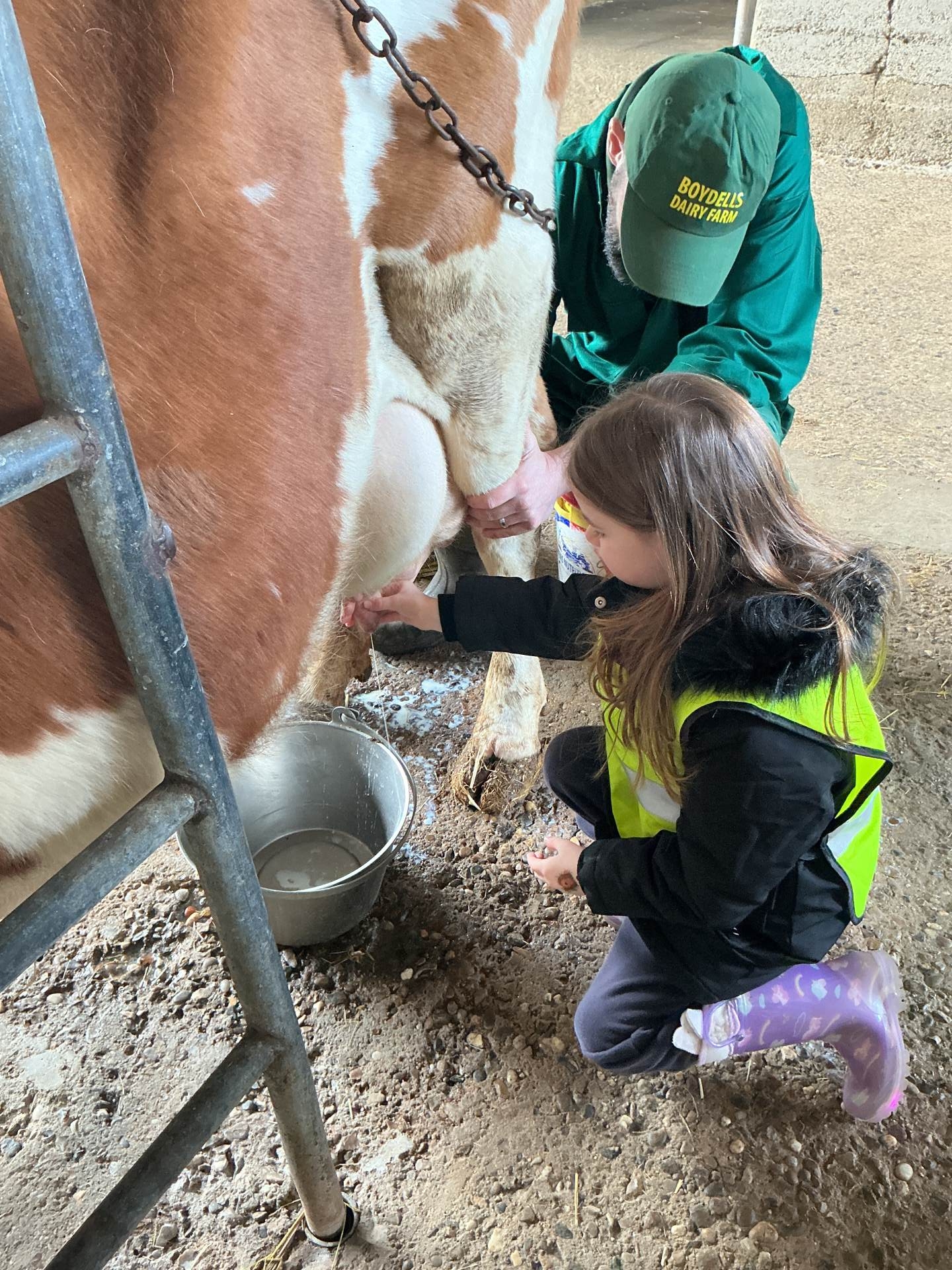 We went to Boydell's Farm! We milked a cow called Mootilder, fed goats, sheep, ponies and alpacas. We bottle fed a lamb and had our picture with one. We stroked Guinea pigs and little chicks. We saw donkeys, geese, a turkey, ducks, chickens, a cockerel and weaners (piglets who have weaned away from their mothers). What an amoozing day!