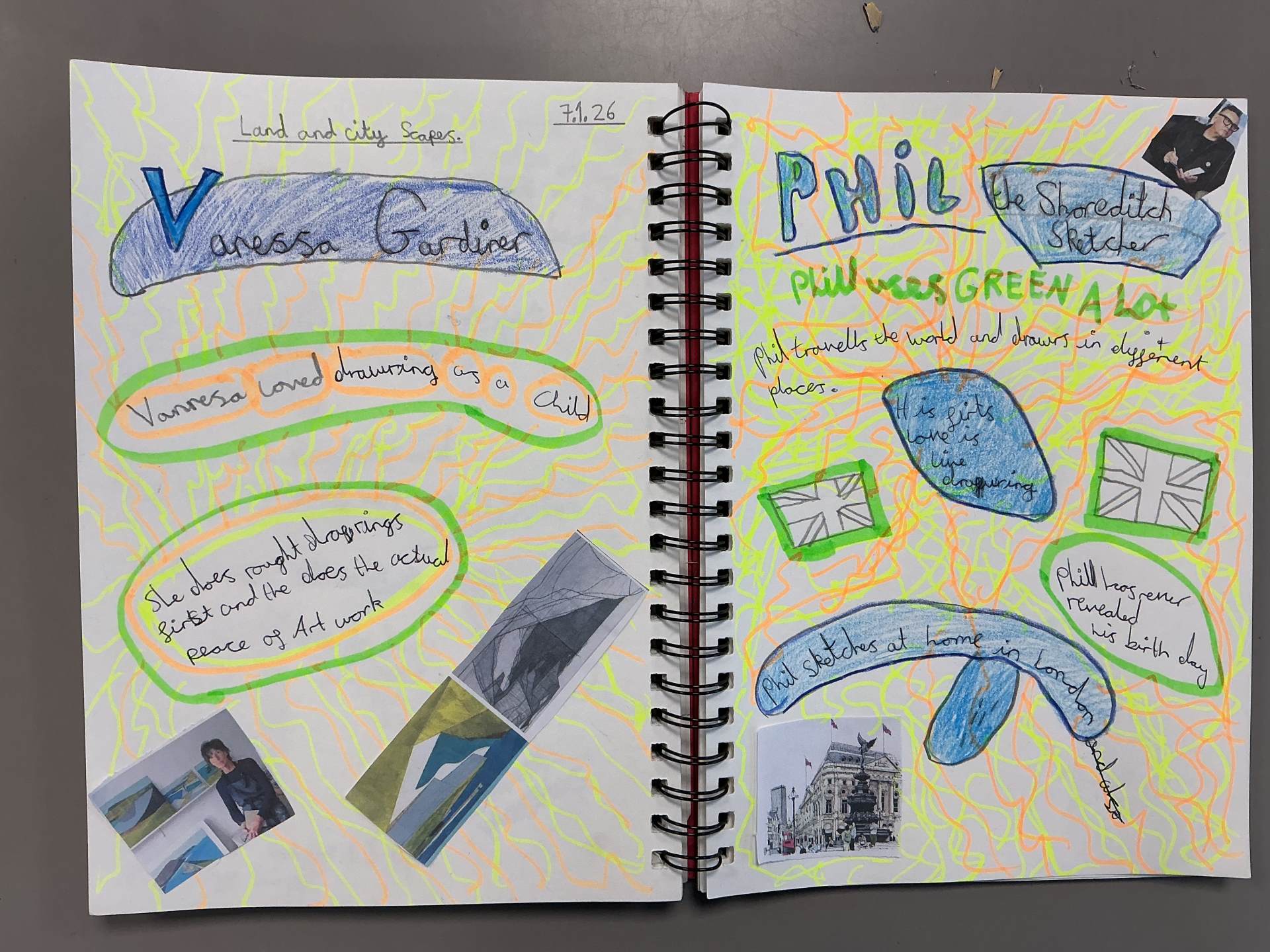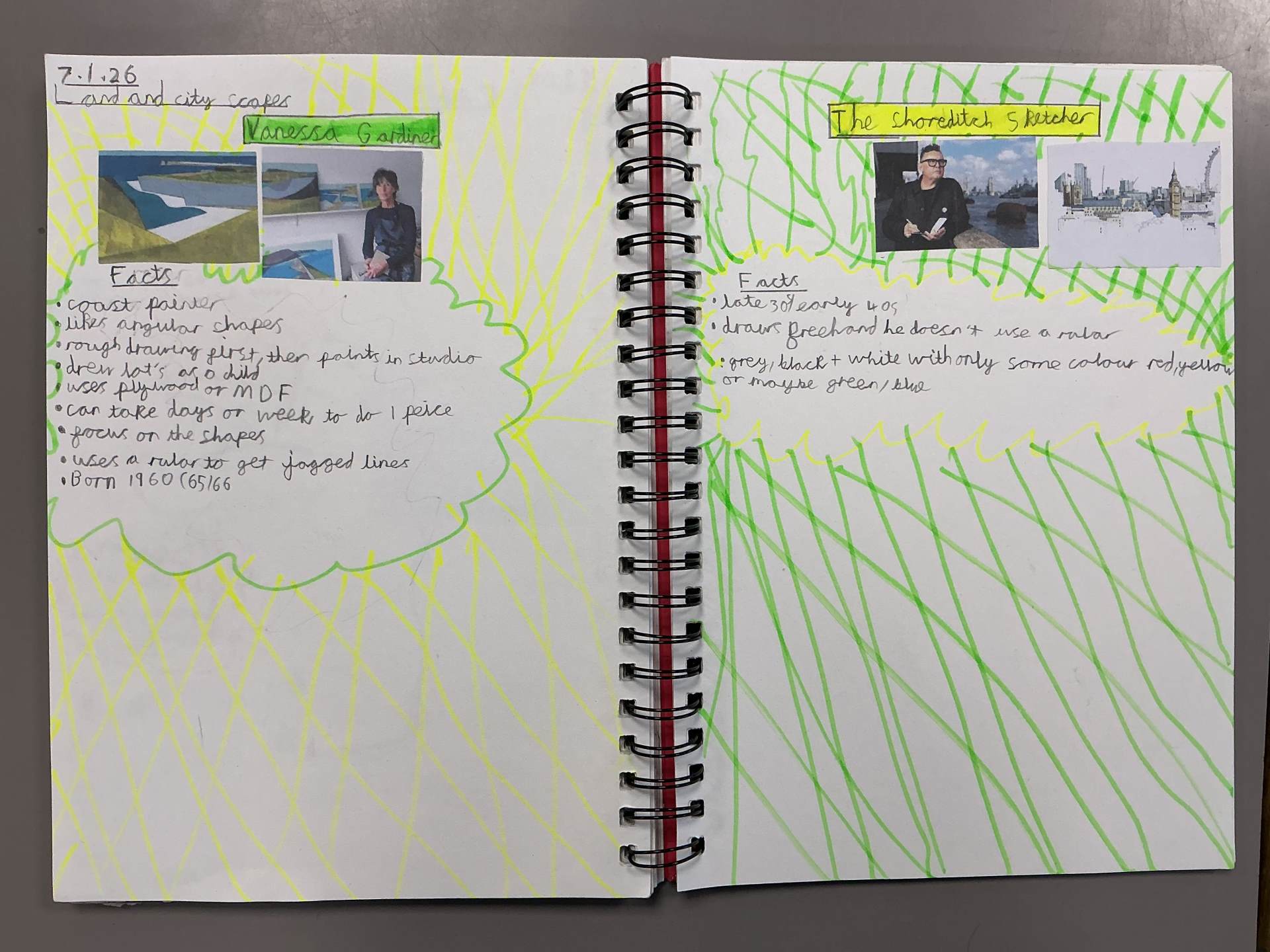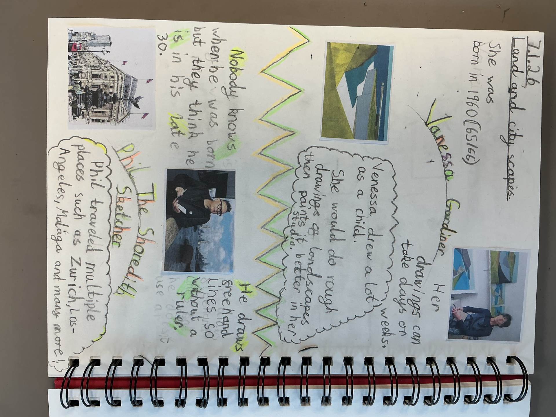 This week, we have started a unit for Art called Mixed Media Land and City. We looked at the artists Vanessa Gardiner and The Shoreditch Sketcher and explored some of their artwork. In our sketchbooks, we produced a page about them.