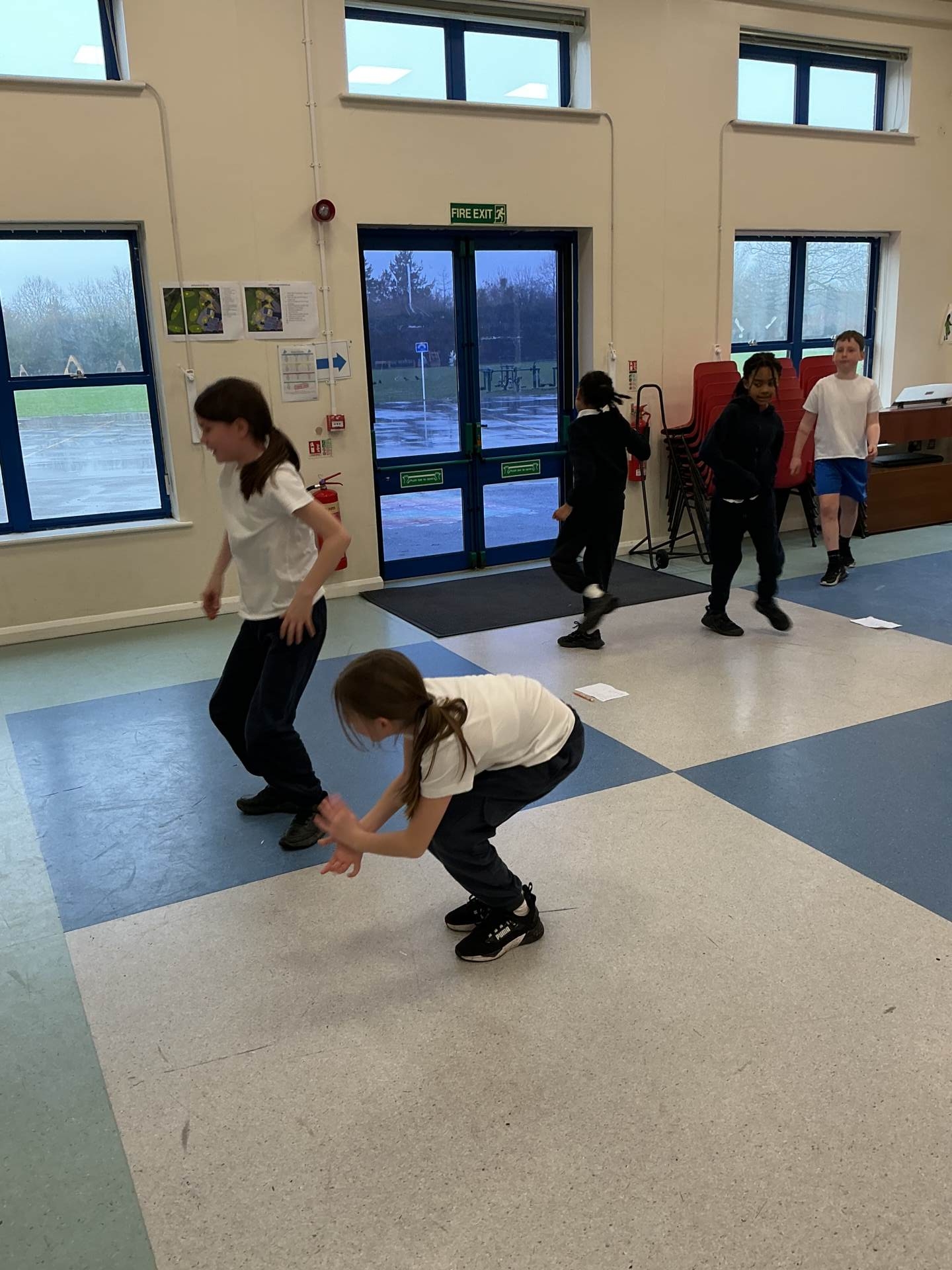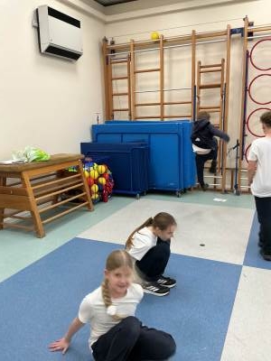 This week in PE, we finalised our dance routines and then performed them to the rest of the class. When creating our dances, we chose from a list of moves and performed them to a count of 8. The moves we chose from were extend, travel, kick, slide, ripple, jump, tilt, fall, twist and spin. Can you spot any of these moves in the pictures?