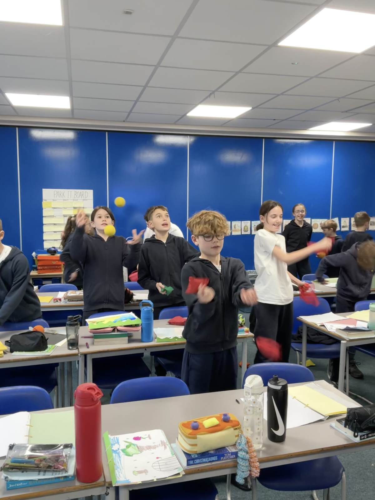 On Monday, we learnt to juggle! Mr Pryke came down to show off his skills and to be a 'blue' coach, in-line with our ReflectEd. The majority of us started the lesson off as 'red', which meant we didn't know anything about juggling. A few of us were 'yellow', which meant we knew a little about it but needed some more support. As the session went on, we found that we floated between the colours. When we became confident in the first step (which made us green) we then moved on to the next step, which meant many of us were back to being red/yellow again. This was a great session as it showed us that by breaking down a task into smaller steps, this allowed us to build on our perseverance and resilience.
