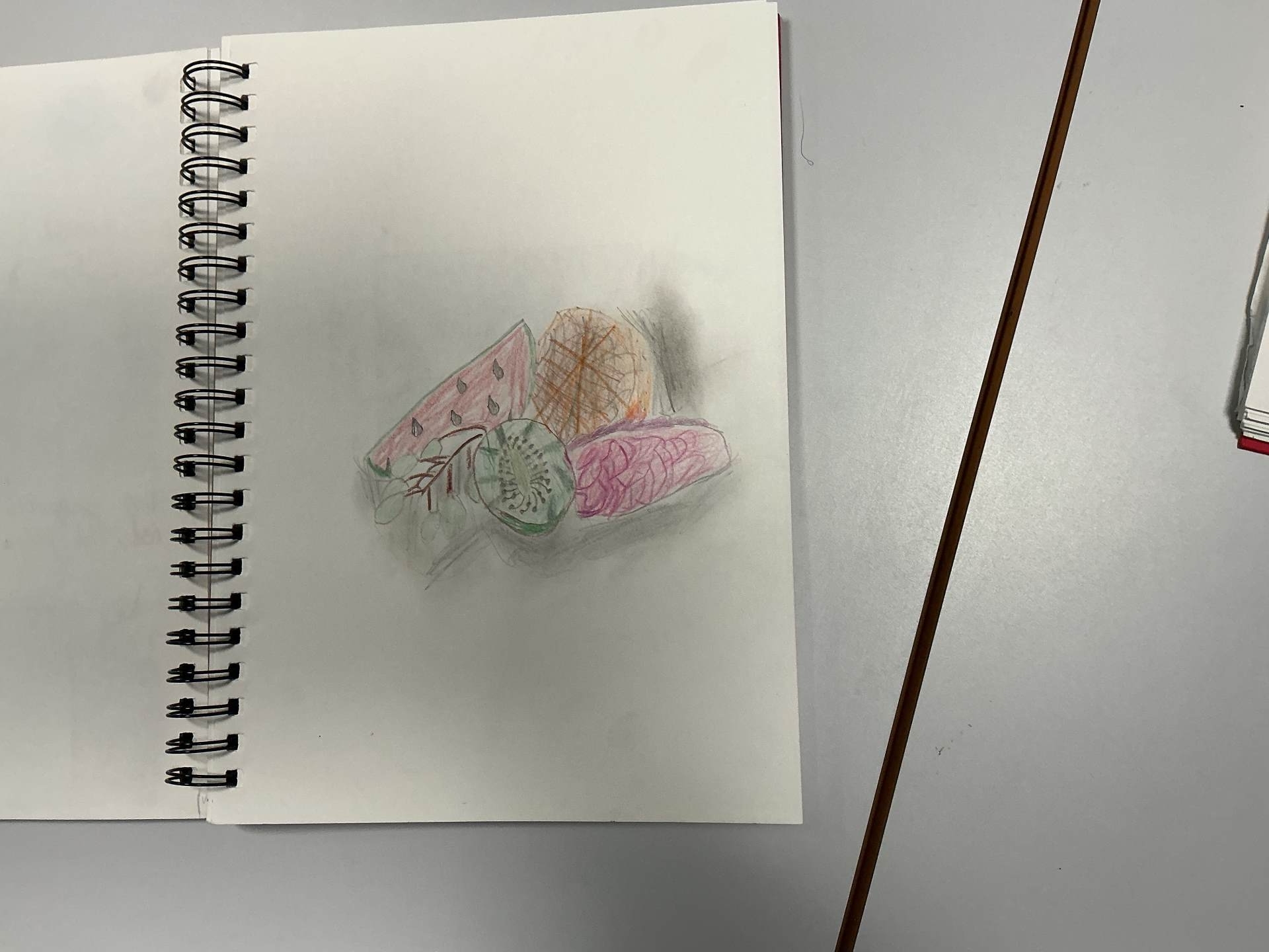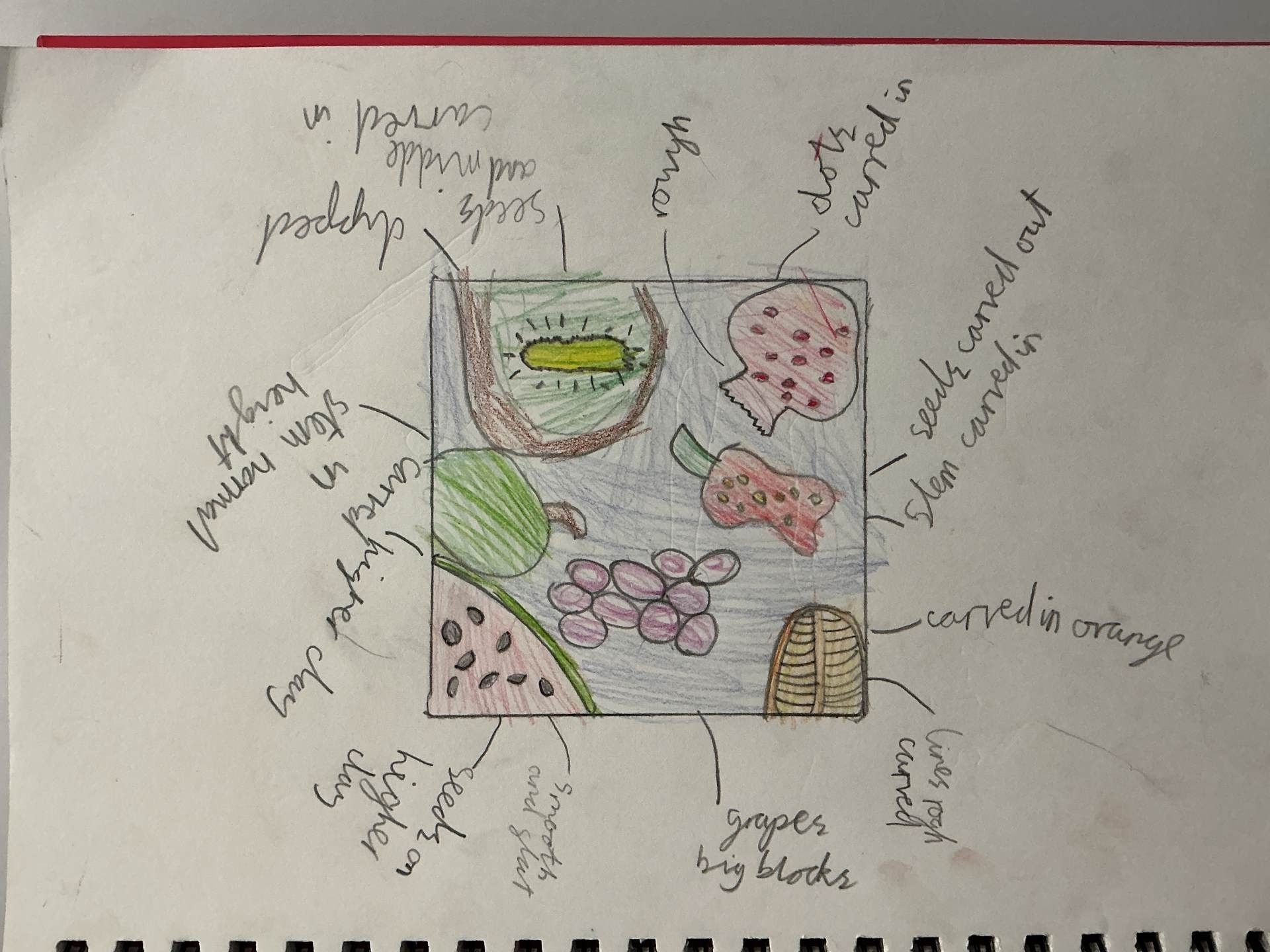 We have been exploring the work of Paul Cezanne for inspiration to learn about still life. Using colourful fruit with different textures to create a composition. Today, we made clay tiles from our drawings and learnt new clay techniques such as scoring, using slip and blending. Our final pieces will be ready to show soon.